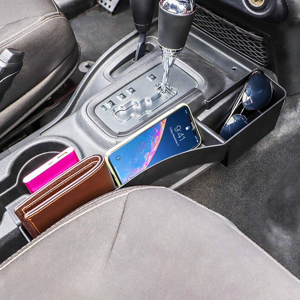Savadicar GT-3 JK Shifter Storage Box, Gear Shift Console Side Tray Organizer for 2011-2018 Jeep Wrangler JK JKU, Interior Accessories, Reserved USB Charger Extender Slot, Black