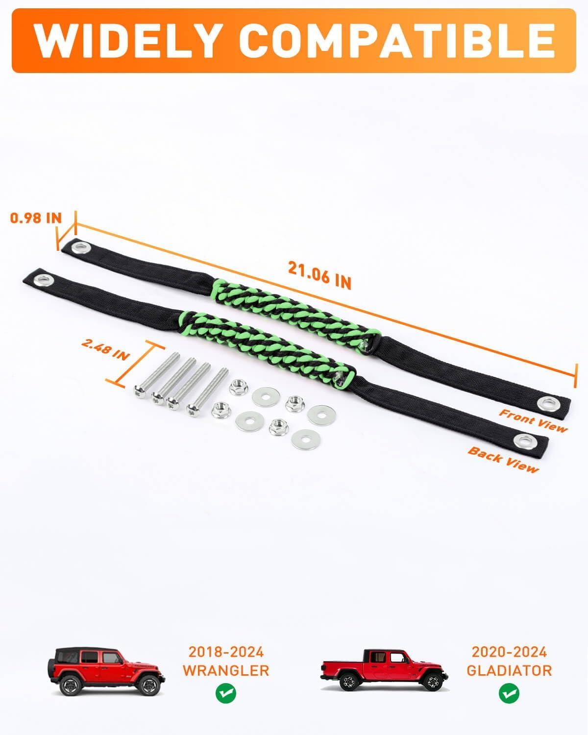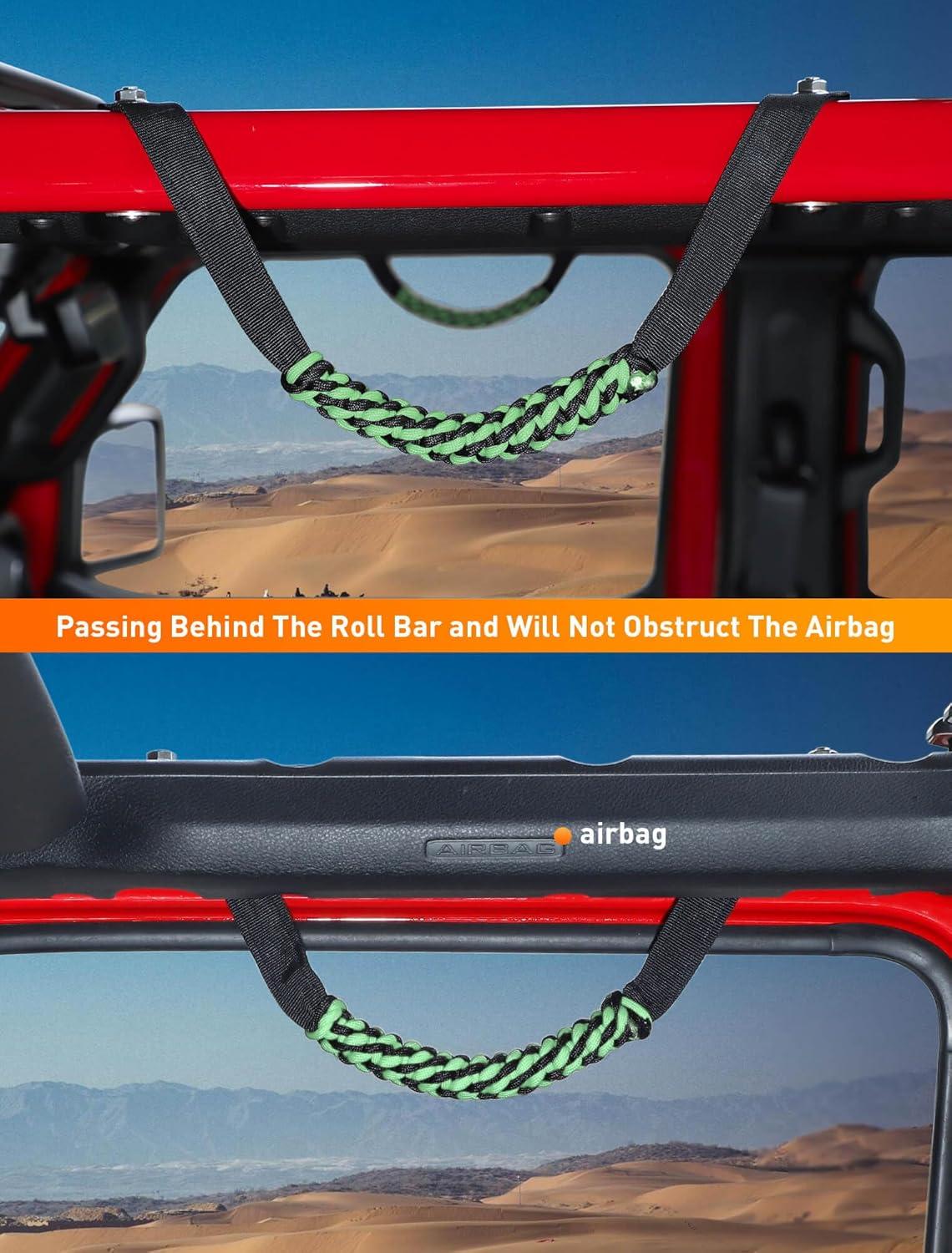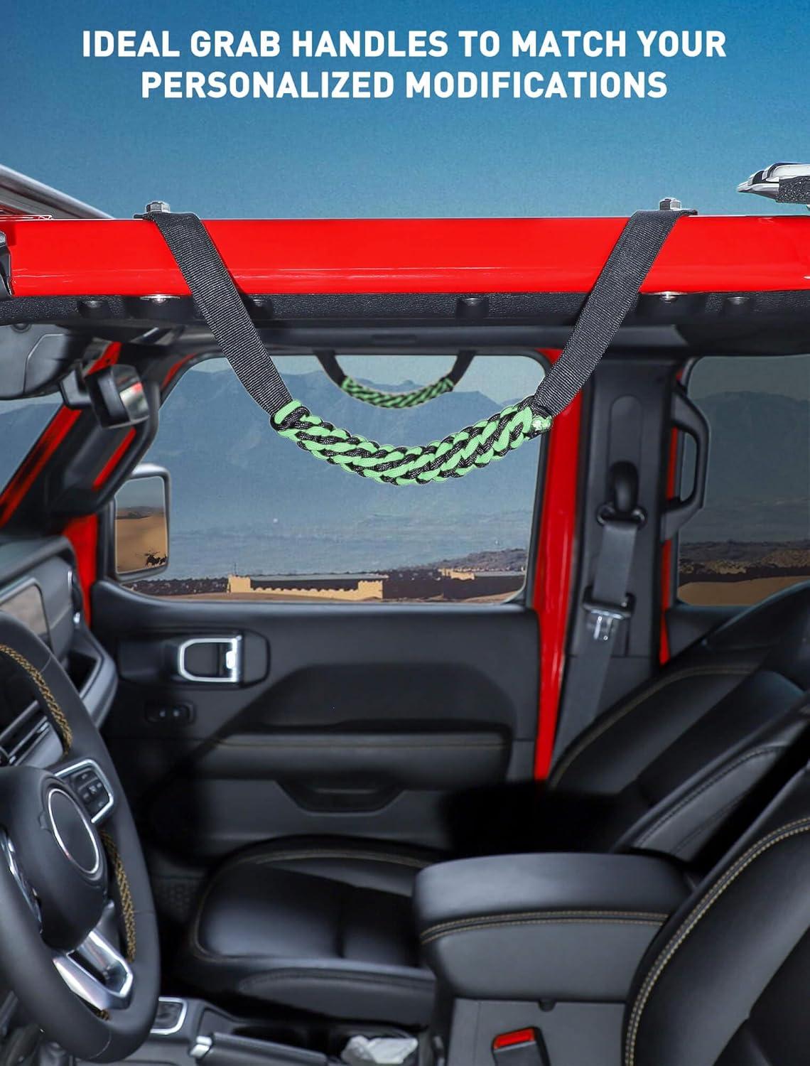 Savadicar 2 Pack Paracord Roll Bar Grab Handles for 2018-2024 Jeep Wrangler JL JLU 4XE & Gladiator JT, Comfortable Cylindrical Weave for Secure Grip, Essential Interior Accessories, Pink(Green)