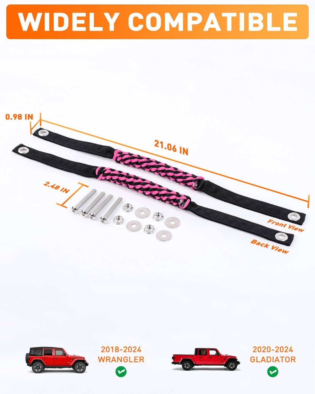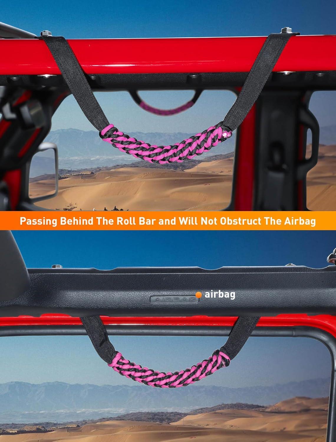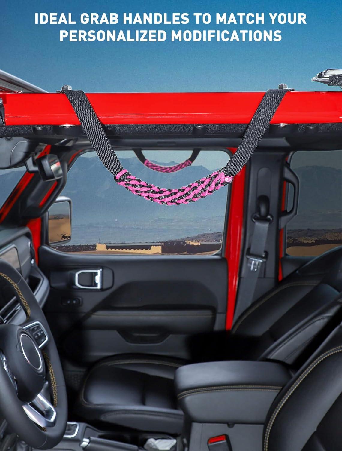 Savadicar 2 Pack Paracord Roll Bar Grab Handles for 2018-2024 Jeep Wrangler JL JLU 4XE & Gladiator JT, Comfortable Cylindrical Weave for Secure Grip, Essential Interior Accessories, Pink(Pink)