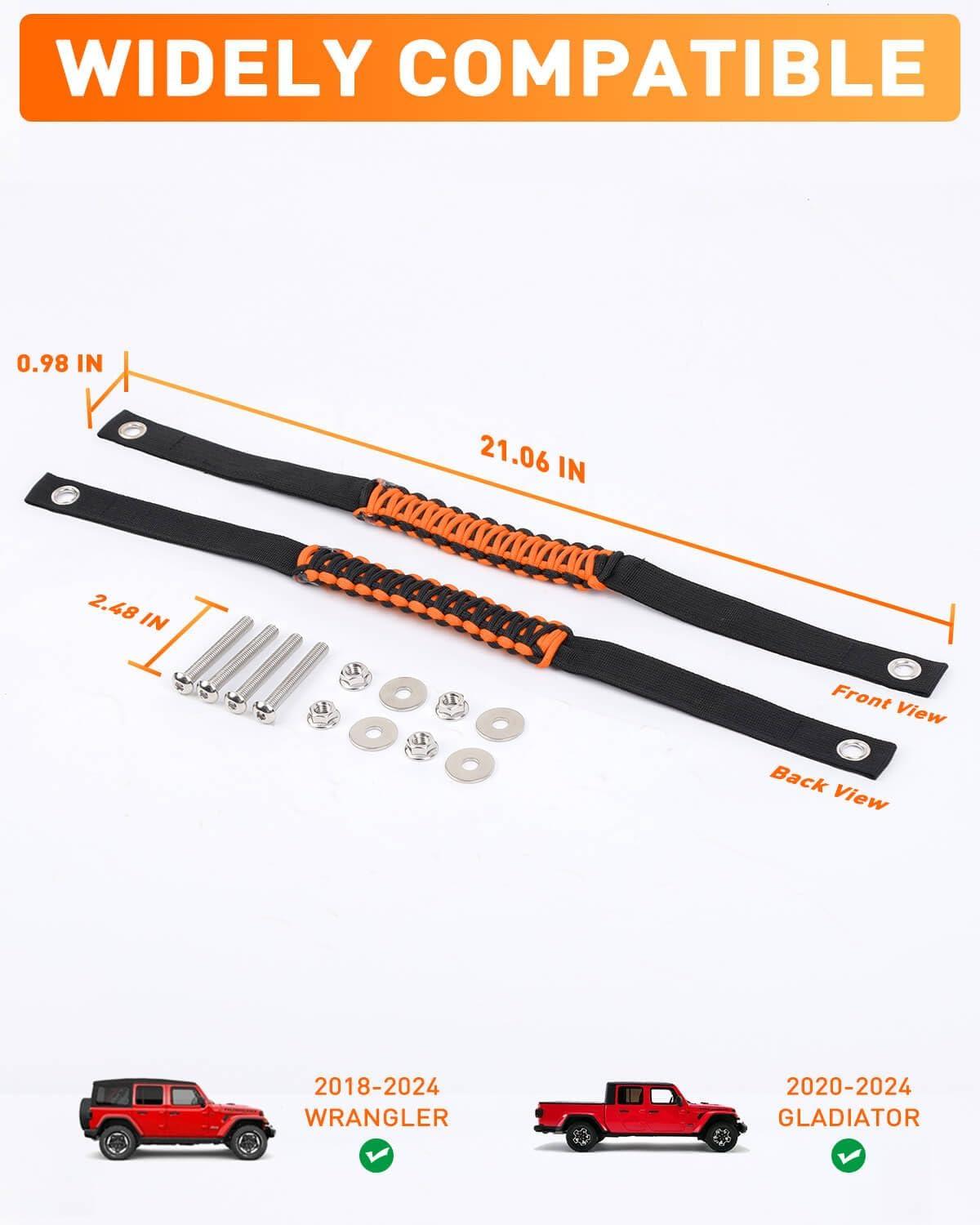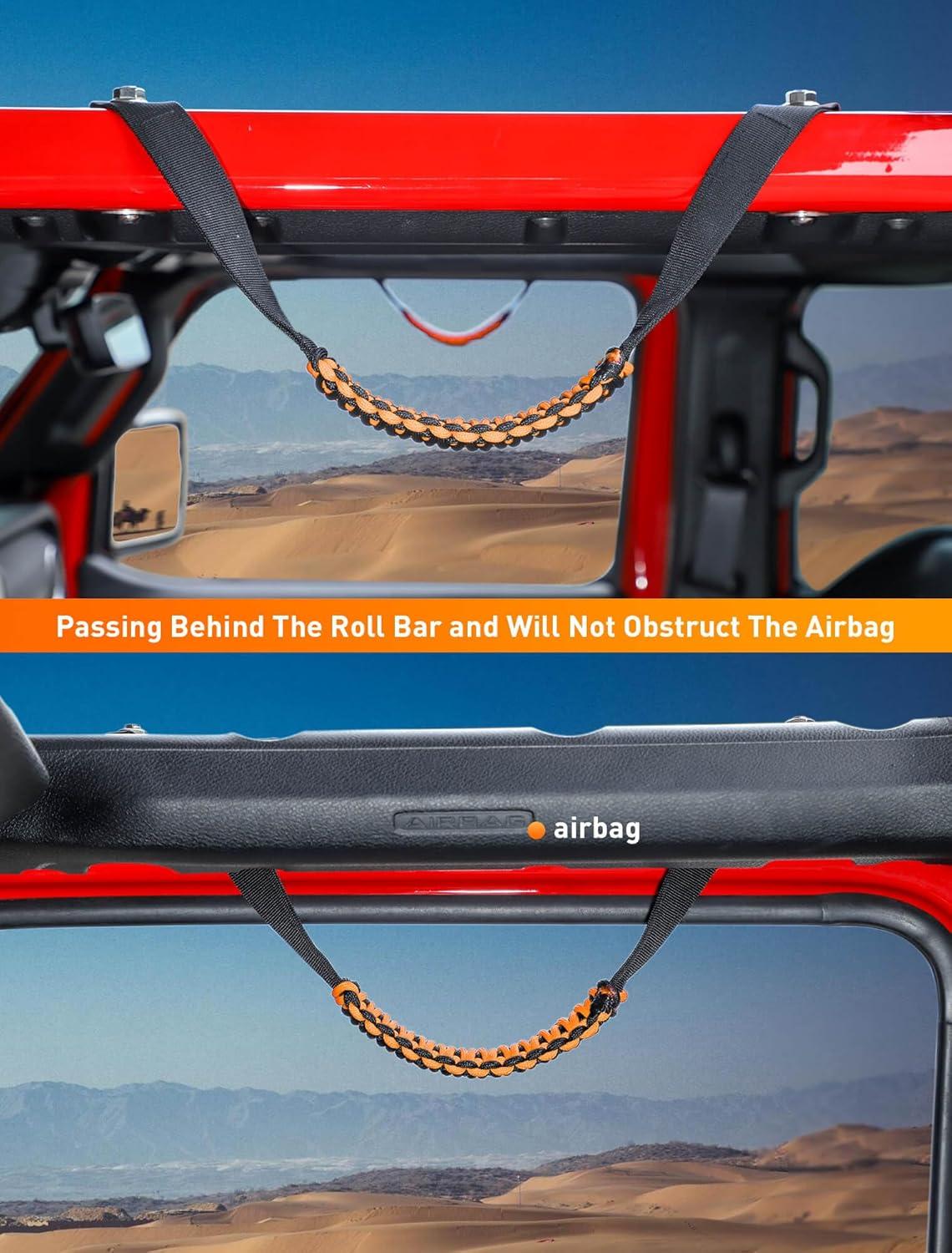 Savadicar 2 Pack Roll Bar Grab Handles for 2018-2024 Jeep Wrangler JL JLU 4XE & Gladiator JT, Roof Top Paracord Handle for Secure Grip, Essential Interior Accessories, Black(Orange)