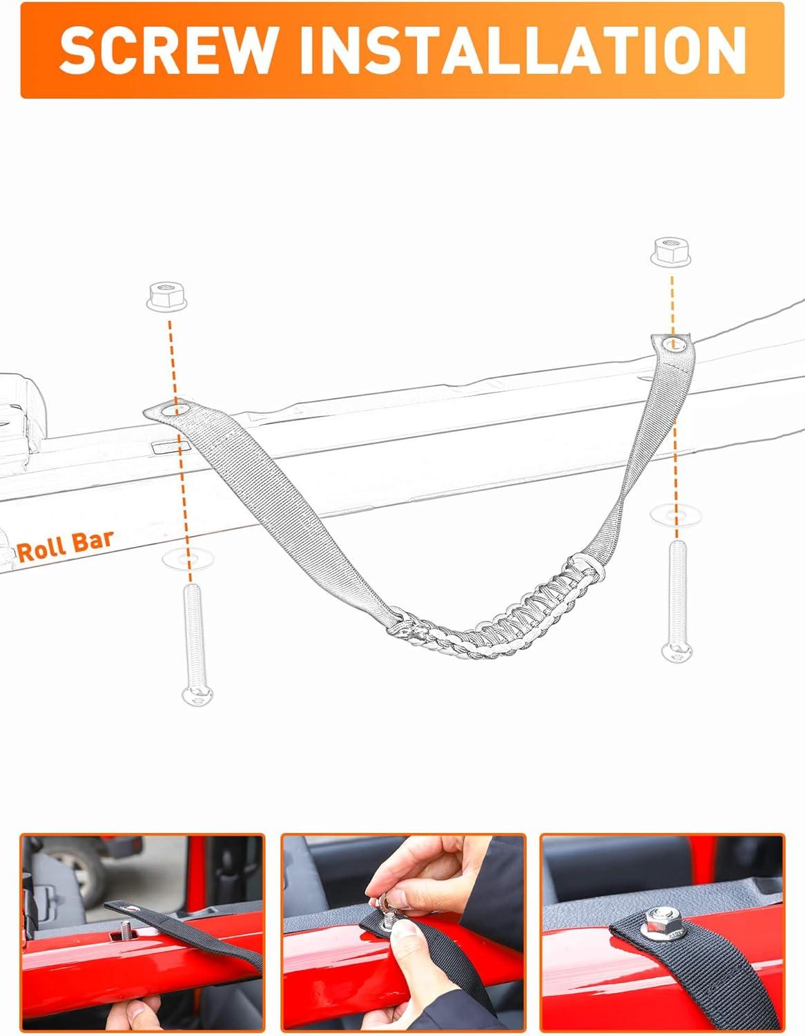 Savadicar 2 Pack Roll Bar Grab Handles for 2018-2024 Jeep Wrangler JL JLU 4XE & Gladiator JT, Roof Top Paracord Handle for Secure Grip, Essential Interior Accessories, Black(Orange)