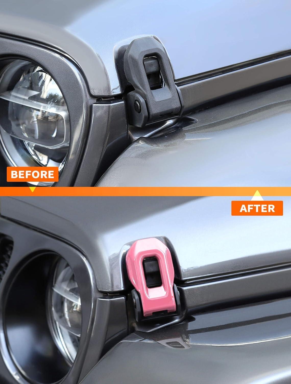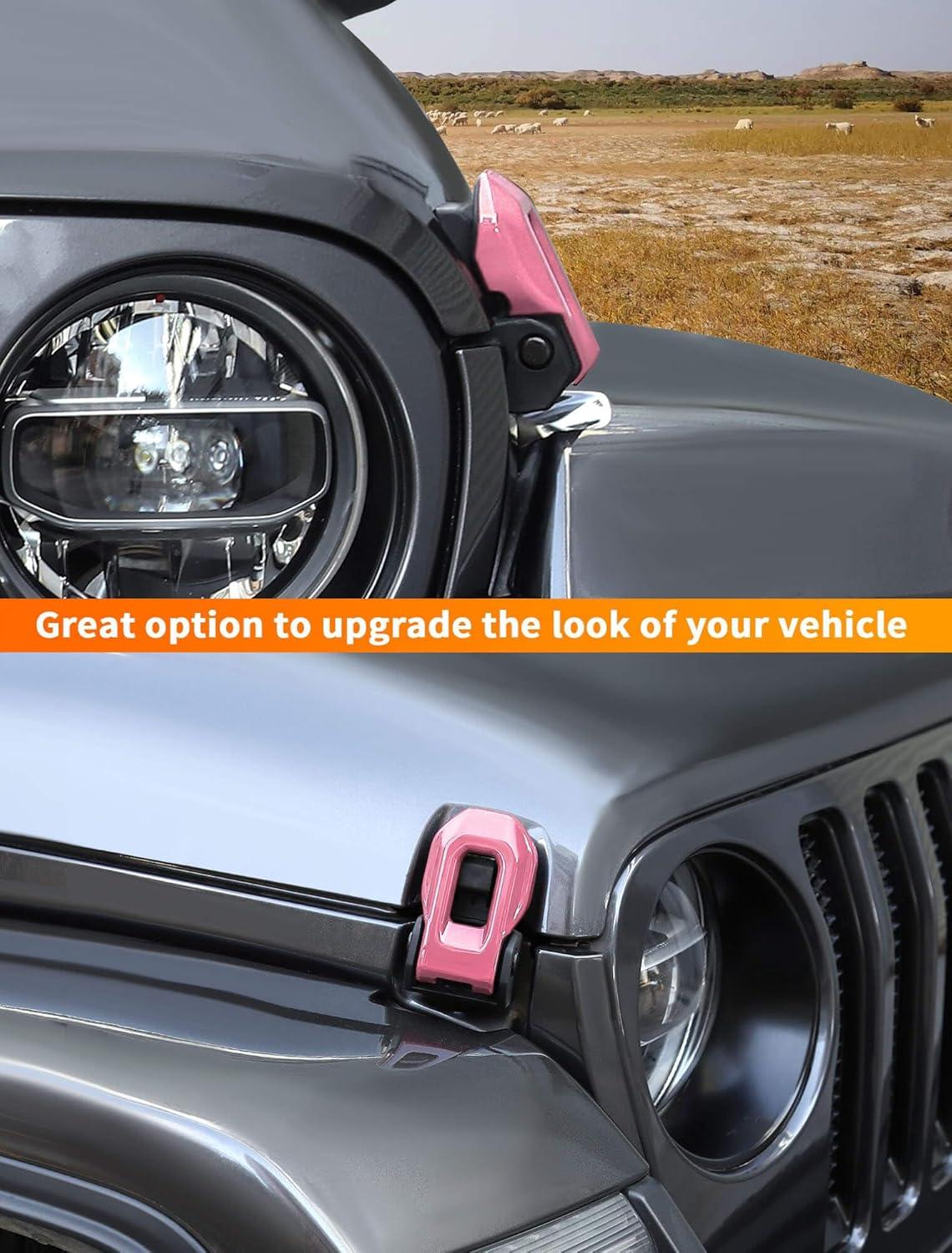 Savadicar 2-Piece Orange Hood Latch Trim Cover for Jeep Wrangler JL JLU 4xe & Gladiator JT 2018-Present – Exterior Decorative Upgrade Accessories(Pink)