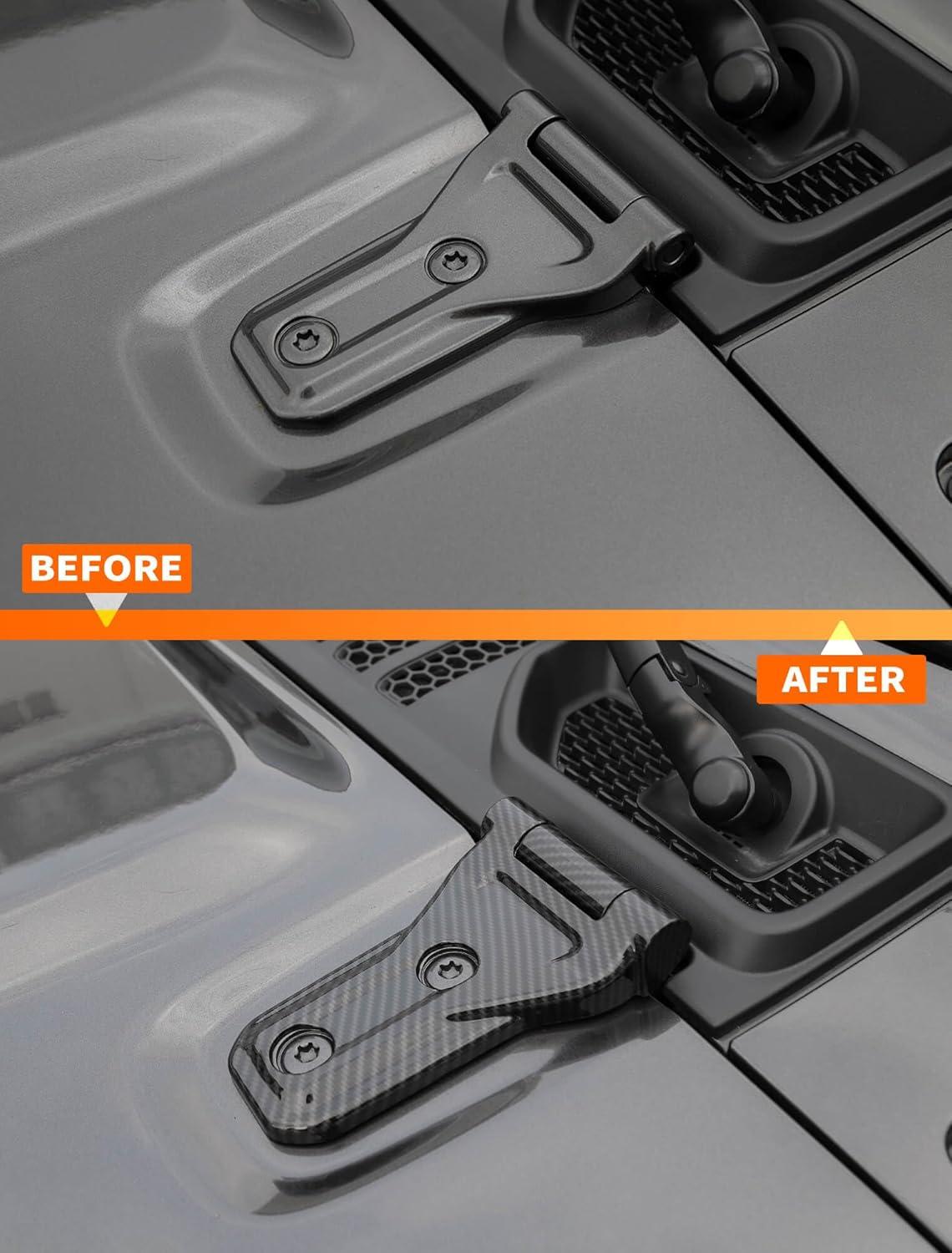 𝗪𝗜𝗗𝗘𝗟𝗬 𝗖𝗢𝗠𝗣𝗔𝗧𝗜𝗕𝗟𝗘 – Savadicar Hood Hinge Trim Cover is specially developed for 2018-Present Jeep Wrangler JL JLU 4XE and Gladiator JT, stylish and beautiful, making it the perfect choice for upgrading the appearance of your vehicle