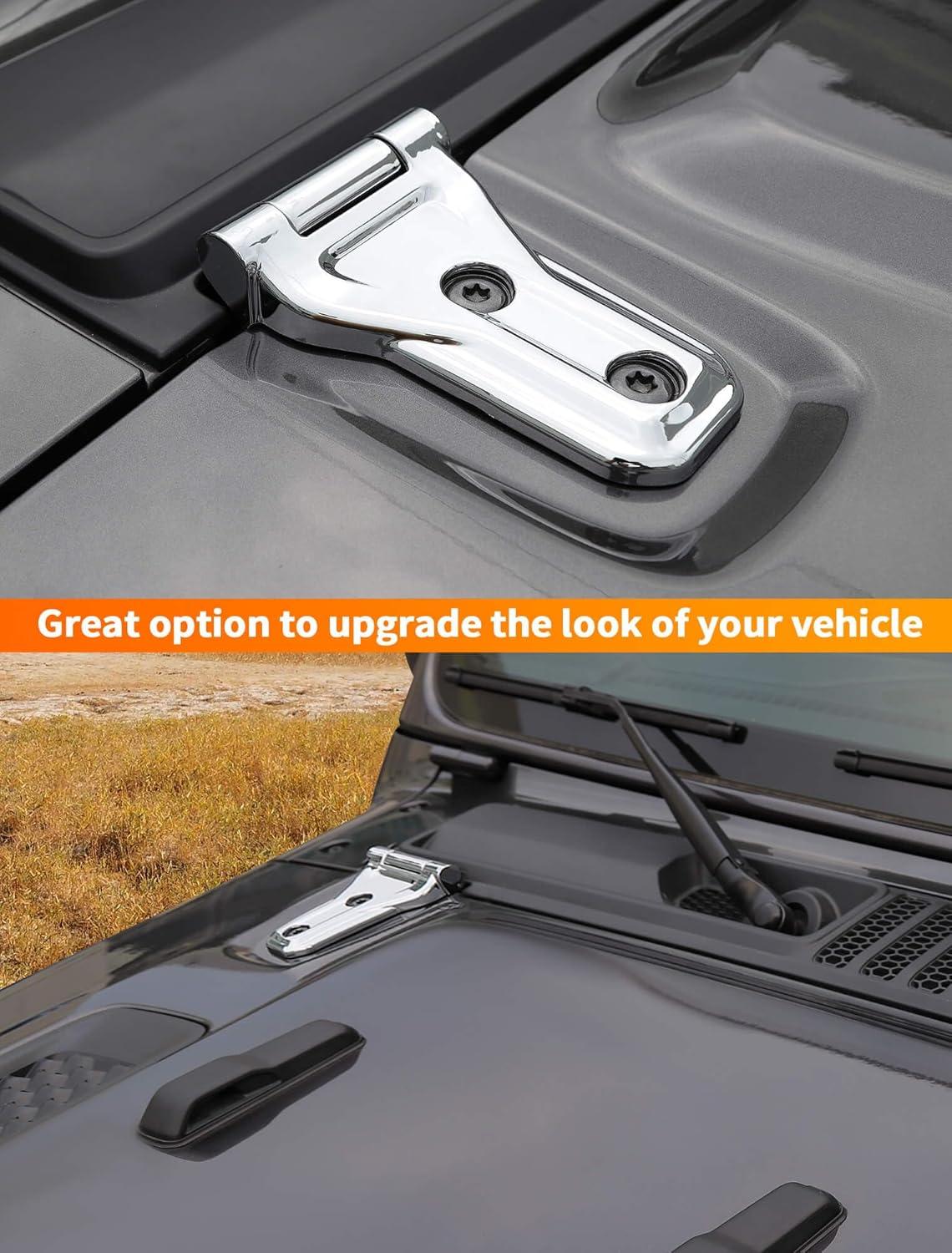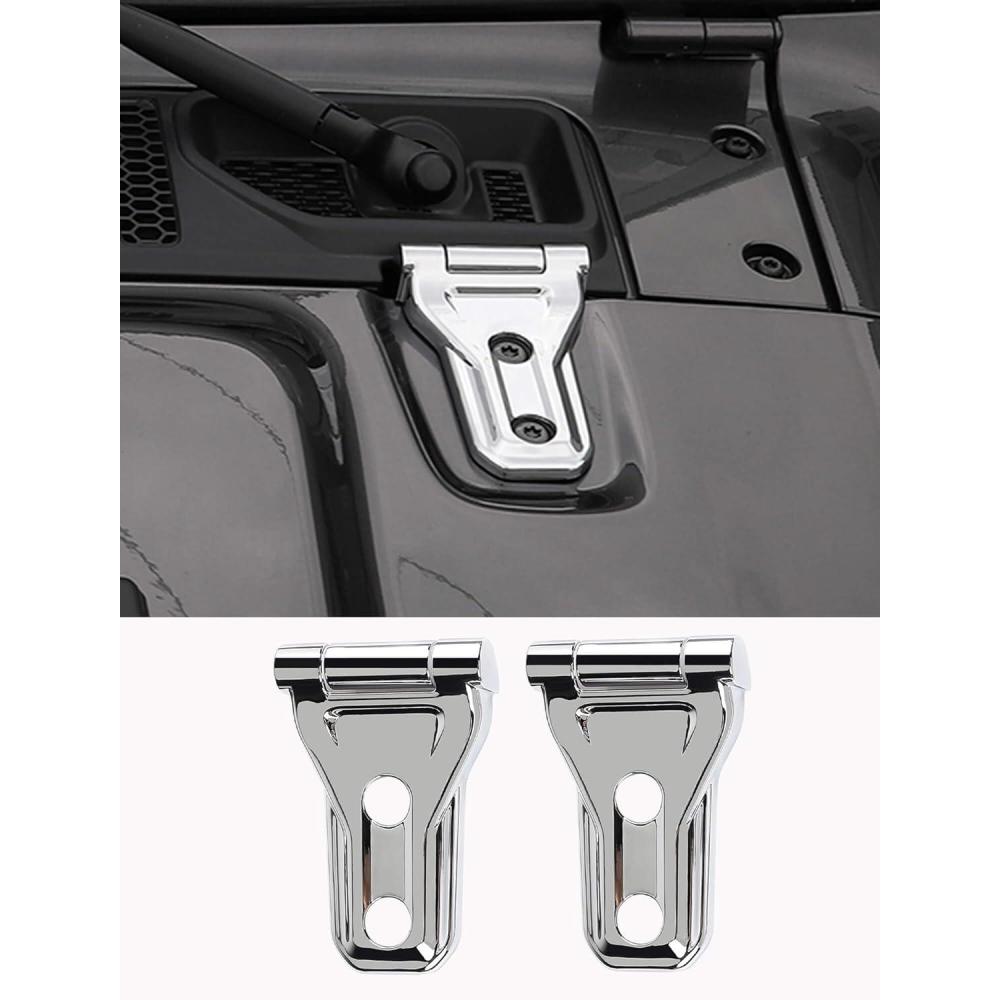 Savadicar 2-Piece Pink Hood Hinge Trim Cover for Jeep Wrangler JL JLU 4xe & Gladiator JT 2018-Present – Exterior Decorative Upgrade Accessories(Chrome)