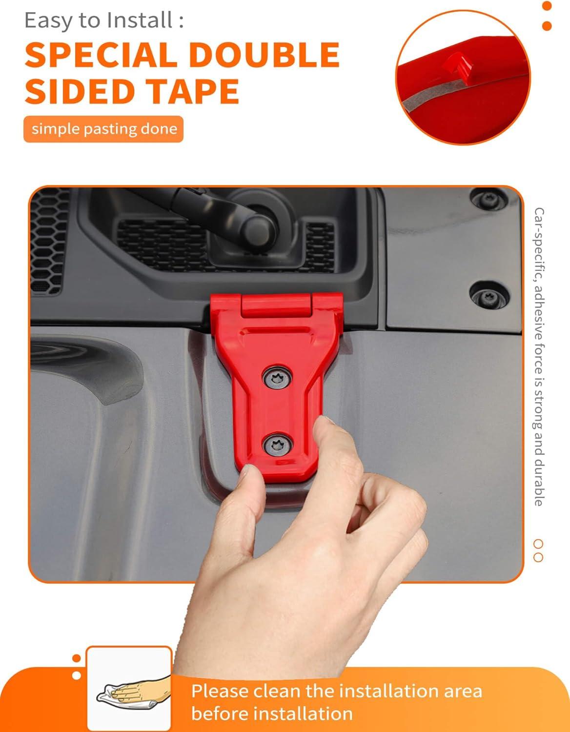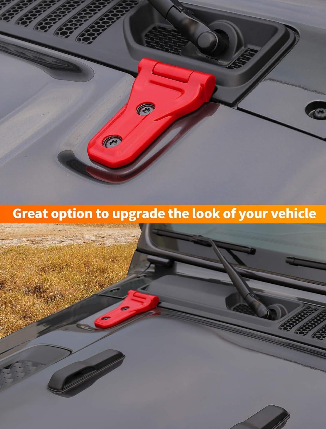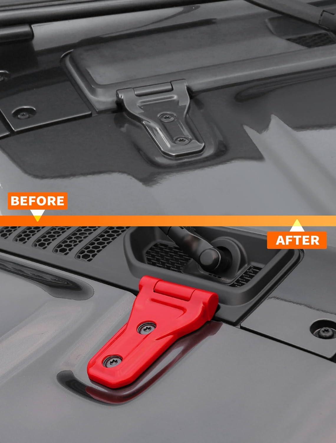 Savadicar 2-Piece Pink Hood Hinge Trim Cover for Jeep Wrangler JL JLU 4xe & Gladiator JT 2018-Present – Exterior Decorative Upgrade Accessories(Red)