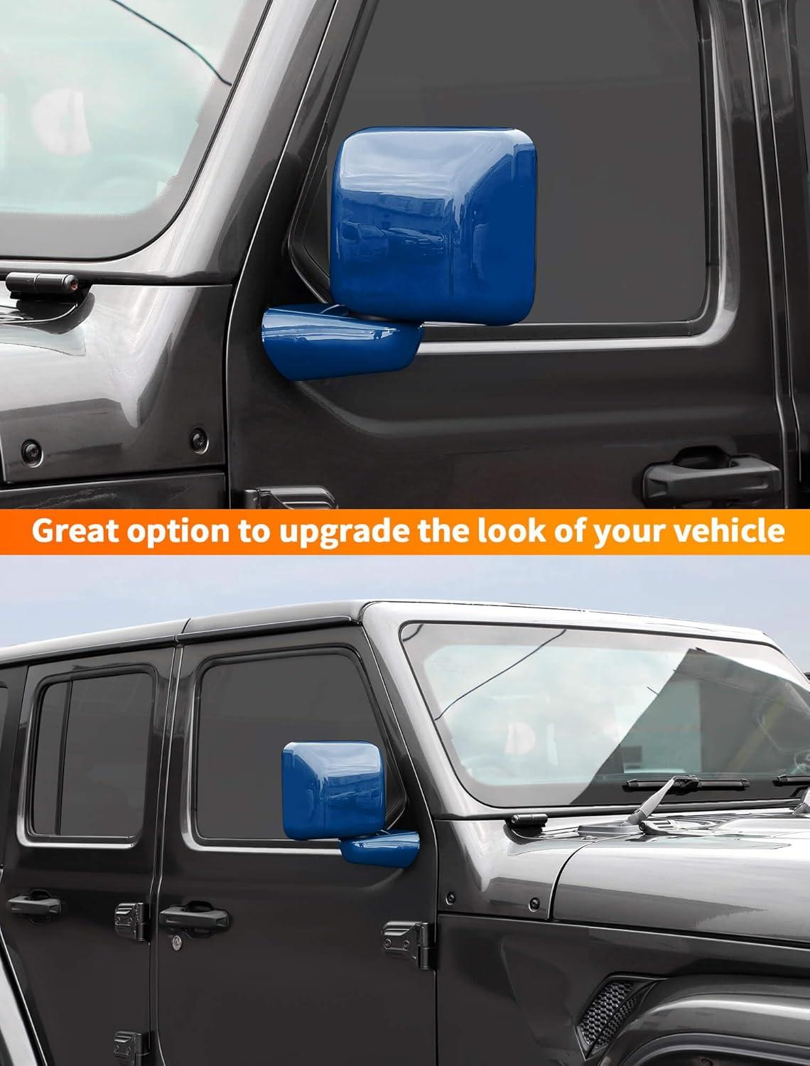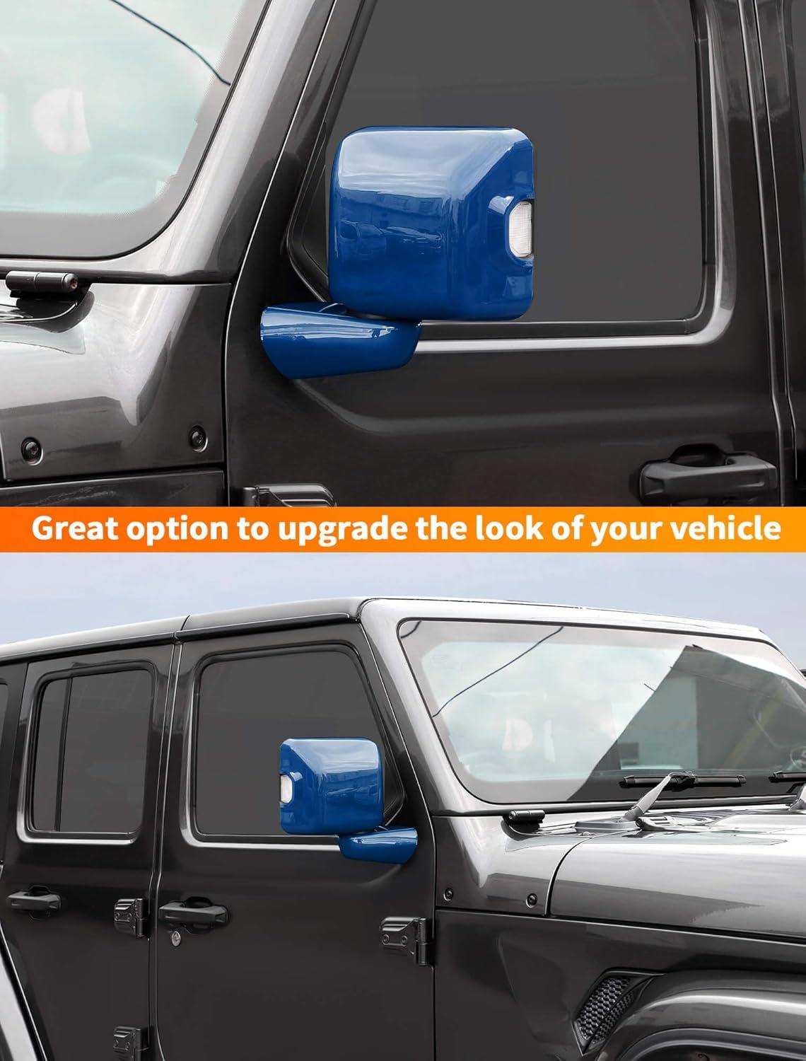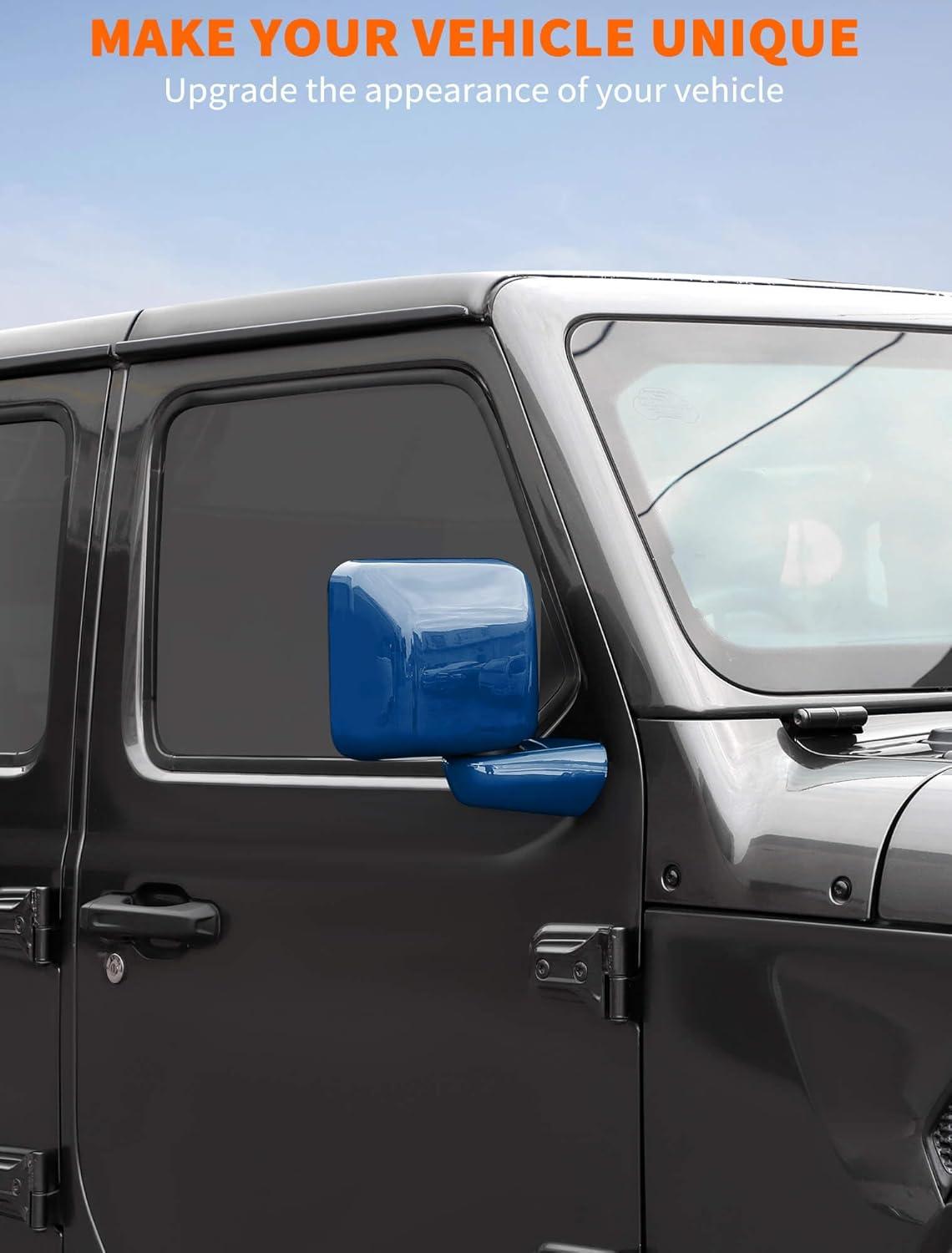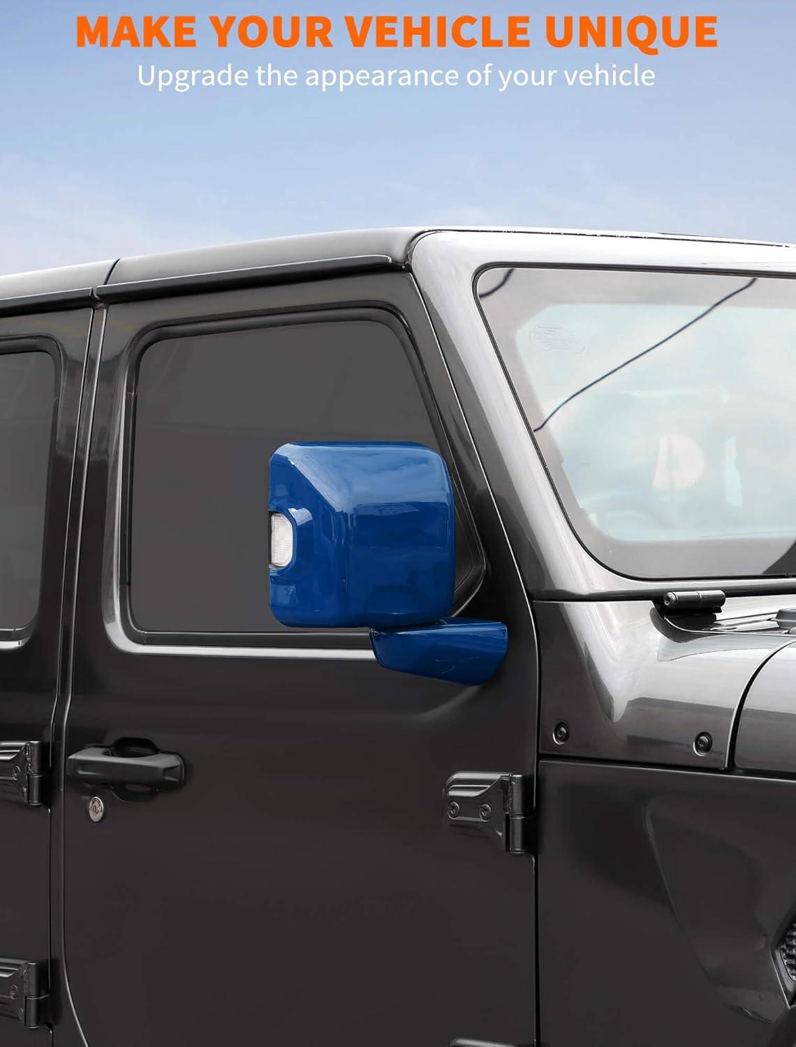 Savadicar 2-Piece Pink Side Mirror Cover Trim Set for Jeep Wrangler JL JLU 4xe & Gladiator JT 2018-Present – Fits Mirrors Without Puddle Lights, Exterior Styling Accessories(Blue)