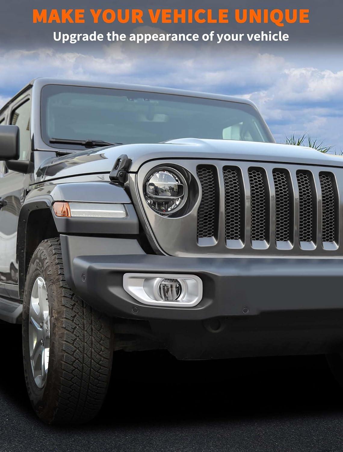 𝗪𝗜𝗗𝗘𝗟𝗬 𝗖𝗢𝗠𝗣𝗔𝗧𝗜𝗕𝗟𝗘 – Savadicar Front Bumper Fog Light Cover is specially developed for 2018-Present Jeep Wrangler JL JLU 4XE and Gladiator JT, stylish and beautiful, making it the perfect choice for upgrading the appearance of your vehicle