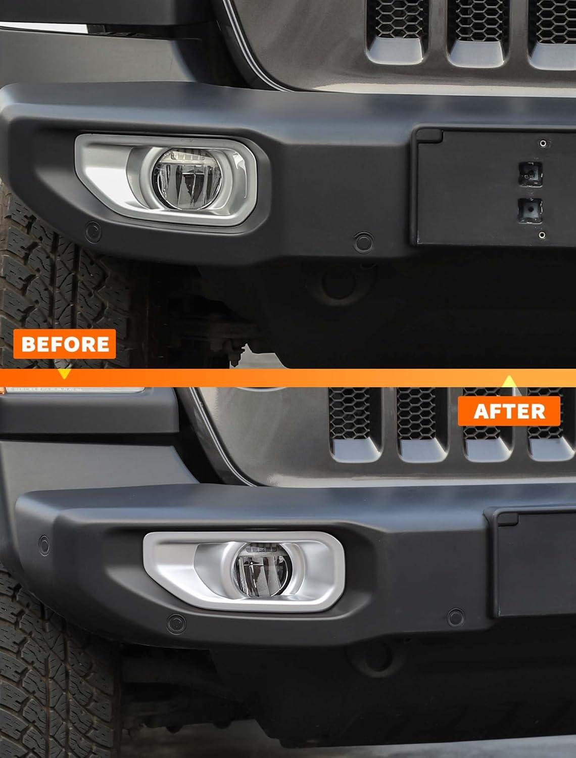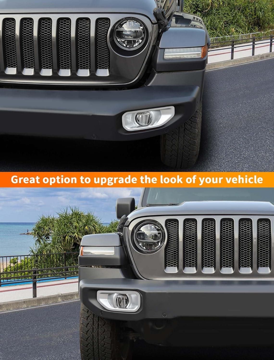 Savadicar 2-Piece Red Fog Light Trim Cover for Jeep Wrangler JL JLU 4xe & Gladiator JT 2018-Present – Exterior Styling Upgrade Accessories(Silver)