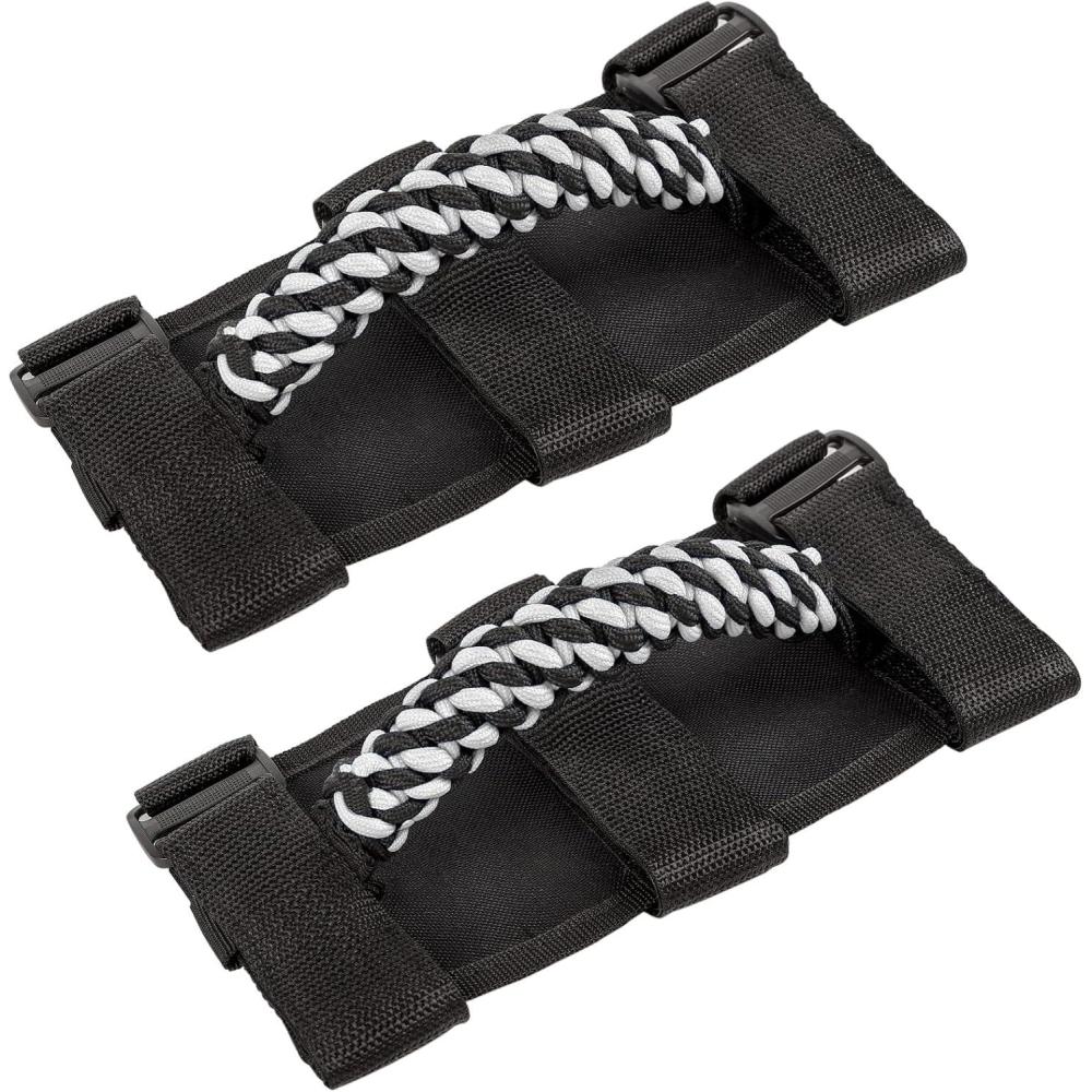 Savadicar 2 x Roll Bar Grab Handles, Circular Weave Grip Handle Compatible with 1955-2023 Jeep Wrangler CJ YJ TJ JK JKU JL JLU & Gladiator JT, Interior Accessories, Black, 2PCs(White)
