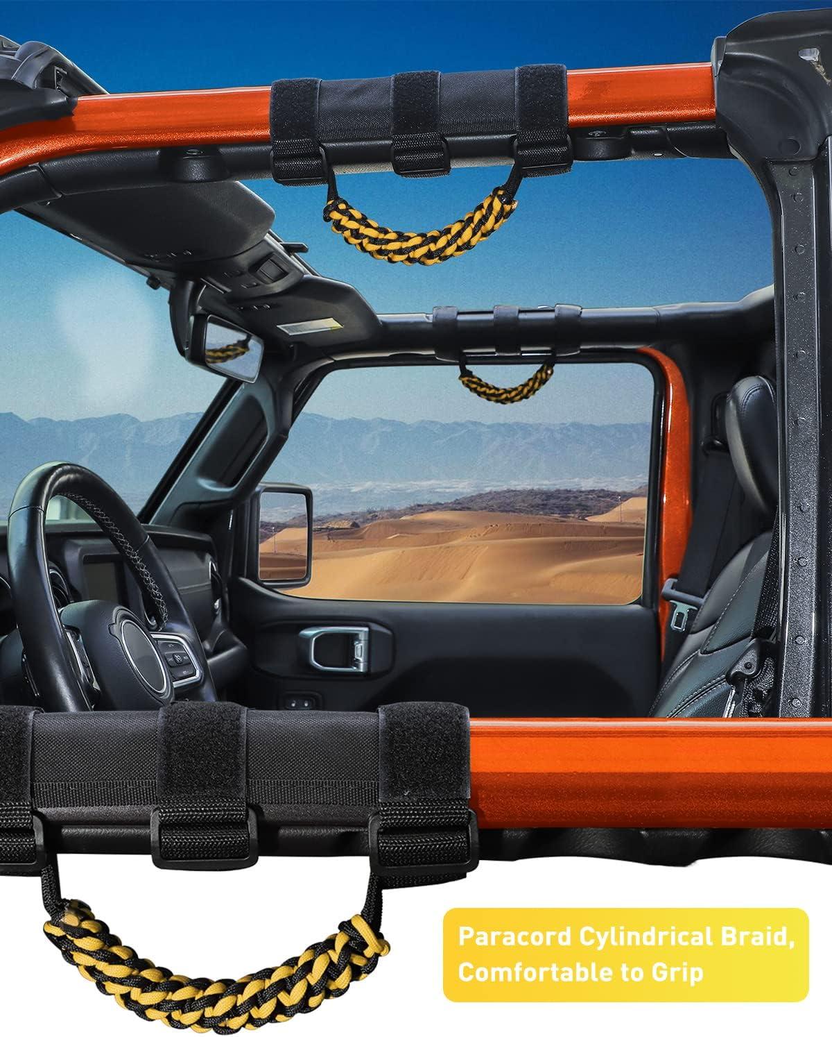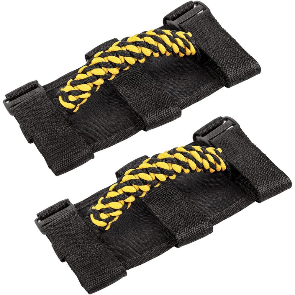 Savadicar 2 x Roll Bar Grab Handles, Circular Weave Grip Handle Compatible with 1955-2023 Jeep Wrangler CJ YJ TJ JK JKU JL JLU & Gladiator JT, Interior Accessories, Black, 2PCs(Yellow)