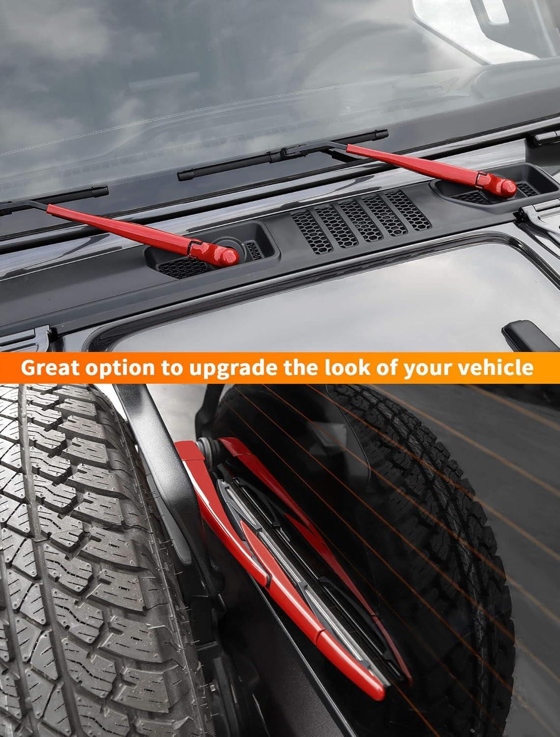 Savadicar 3-Piece Blue Windshield & Rear Wiper Trim Set for Jeep Wrangler JL JLU 4xe & Gladiator JT 2018-Present – Exterior Styling Accent Accessories(Red)