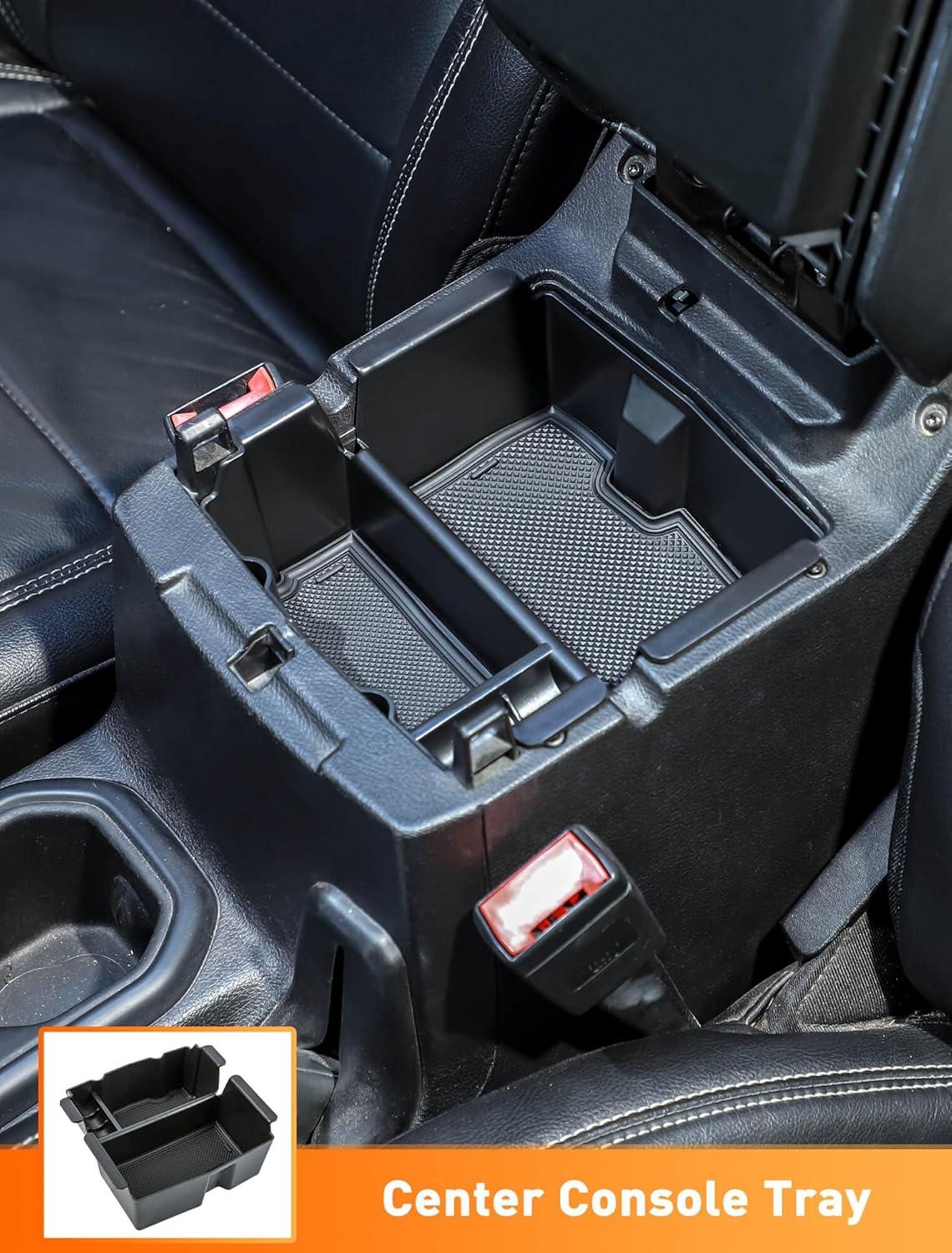 𝗘𝗫𝗧𝗘𝗡𝗗𝗘𝗗 𝗦𝗧𝗢𝗥𝗔𝗚𝗘 𝗦𝗣𝗔𝗖𝗘 – Create more storage space in the front seat to facilitate passengers to place items in this new wrangler accessories, release pockets, and improve riding comfort