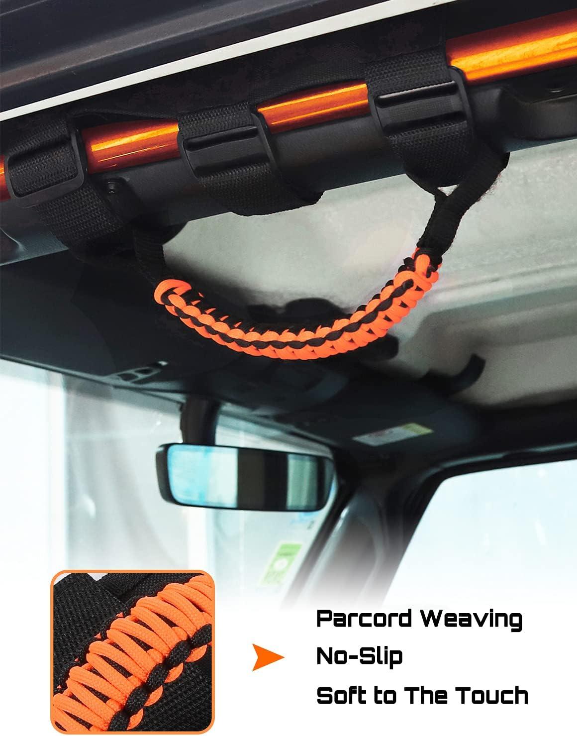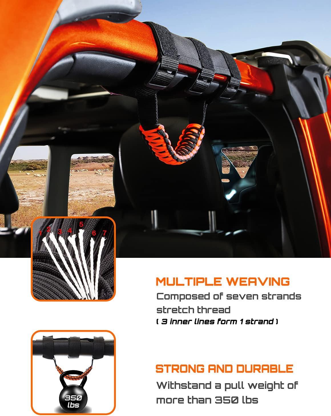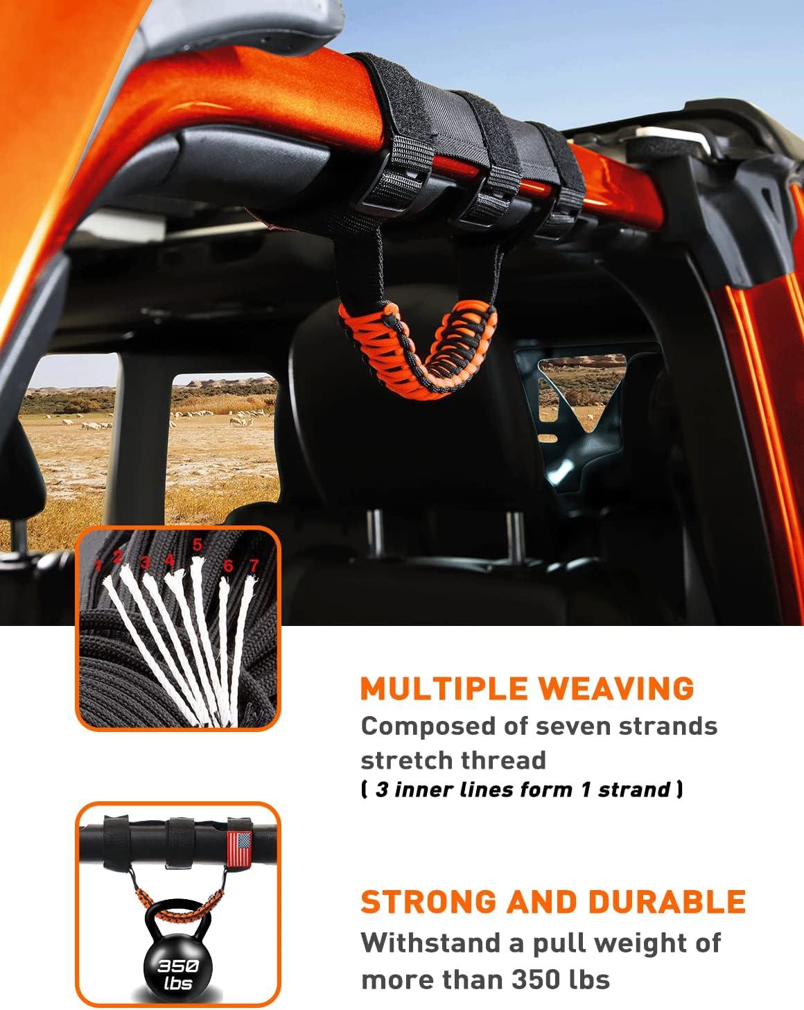 Savadiacr Paracord Grab handles help drivers and riders provide strong support when entering and leaving the car, making it easier for them to get in and out of the seat, reducing the wear and tear caused by the sliding in and out of the seat. At the same time this jeep wrangler grab handles provide grab points for drivers and passengers to increase Safety factor when driving on bumpy roads or driving without doors.
