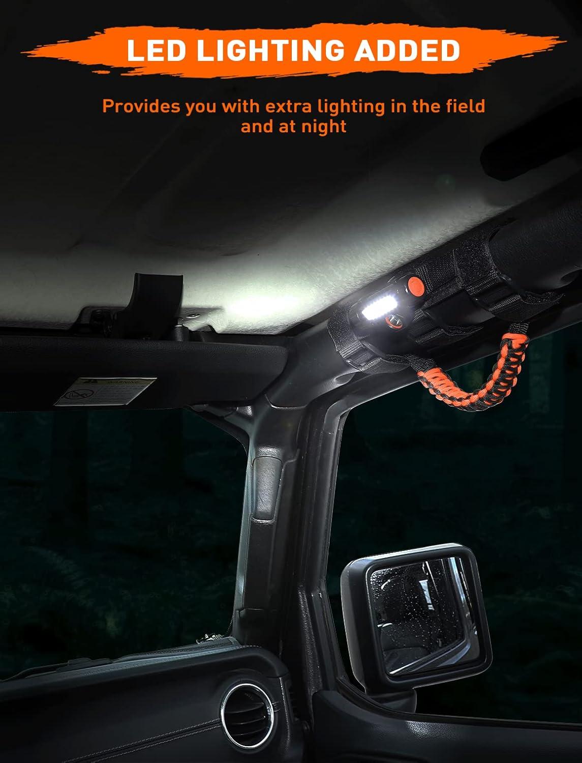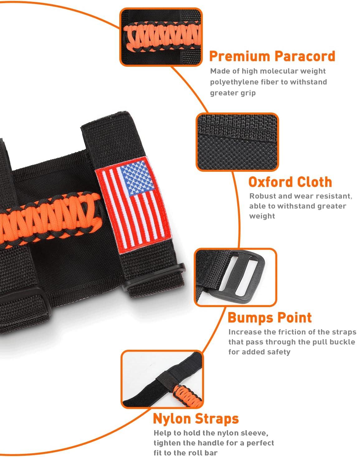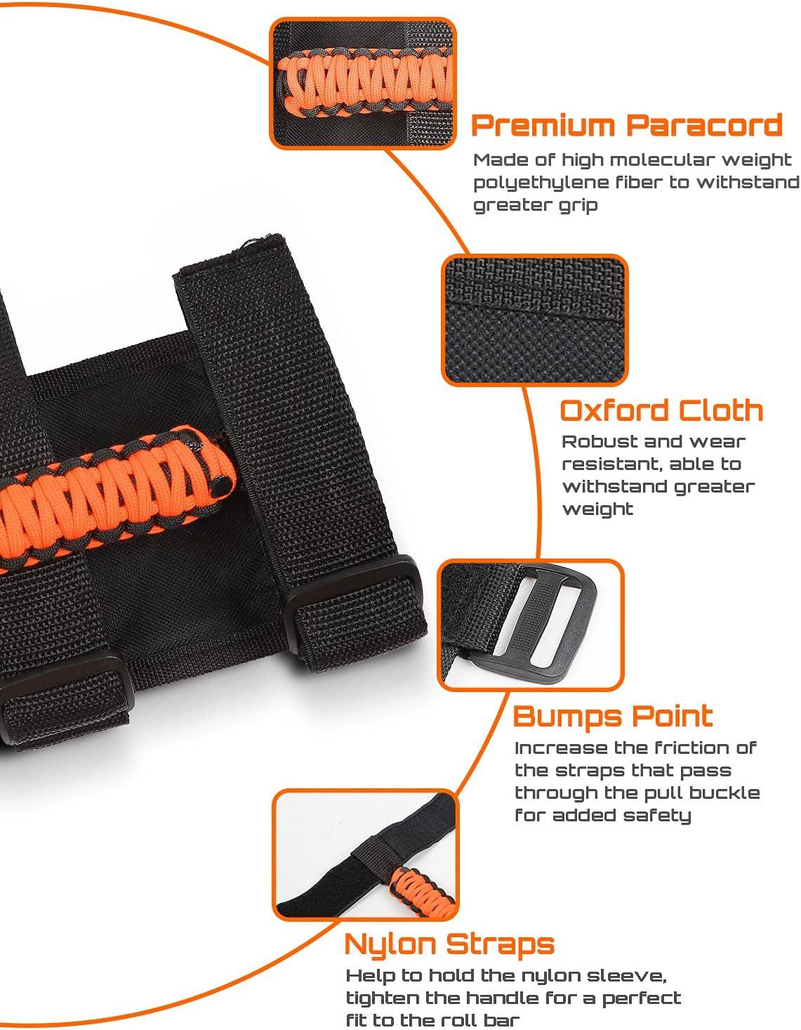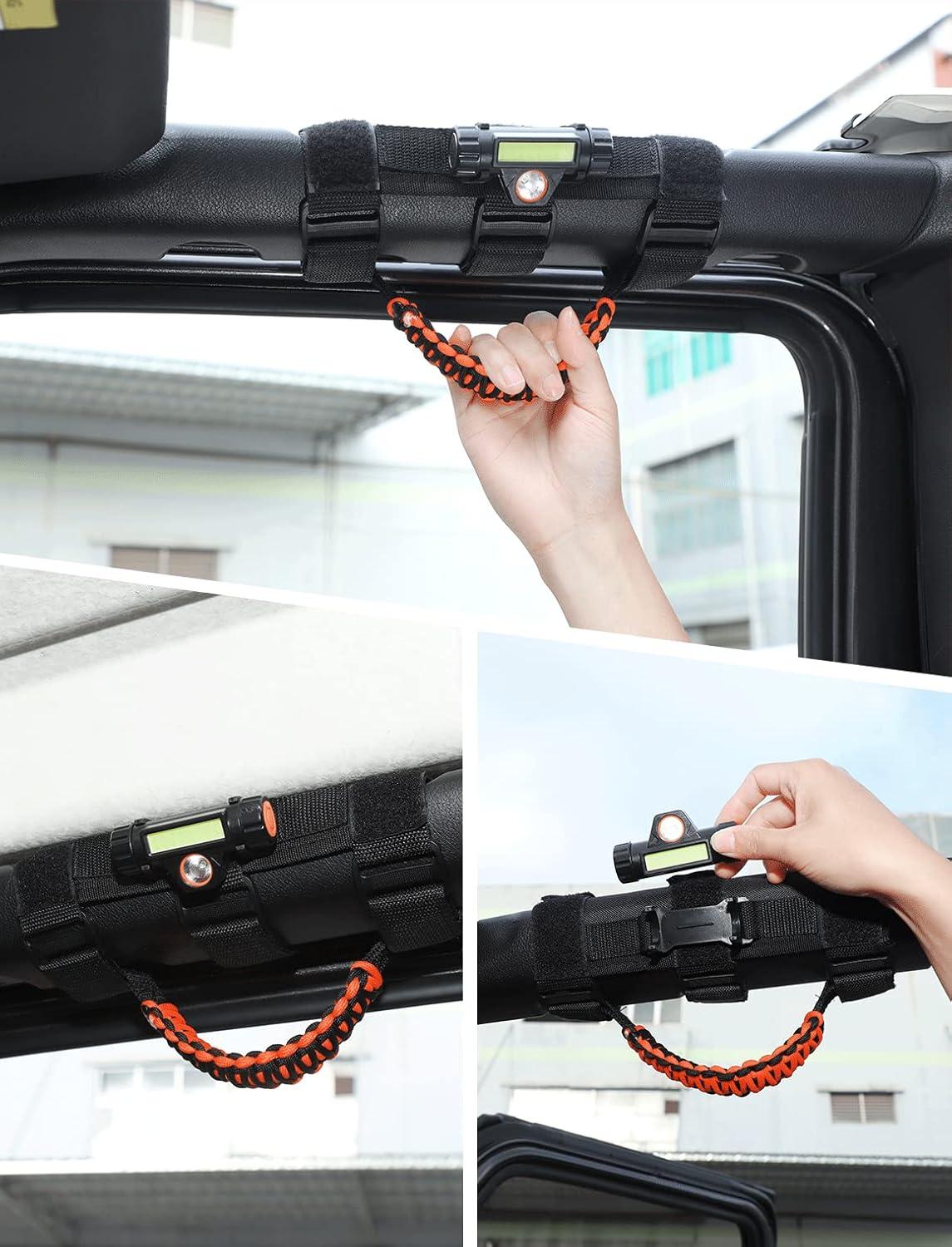 Savadiacr Paracord Grab handles help drivers and riders provide strong support when entering and leaving the car, making it easier for them to get in and out of the seat, reducing the wear and tear caused by the sliding in and out of the seat. At the same time this jeep wrangler grab handles provide grab points for drivers and passengers to increase Safety factor when driving on bumpy roads or driving without doors.