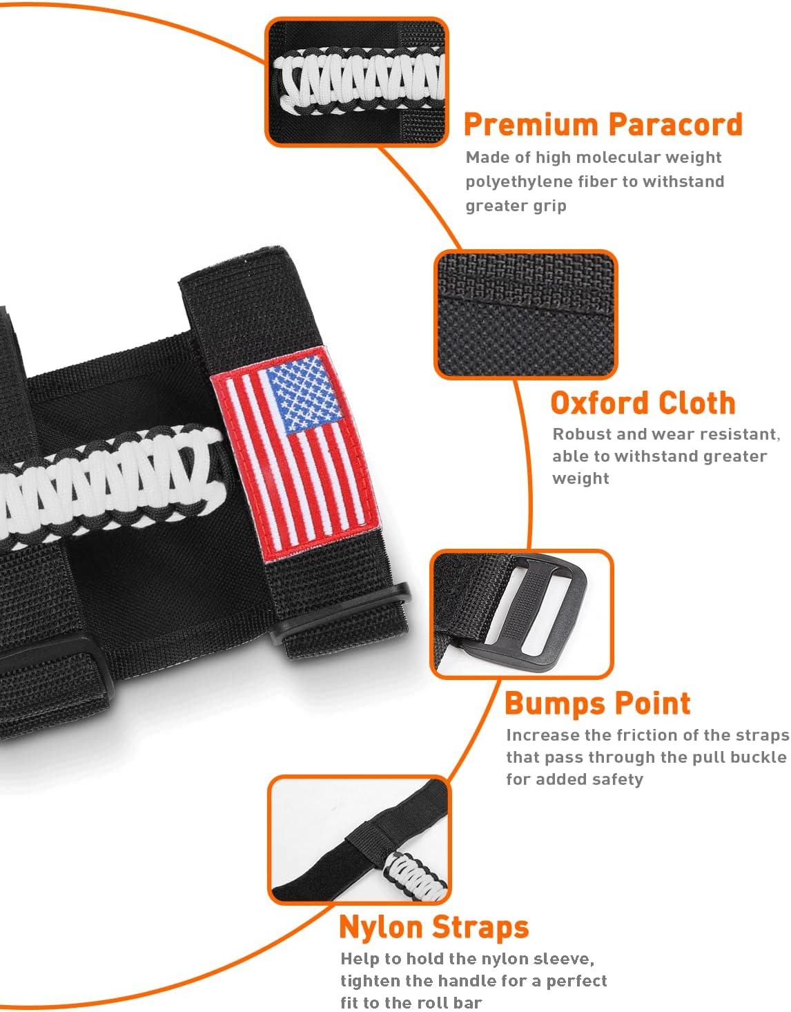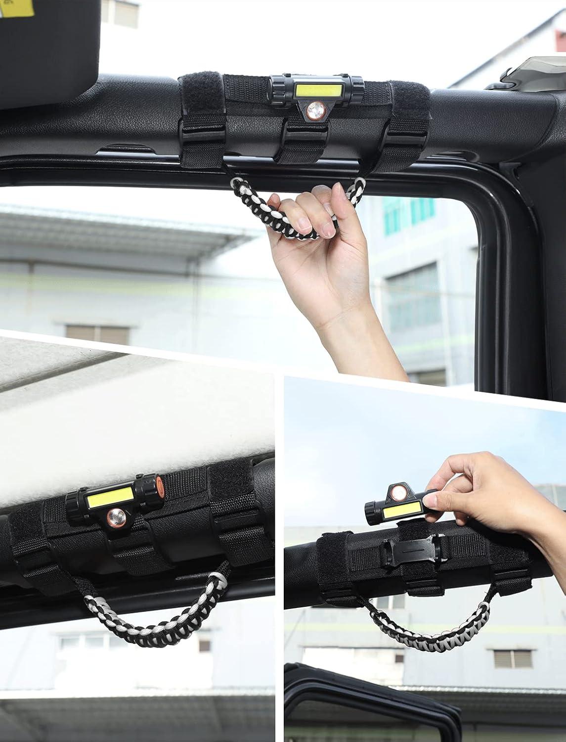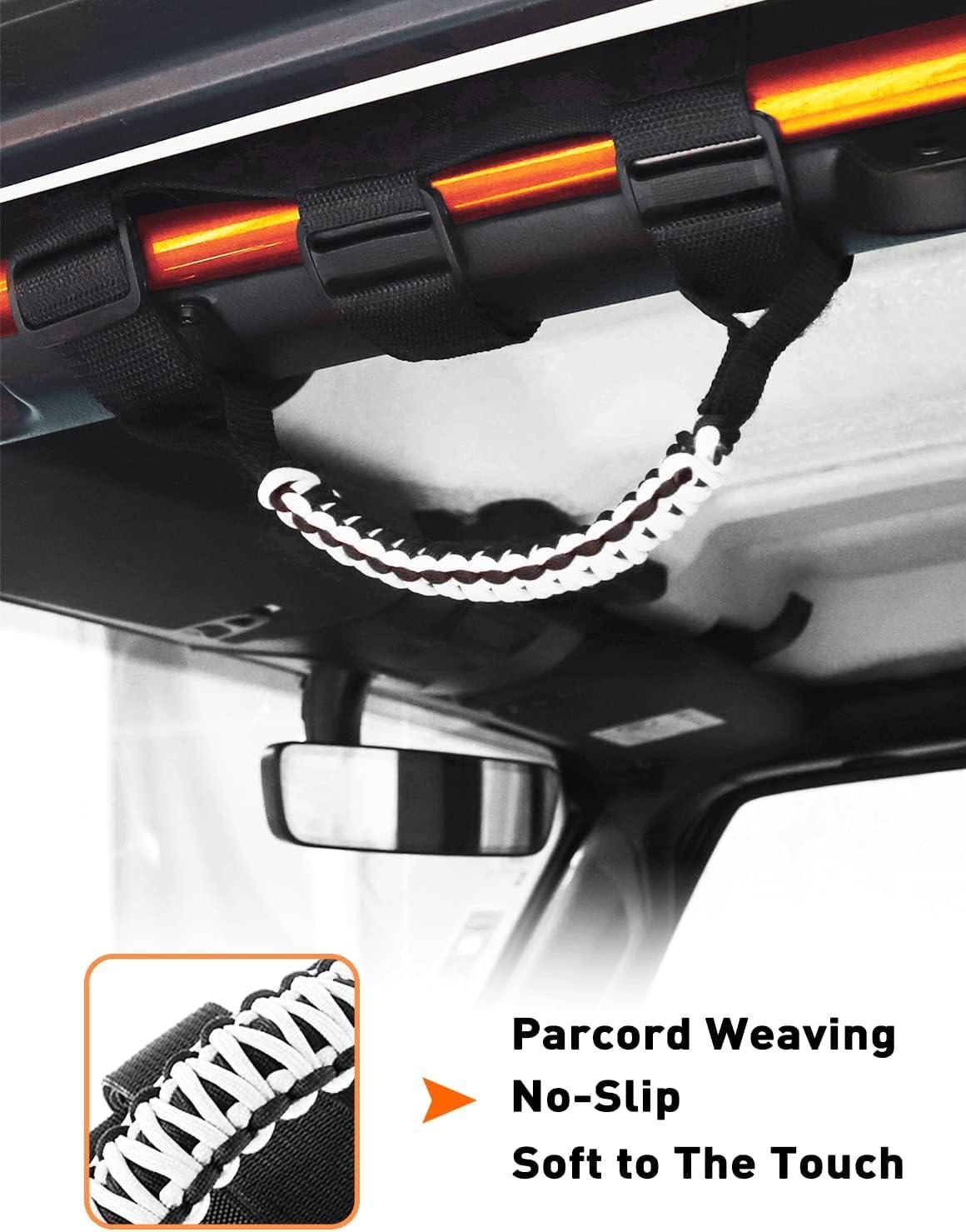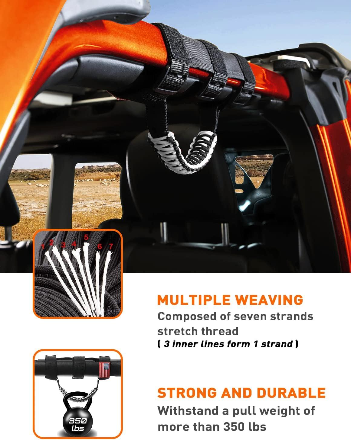 PREFECT FITMENT — Savadicar Paracord Grab Handles prefect fit for all roll bars, Design for 1955-2023 Jeep Wrangler YJ LJ TJ JK JKU JL JLU & Jeep Gladiator JT