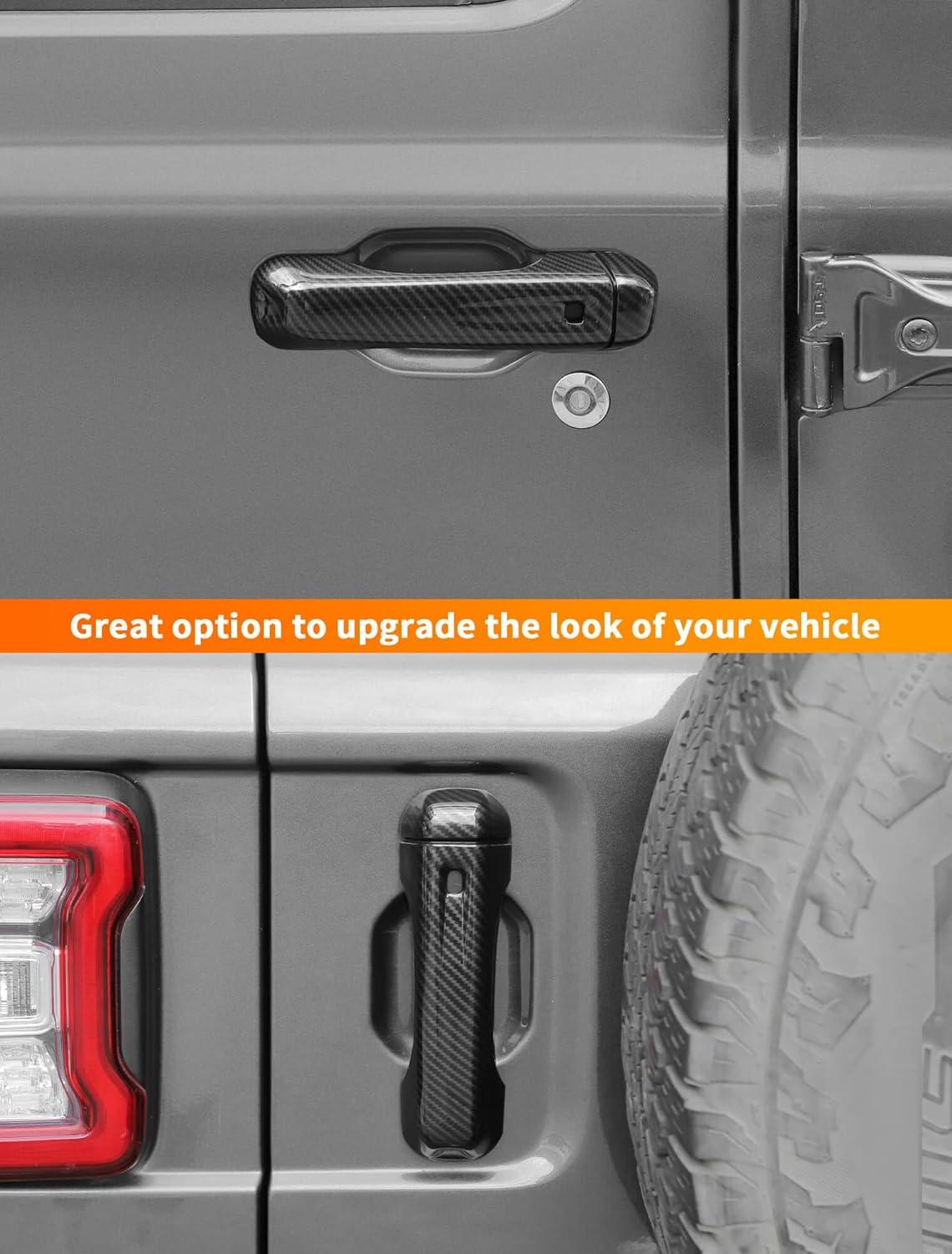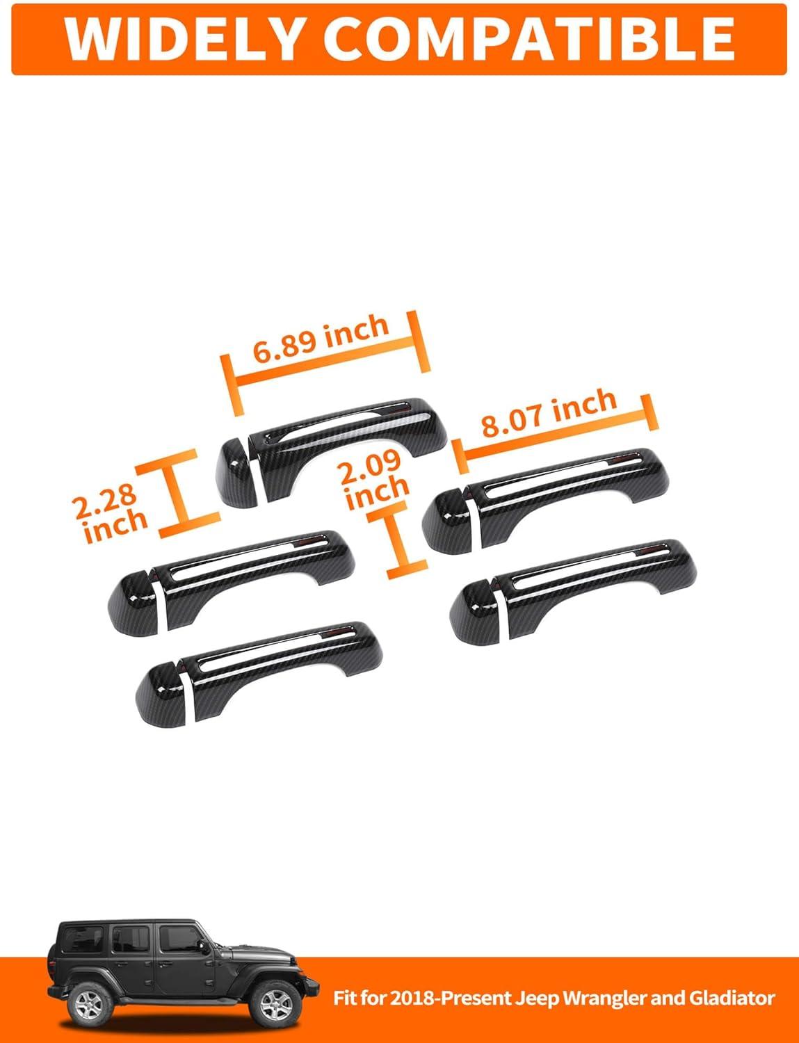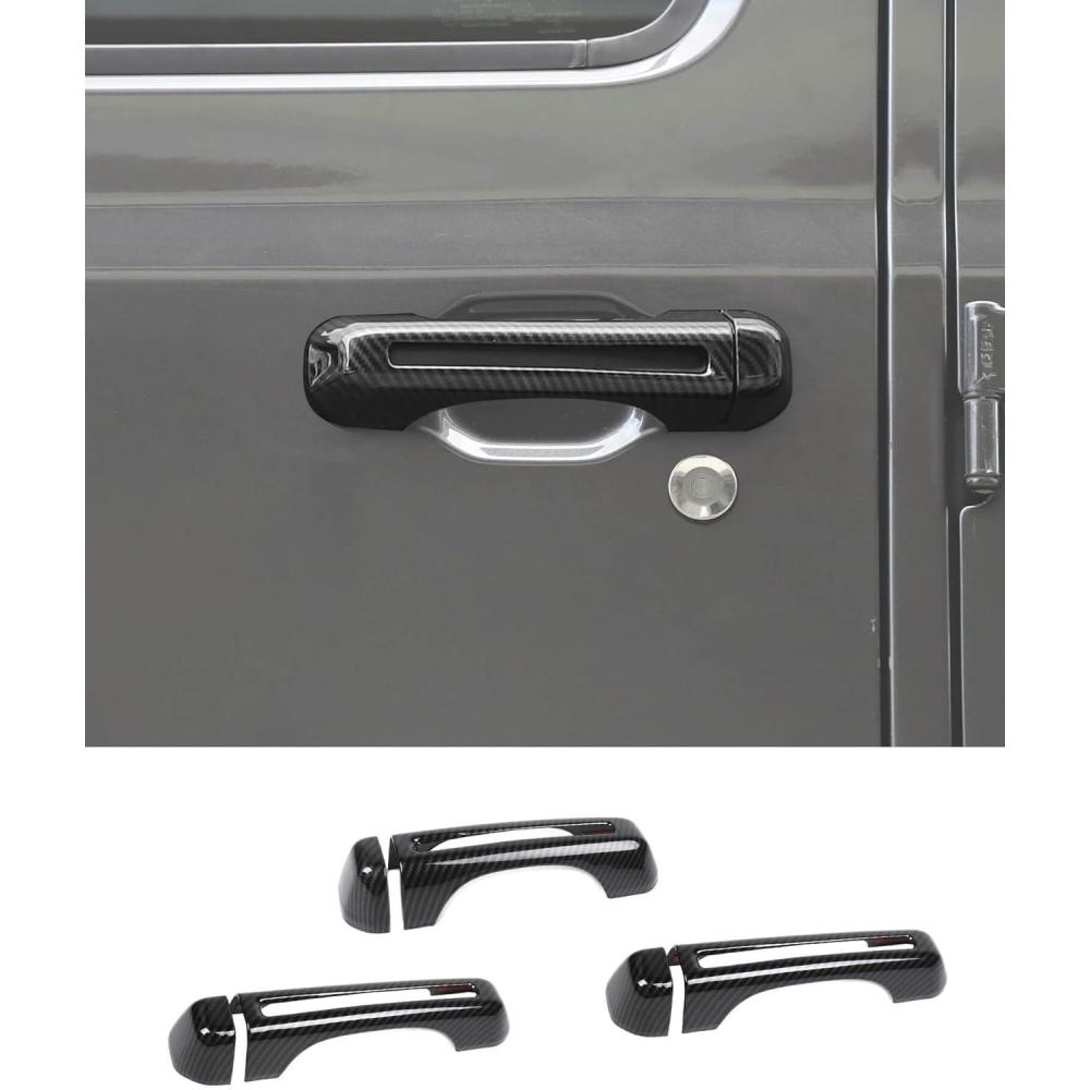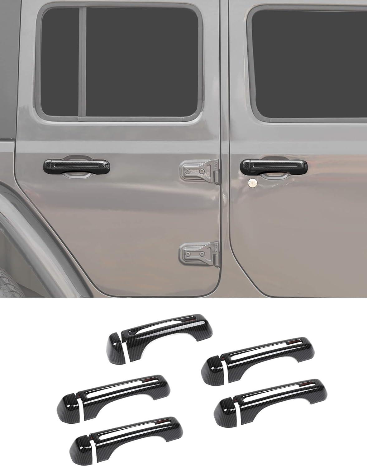 Savadicar 5-Piece Red Door Handle Cover Trim Set for Jeep Wrangler JL JLU 4xe & Gladiator JT 2018-Present – Exterior Handle Cap Accent Accessories(Carbon Fiber)