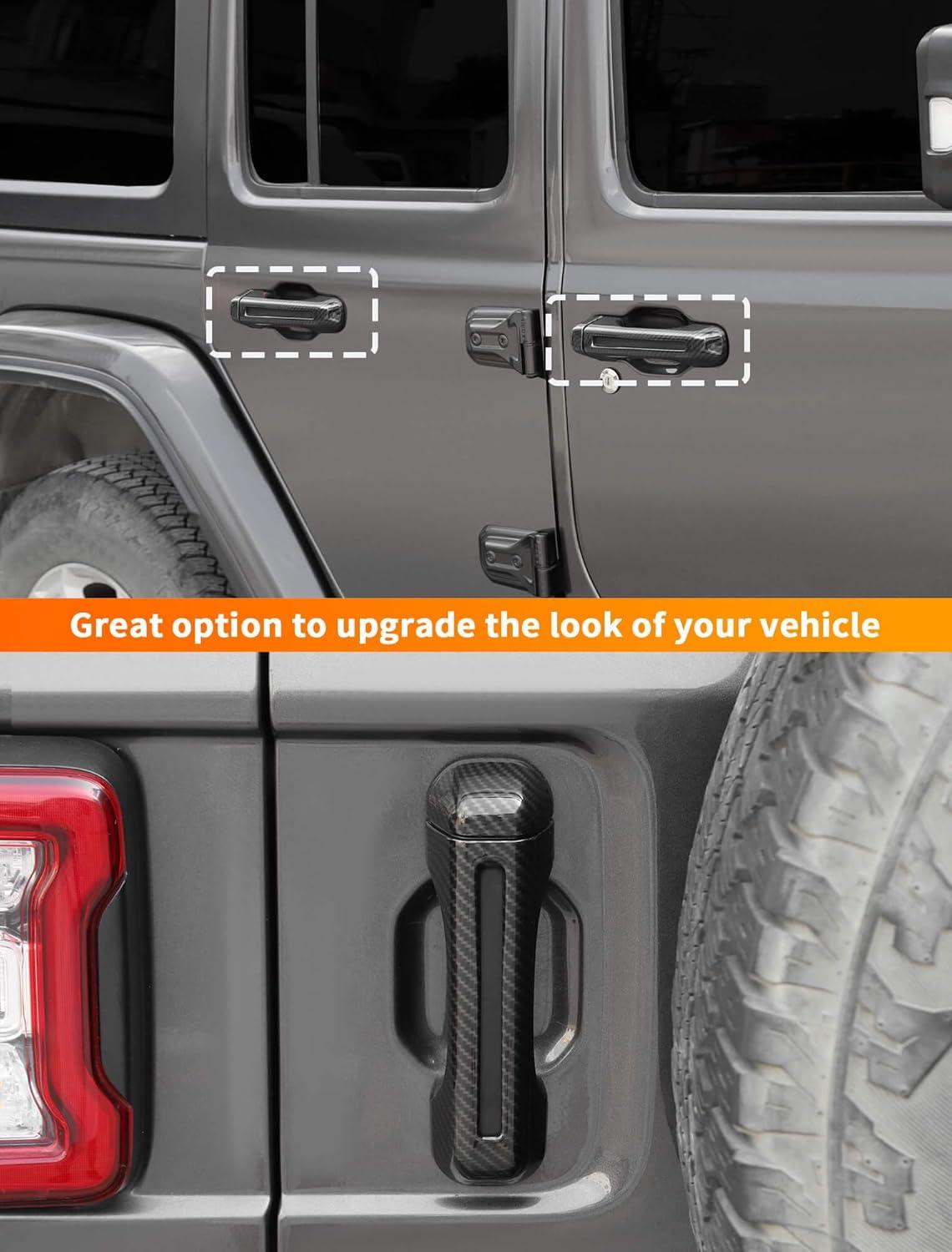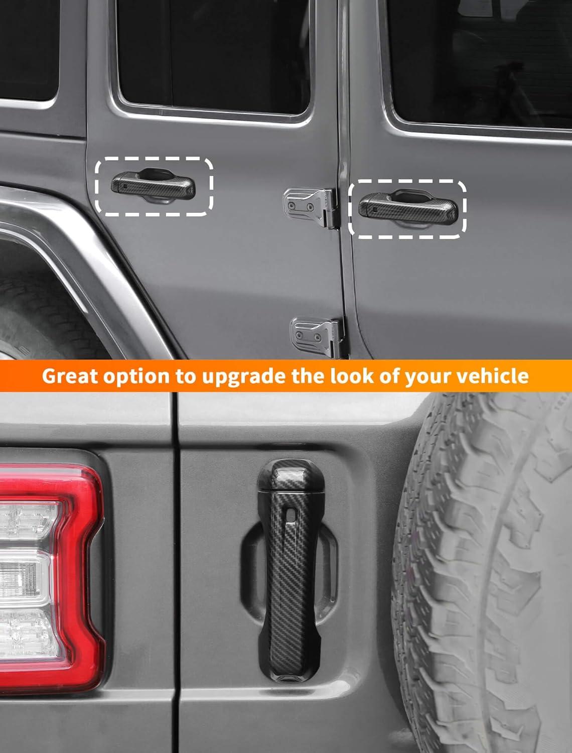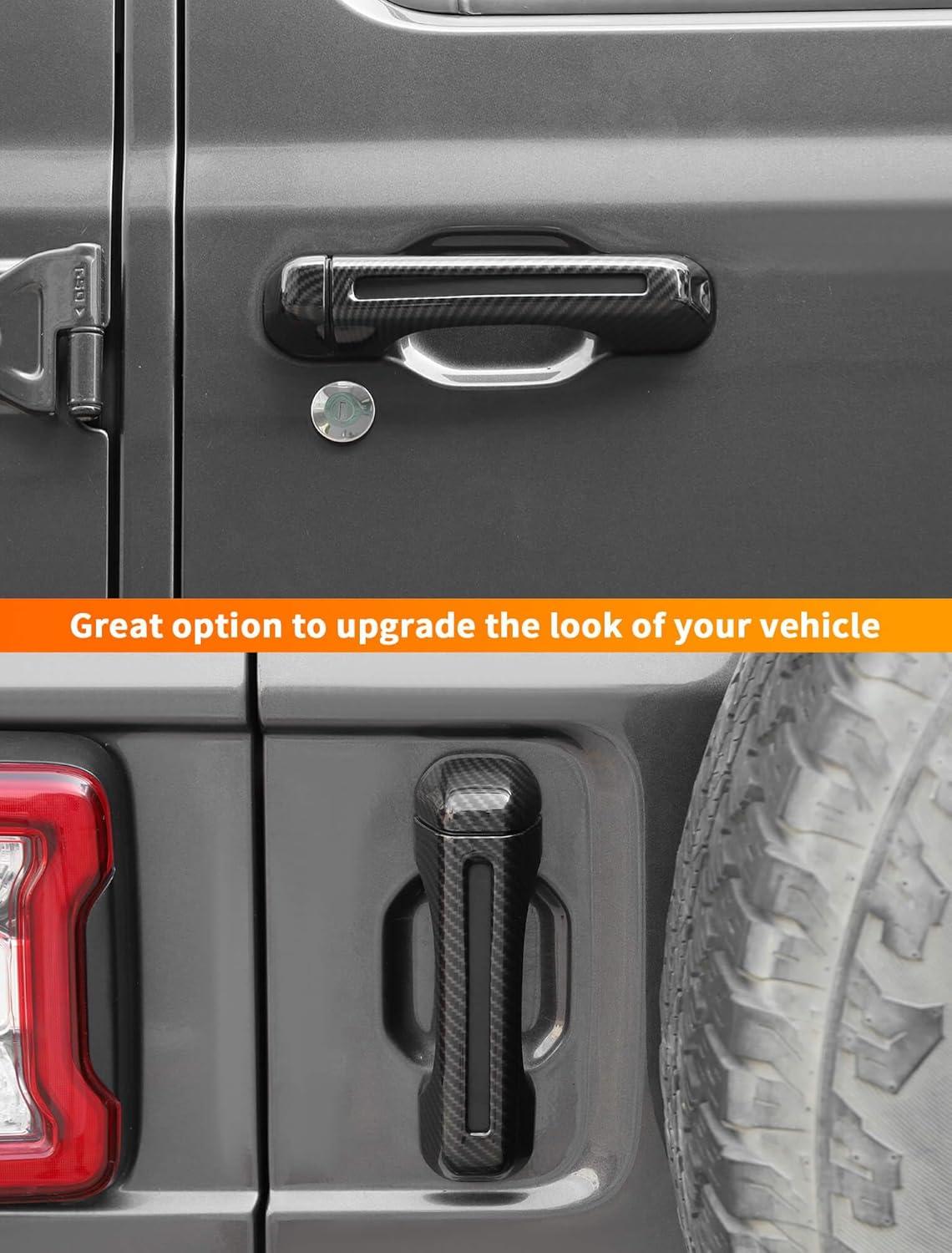 Savadicar 5-Piece Red Door Handle Cover Trim Set for Jeep Wrangler JL JLU 4xe & Gladiator JT 2018-Present – Exterior Handle Cap Accent Accessories(Carbon Fiber)