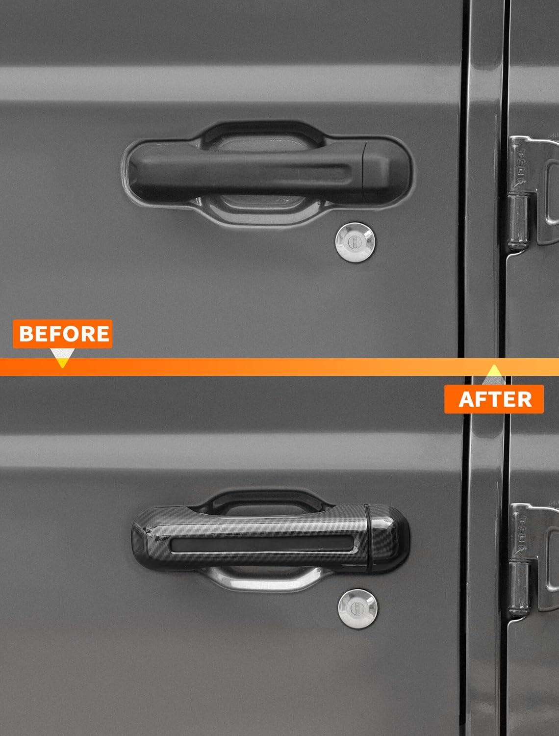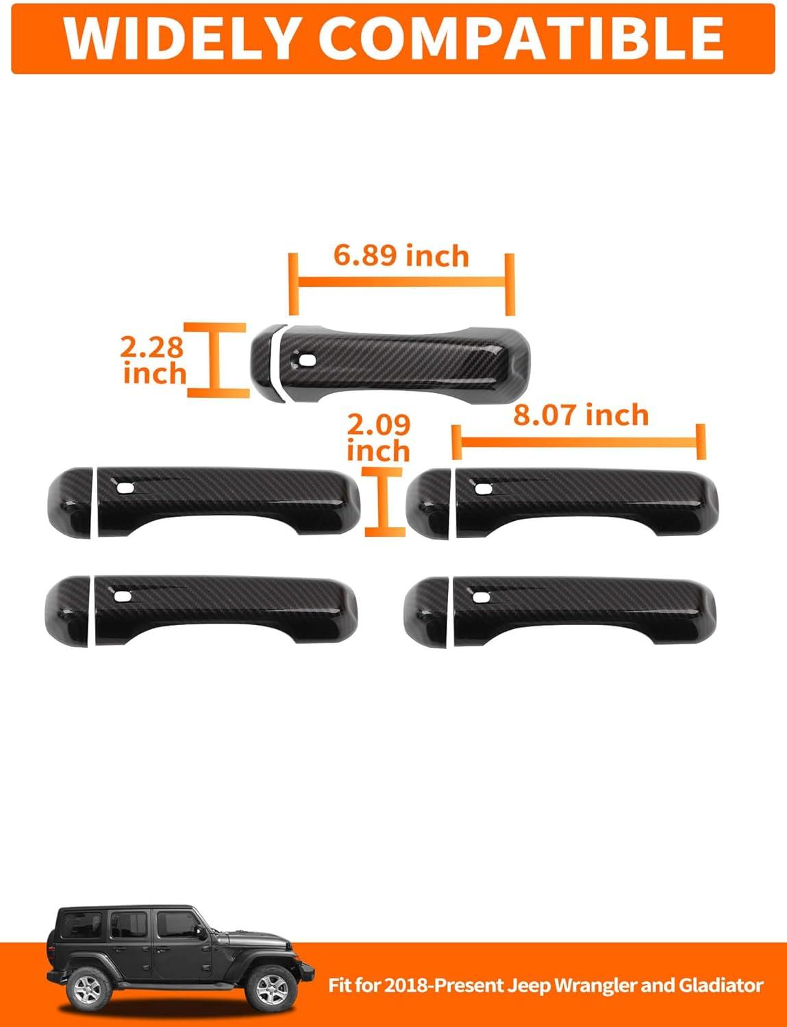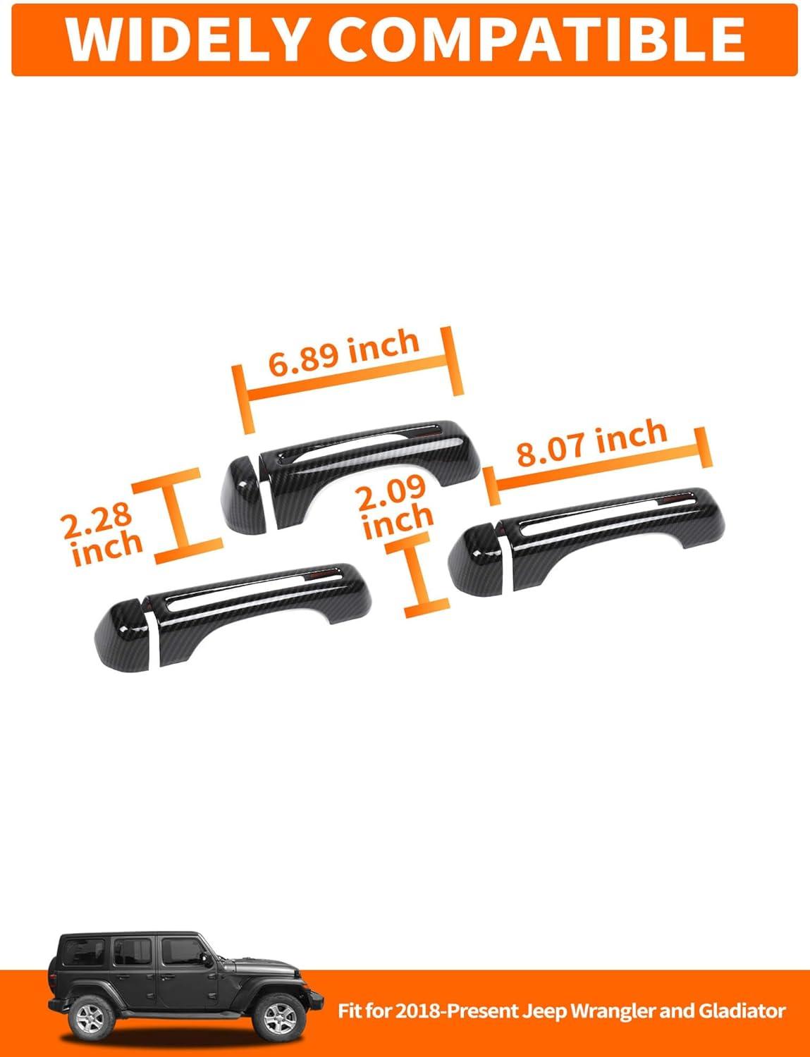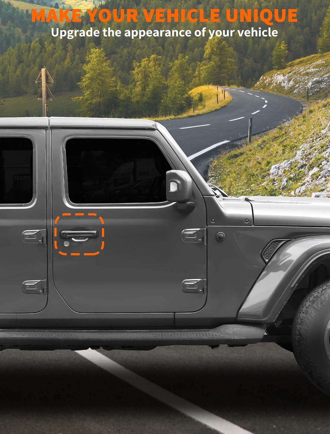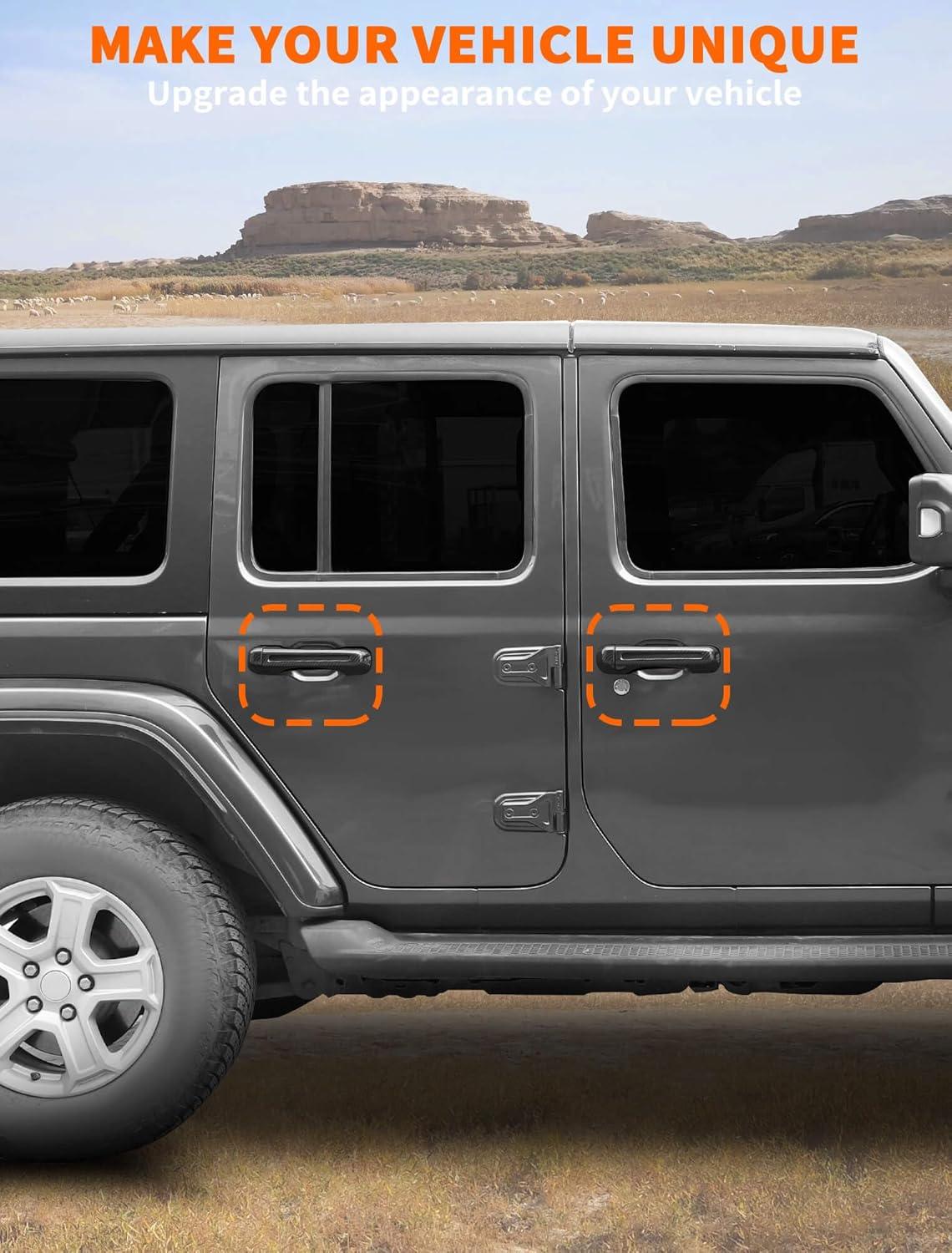 𝗪𝗜𝗗𝗘𝗟𝗬 𝗖𝗢𝗠𝗣𝗔𝗧𝗜𝗕𝗟𝗘 – Savadicar Door Handle Cover Trim Set is specially developed for 2018-Present Jeep Wrangler JL JLU 4XE and Gladiator JT, stylish and beautiful, making it the perfect choice for upgrading the appearance of your vehicle