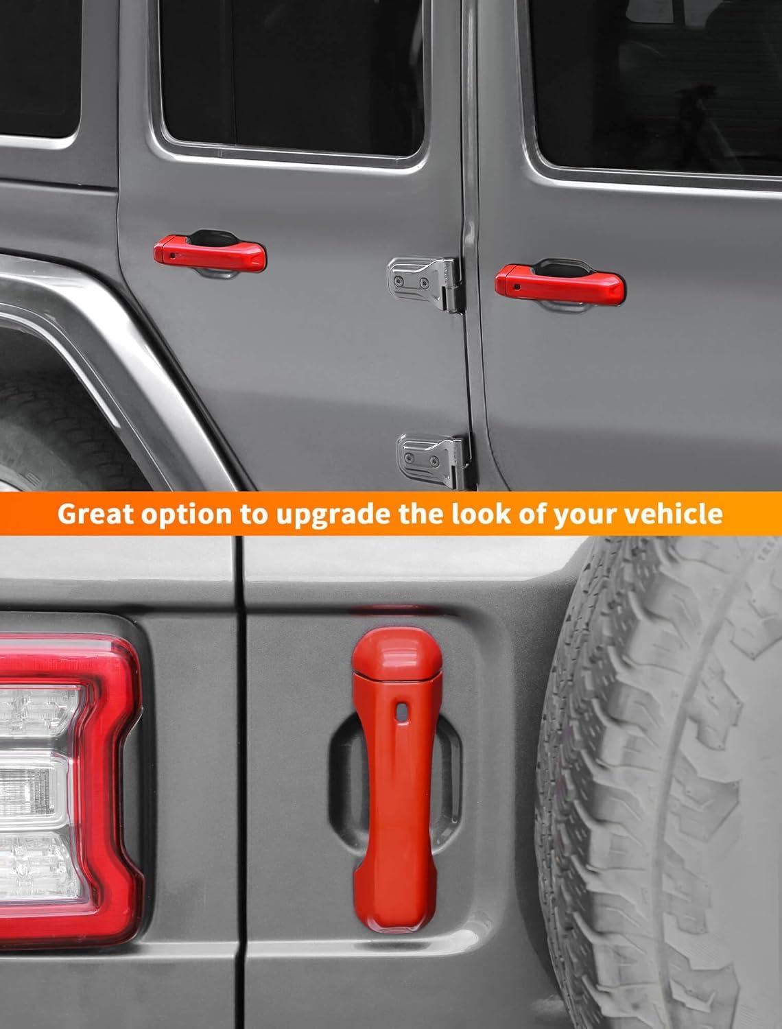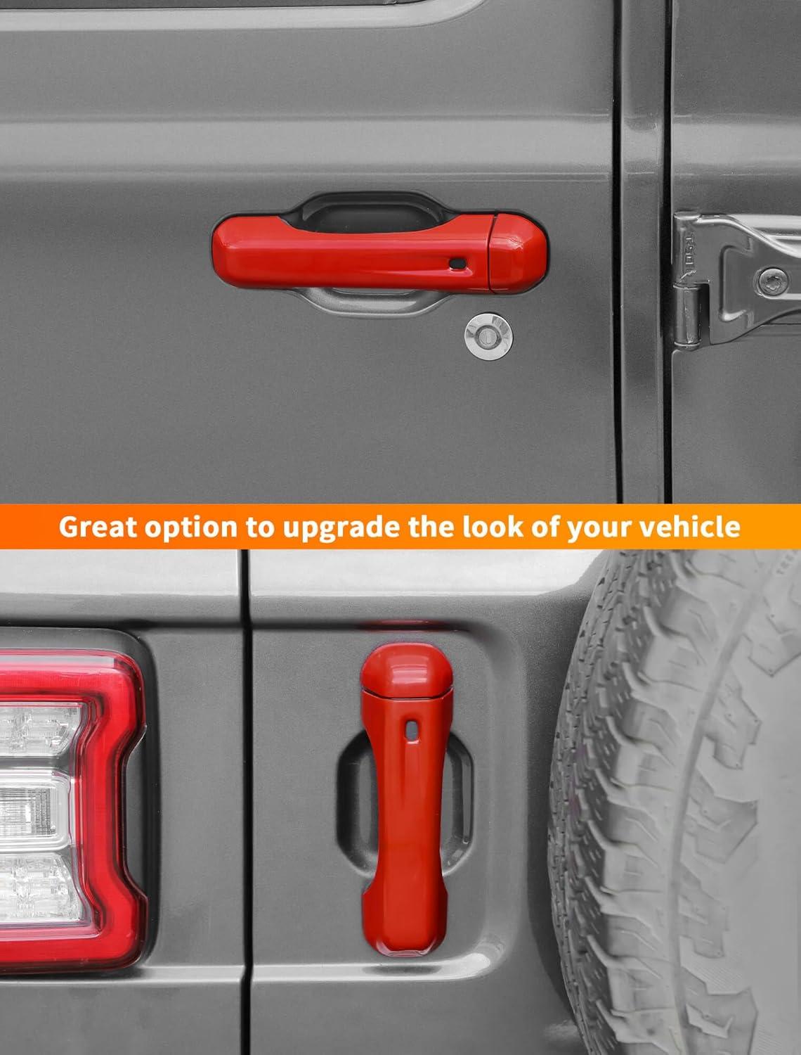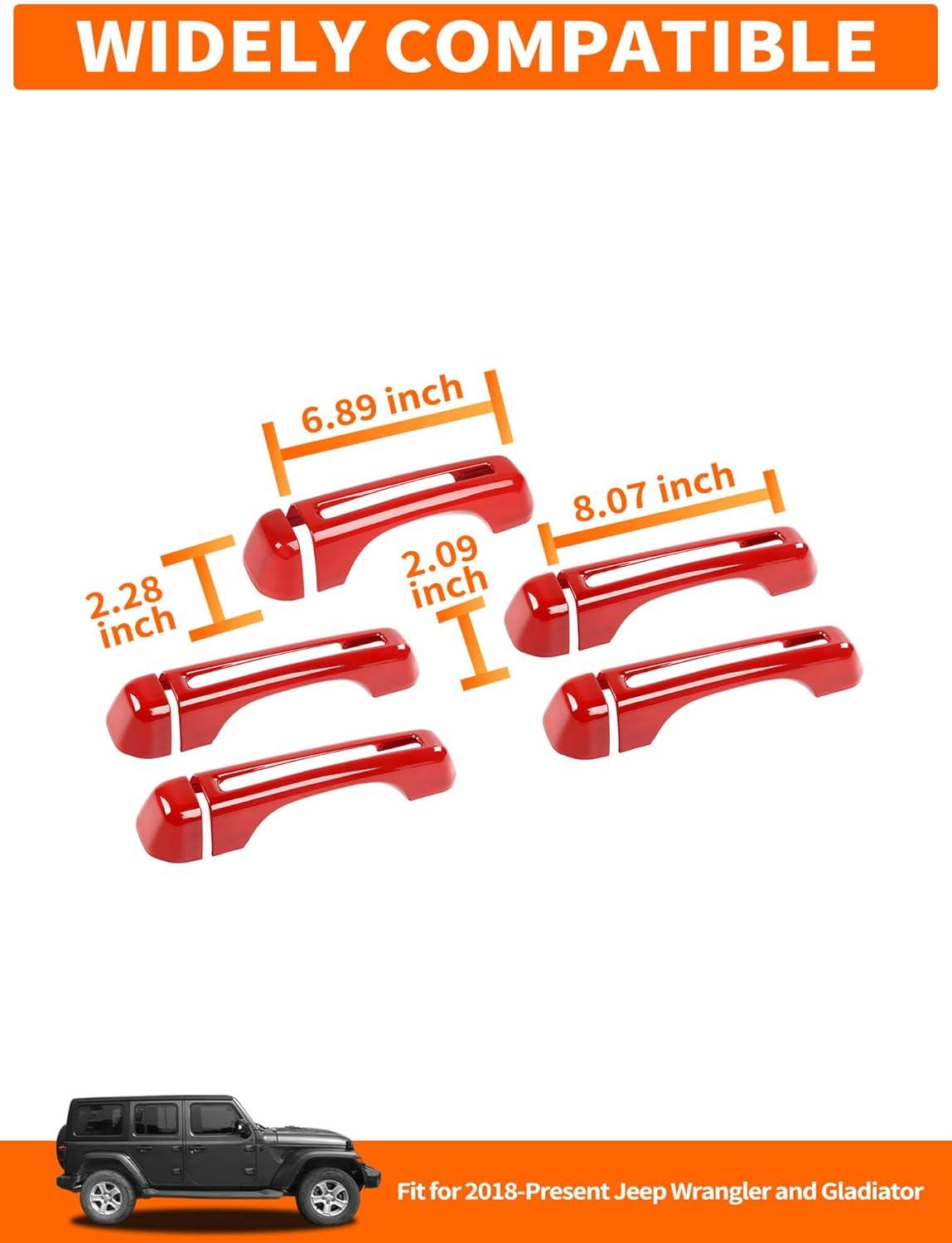 Savadicar 5-Piece Red Door Handle Cover Trim Set for Jeep Wrangler JL JLU 4xe & Gladiator JT 2018-Present – Exterior Handle Cap Accent Accessories(Red)