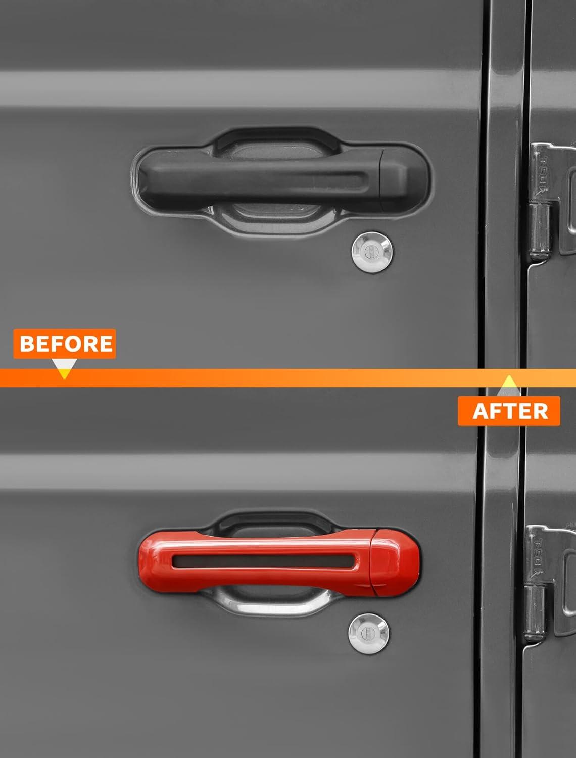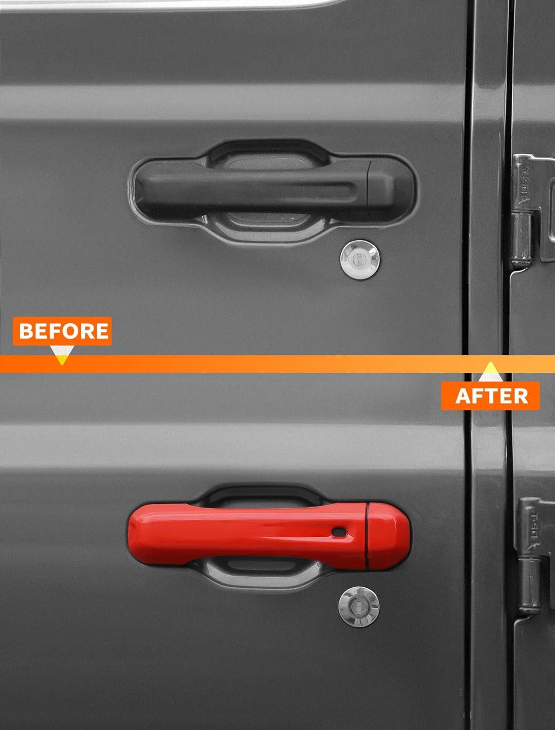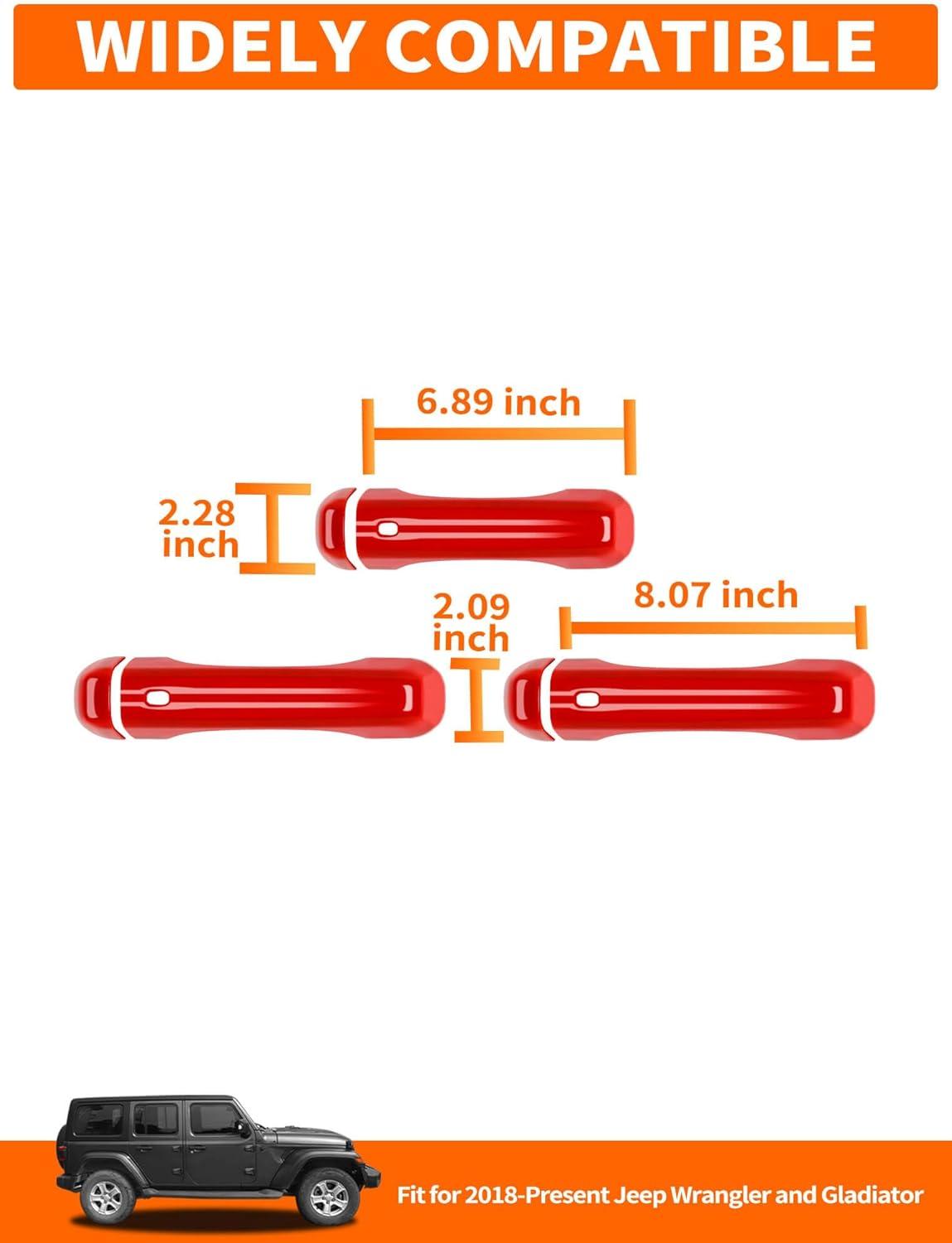Savadicar 5-Piece Red Door Handle Cover Trim Set for Jeep Wrangler JL JLU 4xe & Gladiator JT 2018-Present – Exterior Handle Cap Accent Accessories(Red)