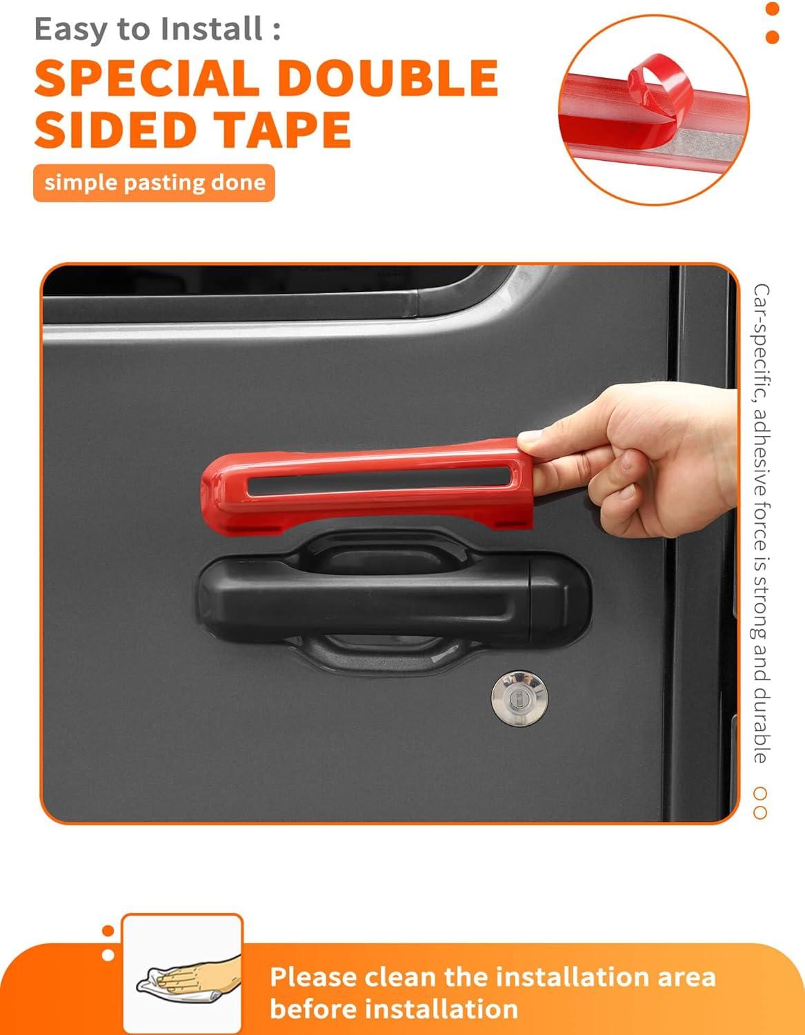 𝗗𝗨𝗥𝗔𝗕𝗟𝗘 𝗔𝗕𝗦 𝗪𝗜𝗧𝗛 𝗚𝗟𝗢𝗦𝗦𝗬 𝗙𝗜𝗡𝗜𝗦𝗛 – Crafted from premium ABS plastic with an optical-grade solidified gel coating, this door handle cover set features a gloss red finish that resists cracking, fading, and peeling—even under harsh weather conditions