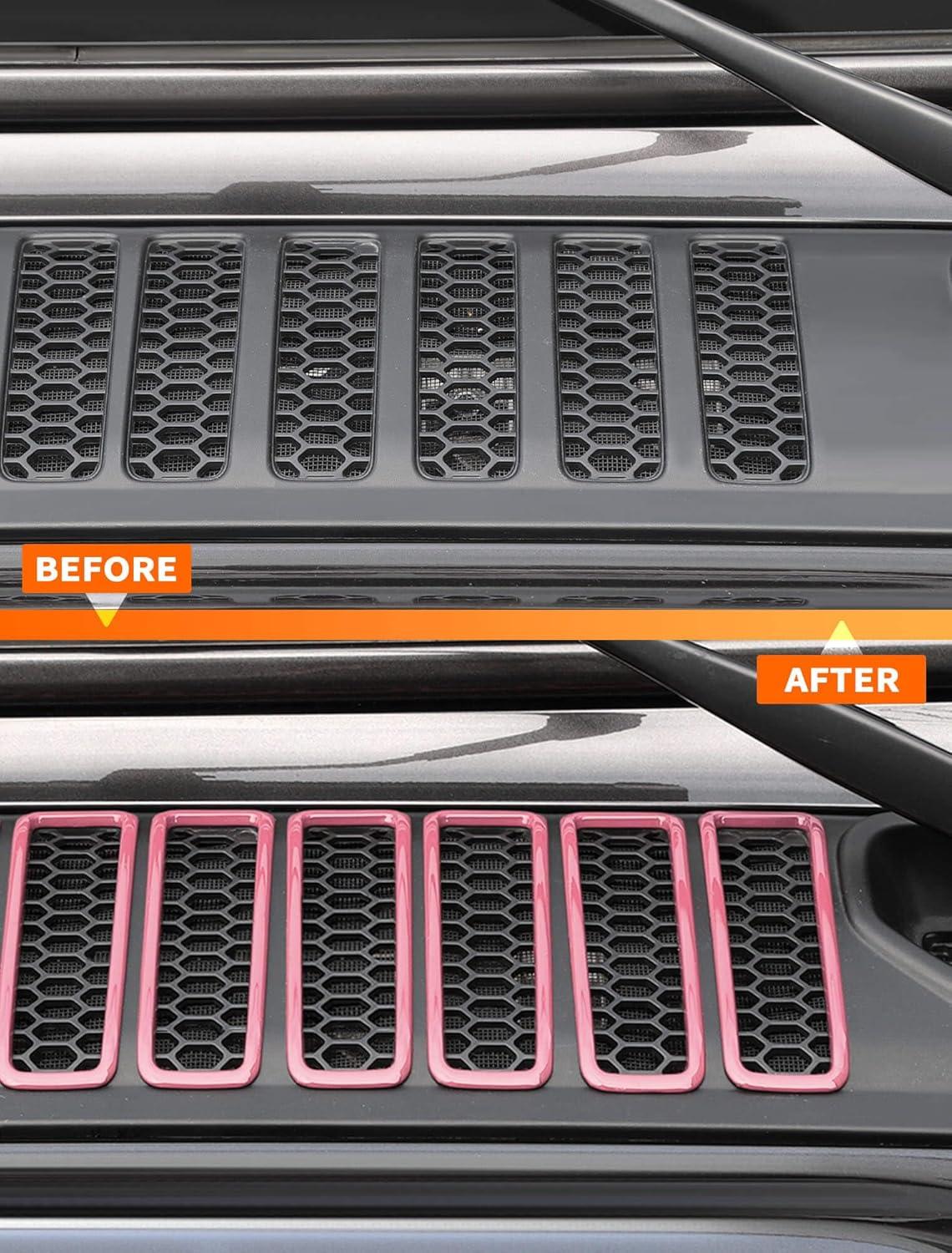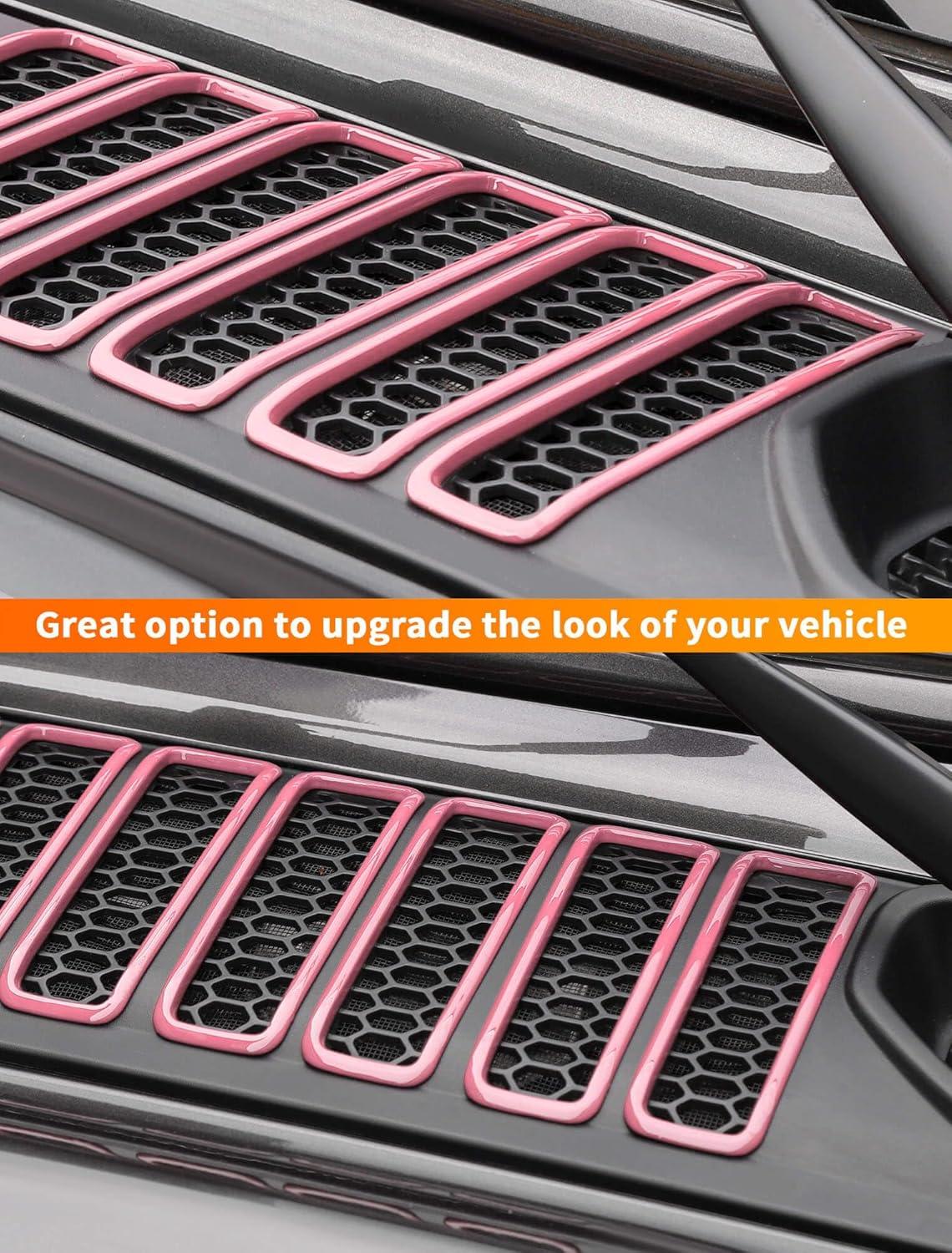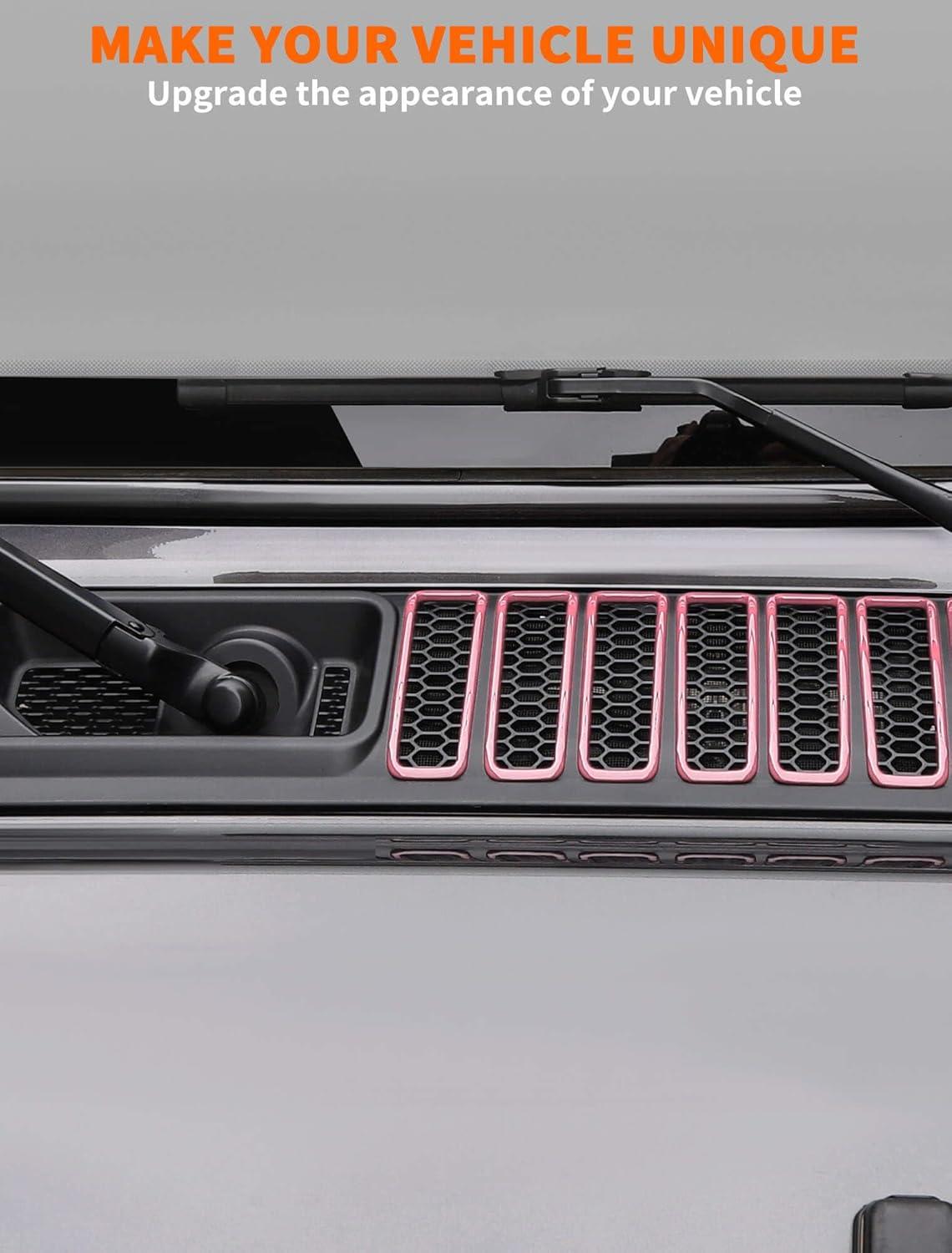 Savadicar 7-Piece Blue Cowl Drain Hole Trim for Jeep Wrangler JL JLU 4xe & Gladiator JT 2018-Present – Cowl Vent Bezel Accent, Exterior Styling Upgrade Accessories(Pink)