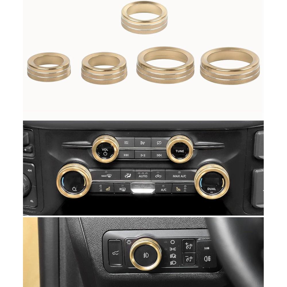 imageSavadicar 7Piece Custom Machined Aluminum Knob Trim Ring Set for FordF150 20212025  Headlight 4WD Trailer HVAC Radio Control Knob Covers  Interior Accessories Upgrade BlackGlod