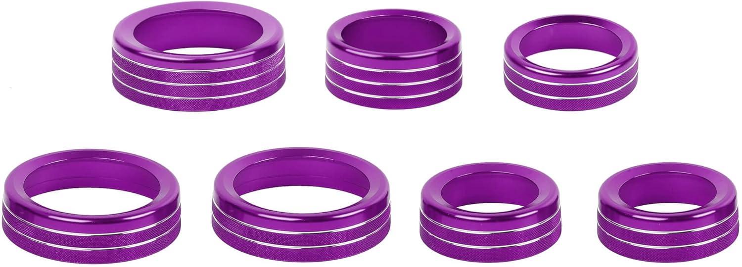 Savadicar 7-Piece Custom Machined Aluminum Knob Trim Ring Set for Ford F‑150 2021‑2025 – Headlight, 4WD, Trailer, HVAC, Radio Control Knob Covers – Interior Accessories Upgrade, Black(Purpe)