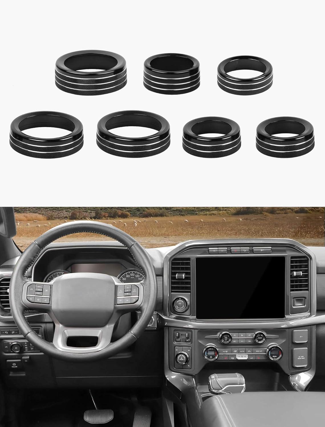 Savadicar 7-Piece Custom Machined Aluminum Knob Trim Ring Set for Ford F‑150 2021‑2025 – Headlight, 4WD, Trailer, HVAC, Radio Control Knob Covers – Interior Accessories Upgrade, Black(Black)