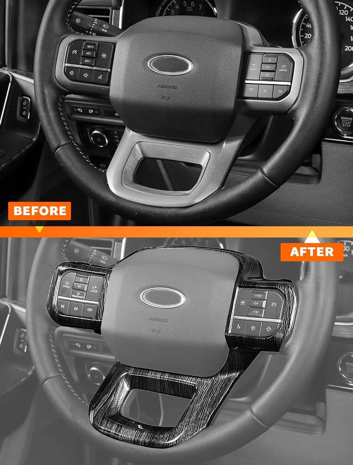 𝗪𝗜𝗗𝗘𝗟𝗬 𝗖𝗢𝗠𝗣𝗔𝗧𝗜𝗕𝗟𝗘 – Savadicar Steering Wheel Trim Cover is specially developed for 2021+ Ford F150, stylish and beautiful, making it the perfect choice for upgrading the appearance of your vehicle