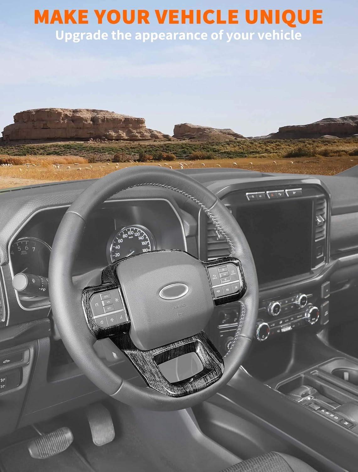 Savadicar Carbon Fiber Interior Accessories – Steering Wheel Trim Cover for Ford F150 (2021-present) – Premium Texture Interior Decor Upgrade Option, 1 PC(Black Wood Grain)