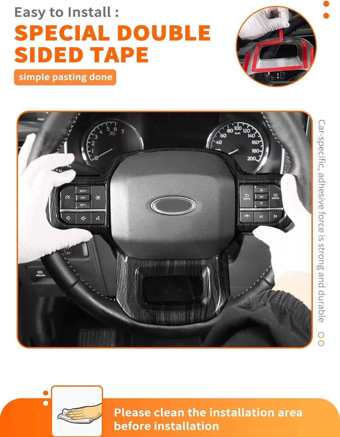 𝗣𝗟𝗨𝗦 𝗔𝗡𝗗 𝗣𝗟𝗔𝗬 – No messy glue or drilling is required for installation. These Trim Cover are designed to simply install into the F150 Steering Wheel with the supplied double-sided automotive bonding tape for a quick and secure installation