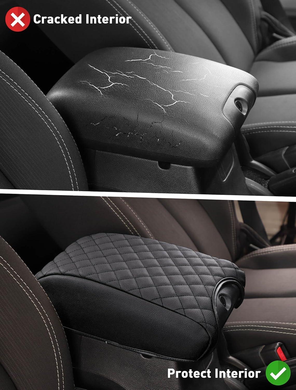 COMFORTABLE SKIN – Made with quality soft leather, This Jeep Center Console Cover can enhanced armrest comfort, reducing pressure on the elbows during driving, and elevating your driving experience.