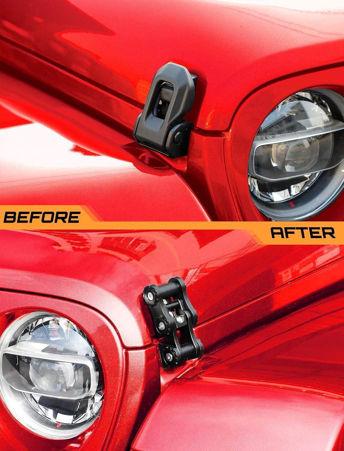 HIGH QUALITY — Each Savadicar wrangler hood latches is crafted from durable aluminum alloy for extreme strength without weighing you down. And effective prevent the obnoxious hood flutter commonly found with highway driving.