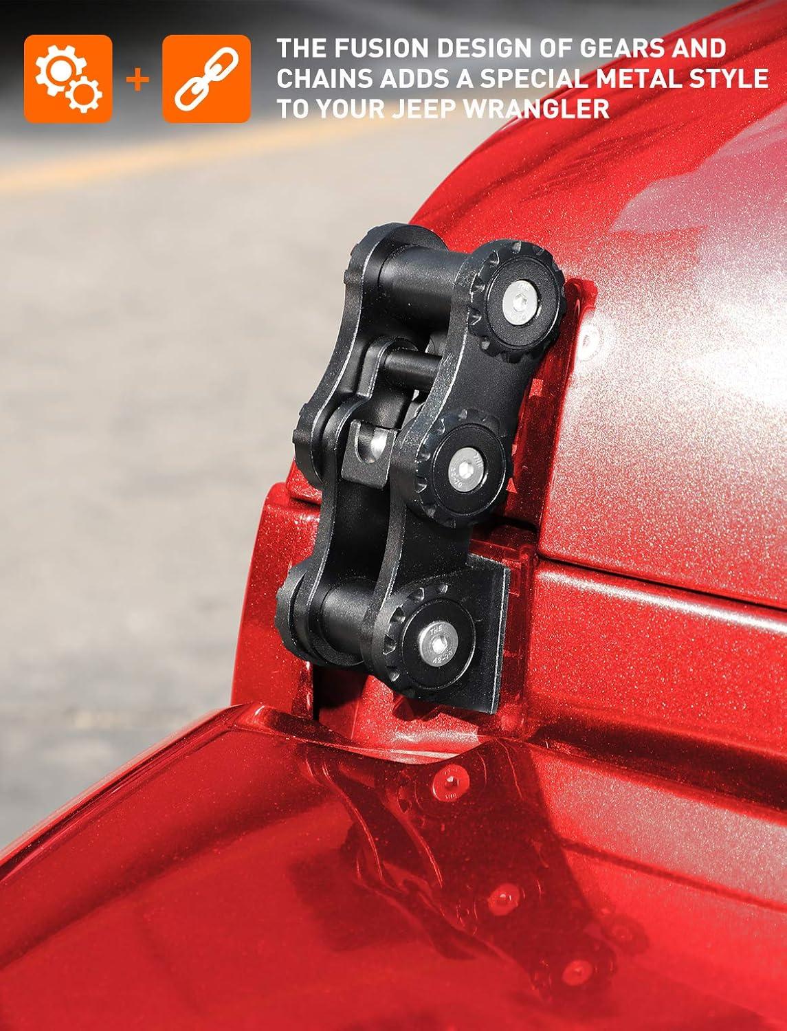 UNIQUE SHAPE AND APPEARANCE — Adopt the fusion design of gear and chain, Savadicar jeep hood latch will give your Jeep a more cool look and sporty style, and upgrade the look of your jeep hood rig.