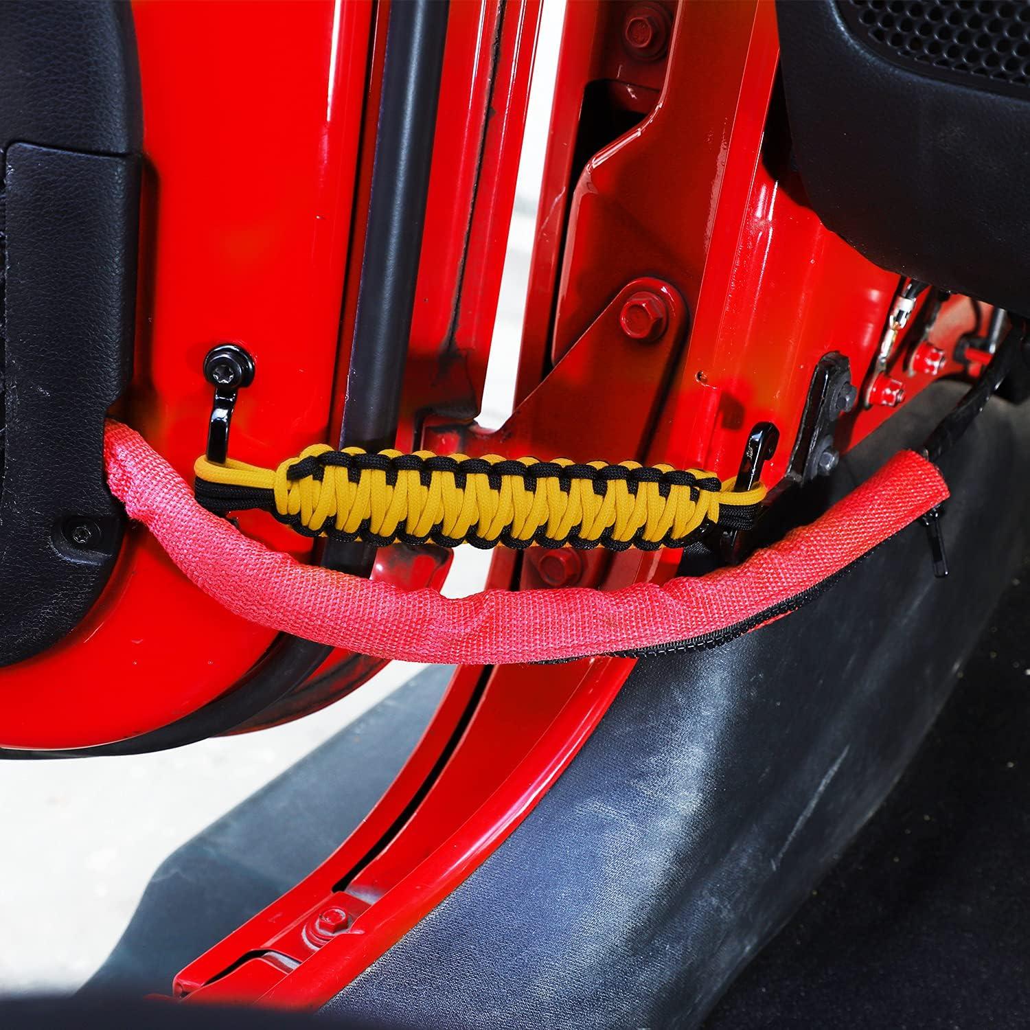 🔧 HIGH QUALITY MATERIAL — Made of high quality 7 triple strands paracord, Each rope can bear 550lb. But the interlocking weaves can enhance the bearing capacity of the paracord rope( Up to 1000 of pounds ), so that make this jeep wrangler door strap more tough and durable.