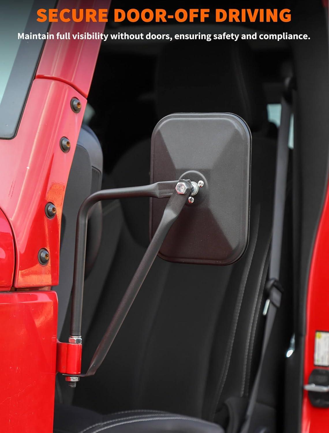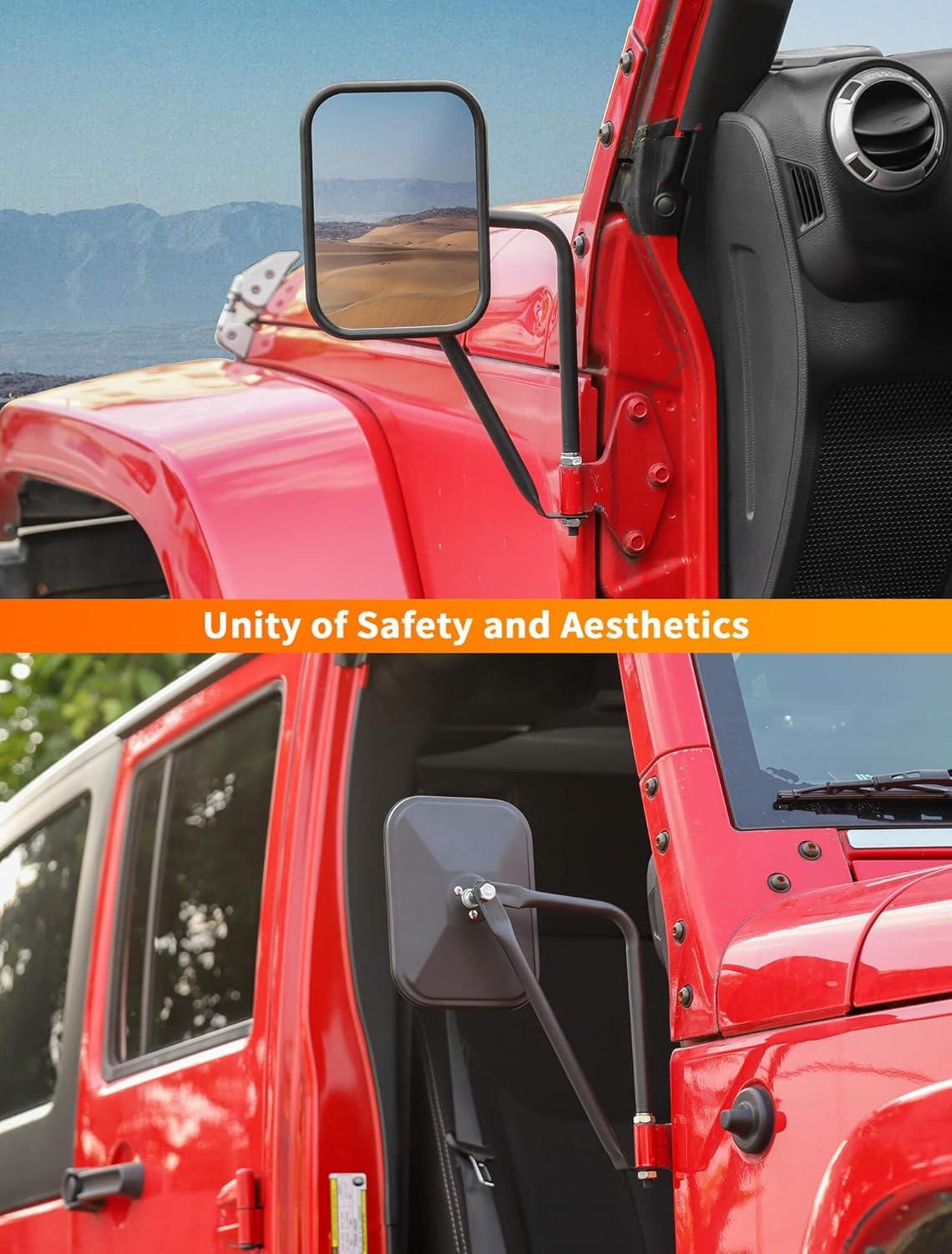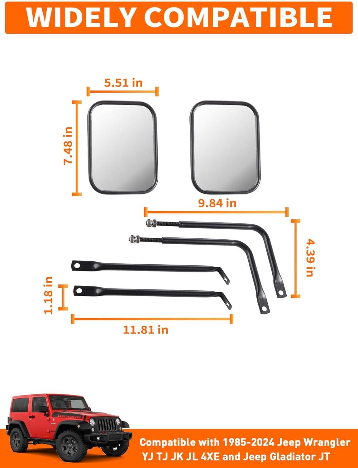 𝗪𝗜𝗗𝗘 𝗔𝗣𝗣𝗟𝗜𝗖𝗔𝗧𝗜𝗢𝗡 — Suitable for all Jeep Wrangler TJ JK JL 4xe and Jeep Gladiator models (1985-2024). Our support pole diameter is 9.8mm, fitting most models after 1995. Whether it's an older model or a newer one, our jeep wrangler door off mirror are easy to install, ensuring the best view.