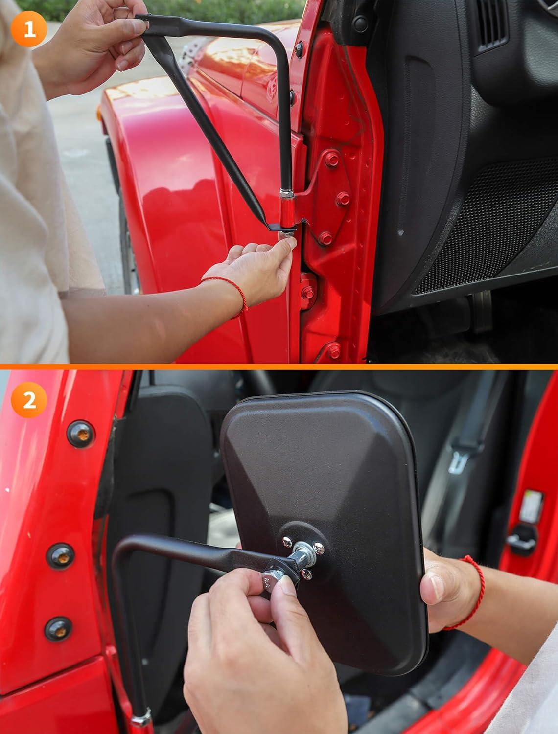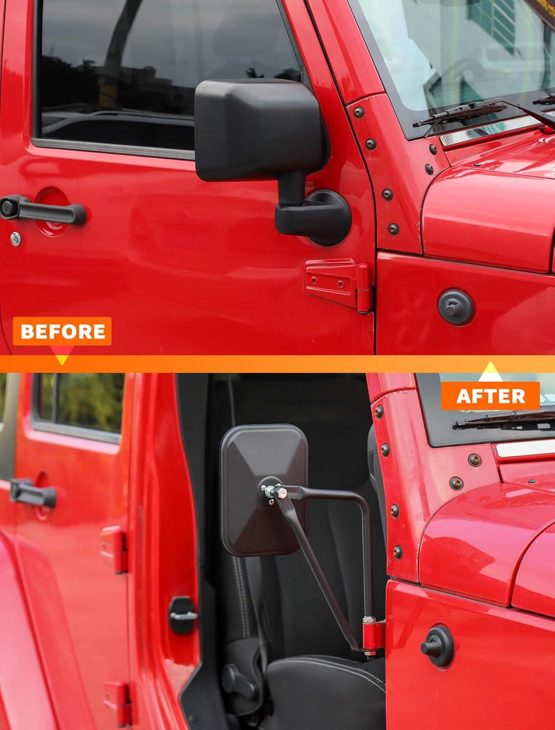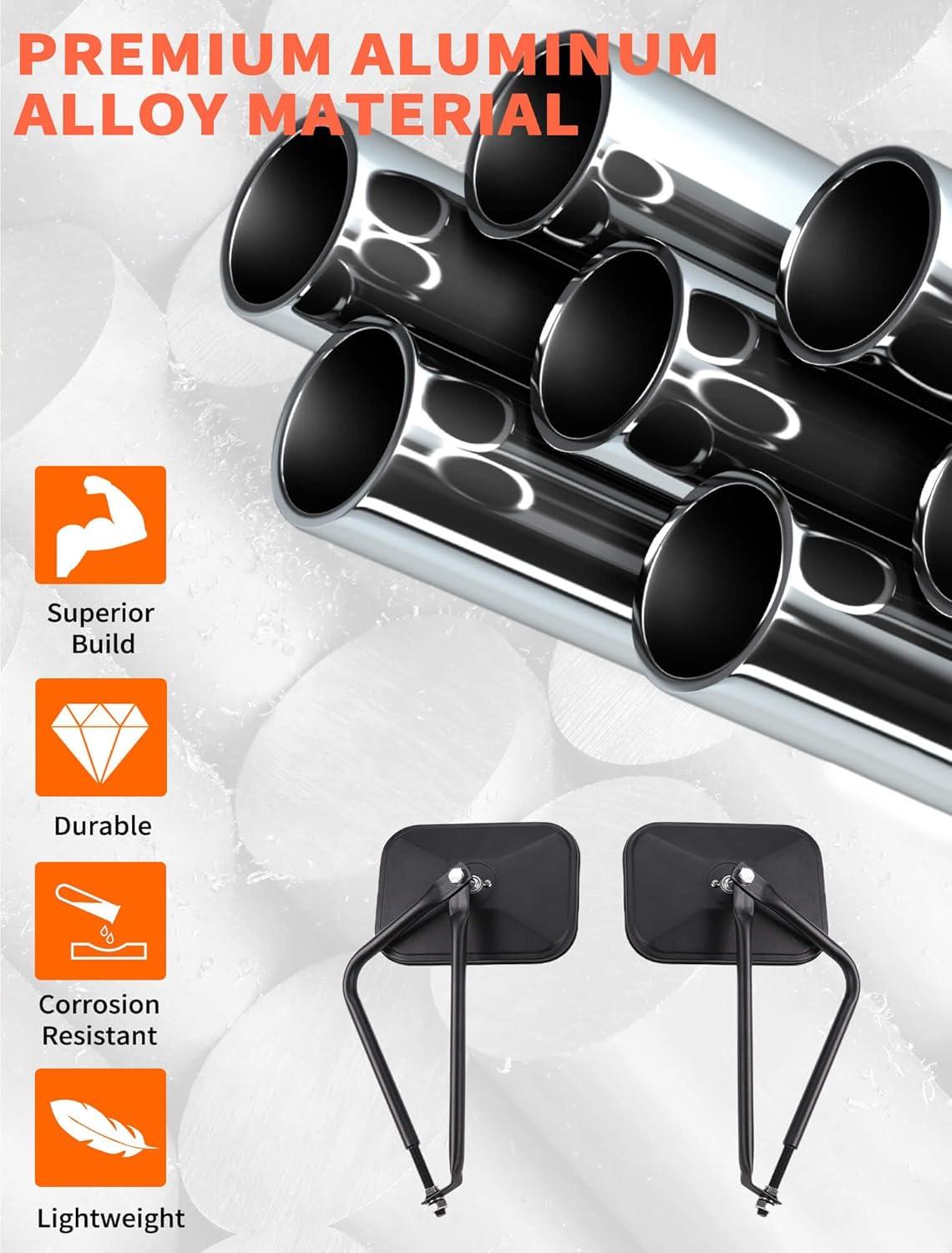 𝗪𝗜𝗗𝗘 𝗔𝗣𝗣𝗟𝗜𝗖𝗔𝗧𝗜𝗢𝗡 — Suitable for all Jeep Wrangler TJ JK JL 4xe and Jeep Gladiator models (1985-2024). Our support pole diameter is 9.8mm, fitting most models after 1995. Whether it's an older model or a newer one, our jeep wrangler door off mirror are easy to install, ensuring the best view.