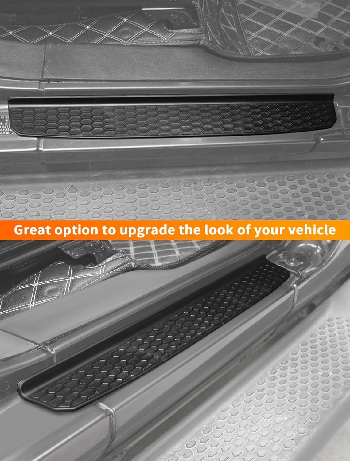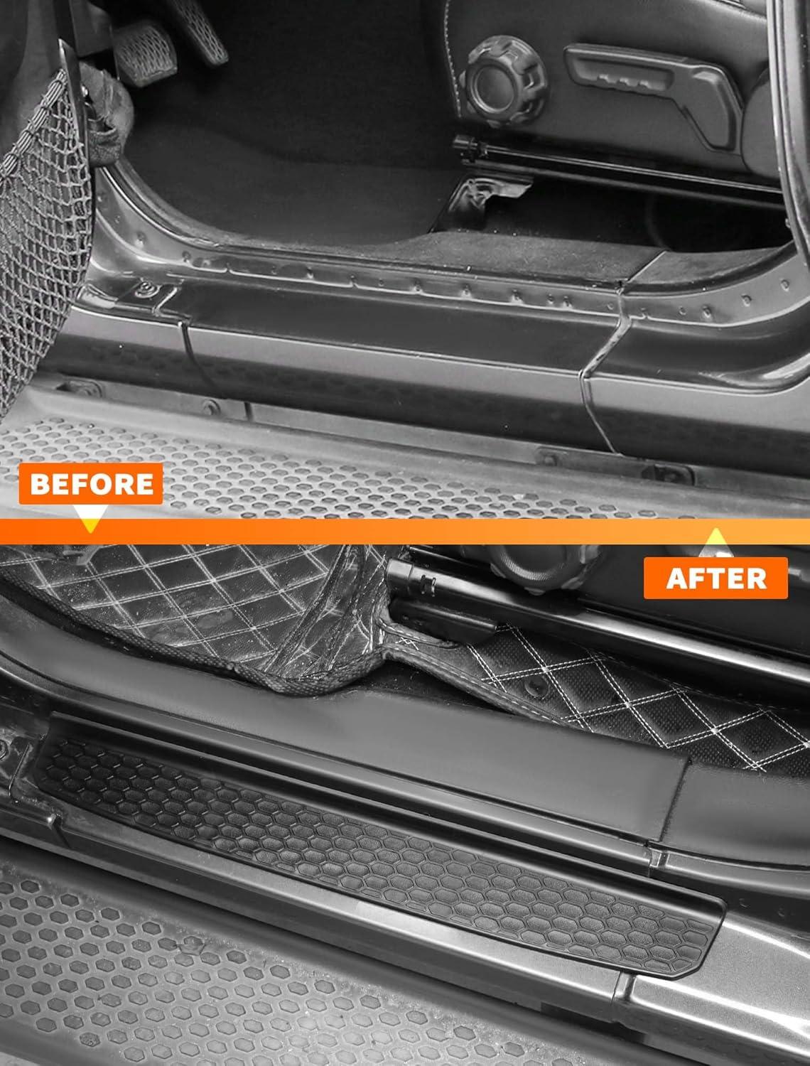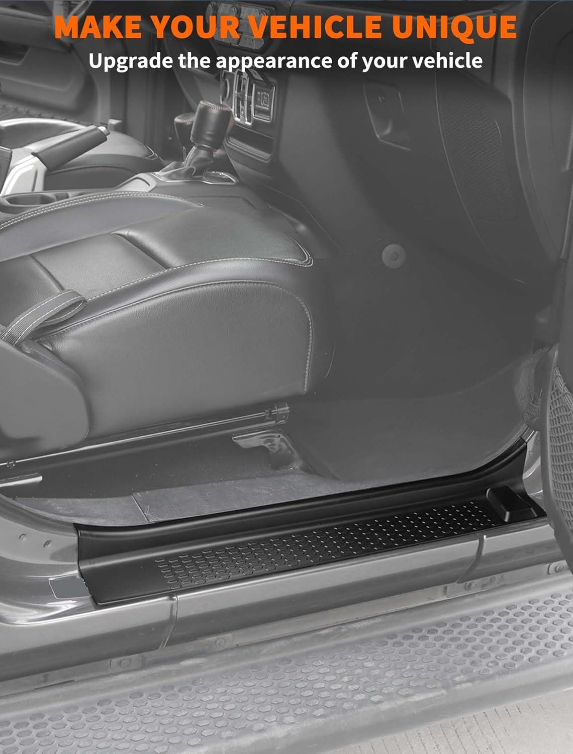 𝗪𝗜𝗗𝗘𝗟𝗬 𝗖𝗢𝗠𝗣𝗔𝗧𝗜𝗕𝗟𝗘 – The Savadicar Door Sill Guard Set is specially designed for 2018–Present Jeep Wrangler JL, JLU, 4xe, and Gladiator JT models, helping protect your door sills from scratches and scuffs while maintaining a clean, finished look with a subtle touch of style