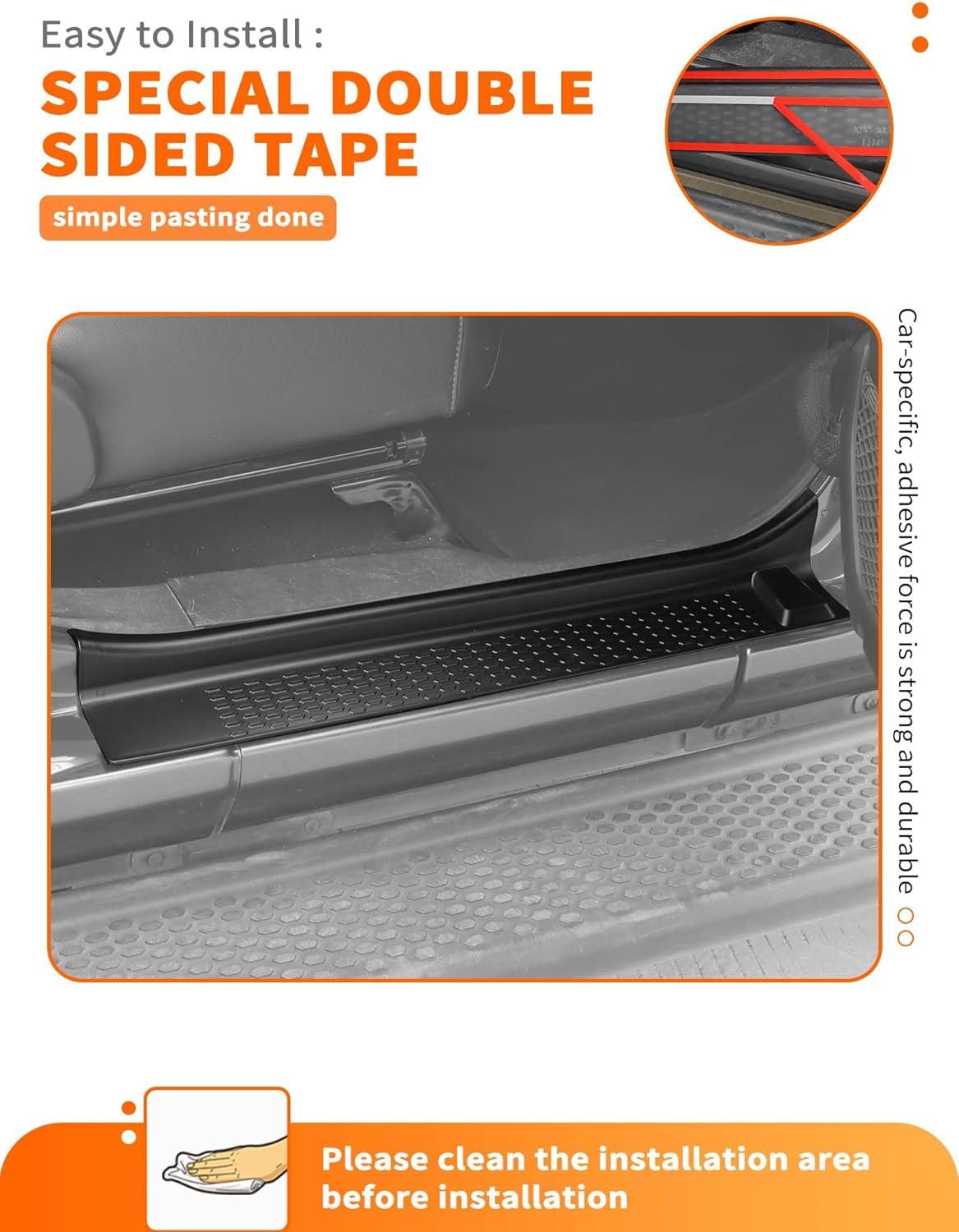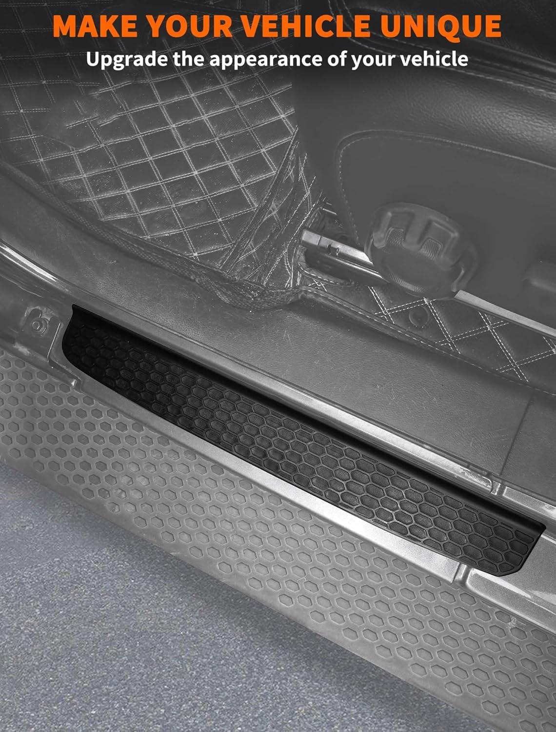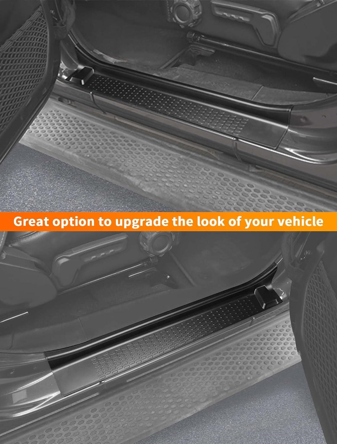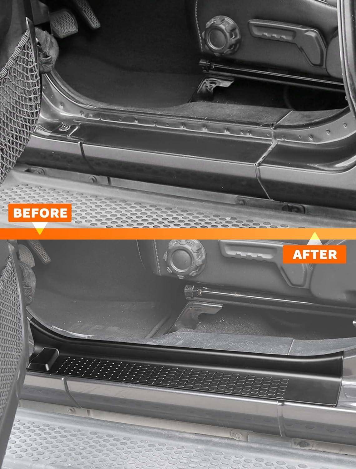 𝗪𝗜𝗗𝗘𝗟𝗬 𝗖𝗢𝗠𝗣𝗔𝗧𝗜𝗕𝗟𝗘 – The Savadicar Door Sill Guard Set is specially designed for 2018–Present Jeep Wrangler JL, JLU, 4xe, and Gladiator JT models, helping protect your door sills from scratches and scuffs while maintaining a clean, finished look with a subtle touch of style