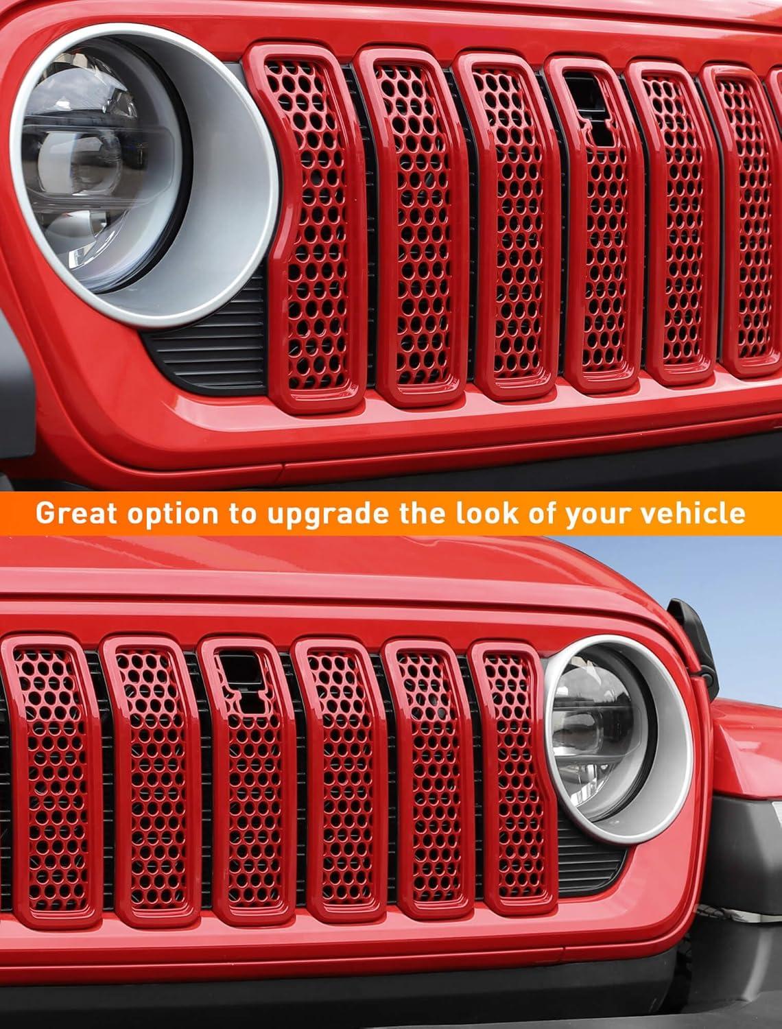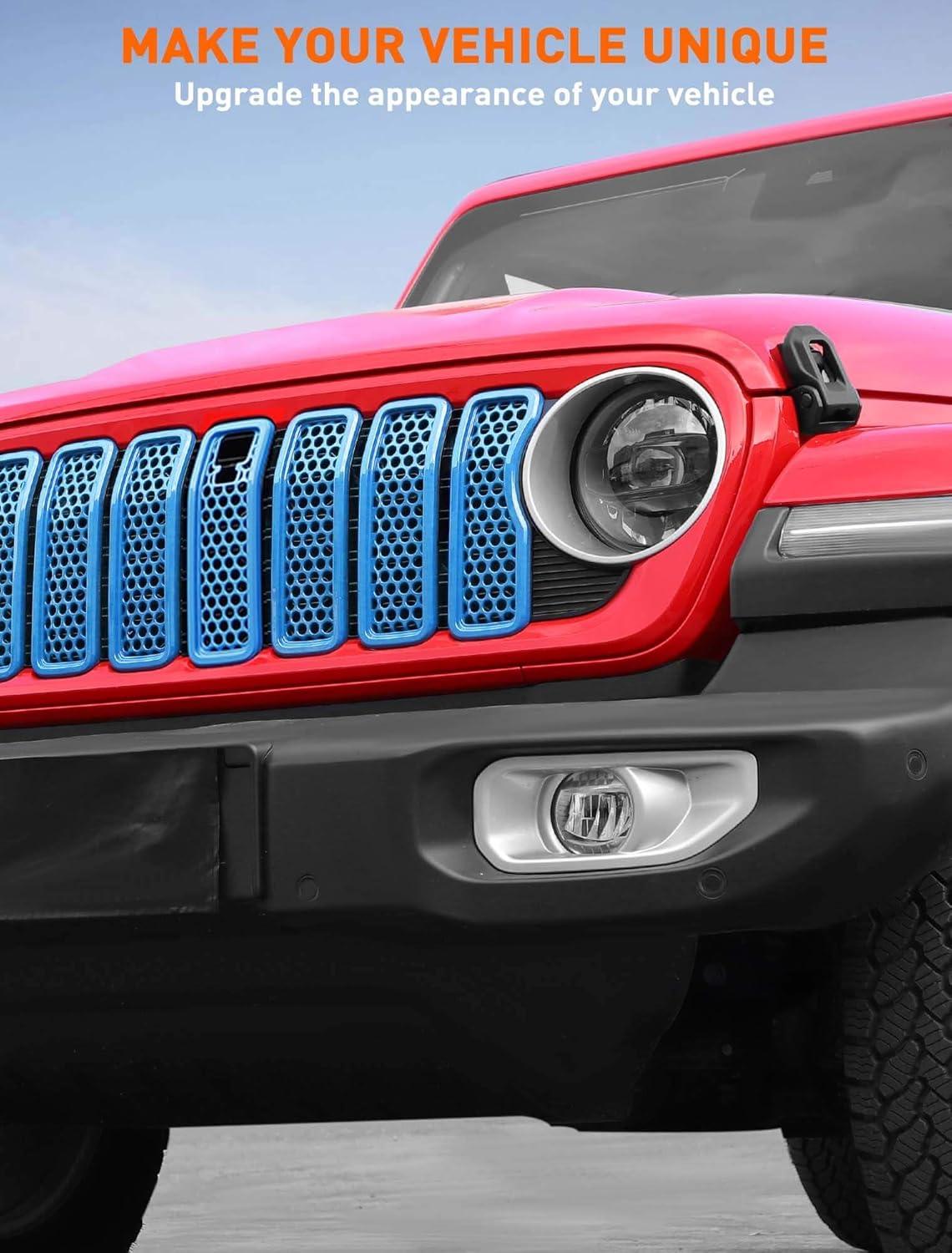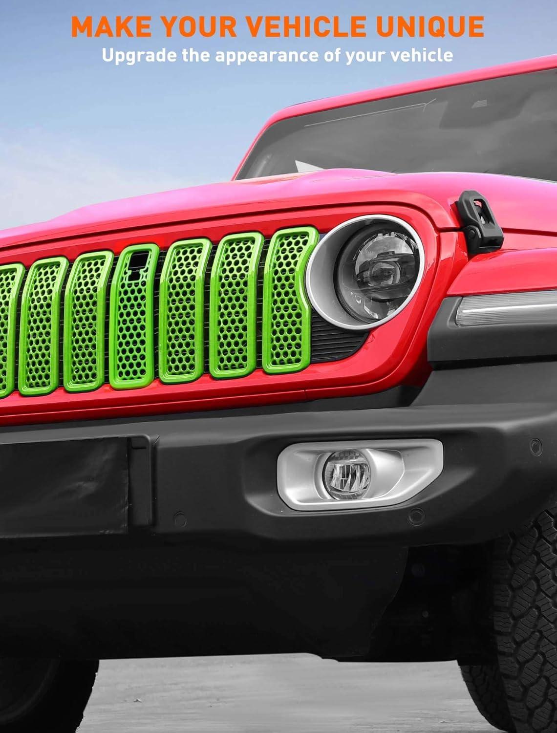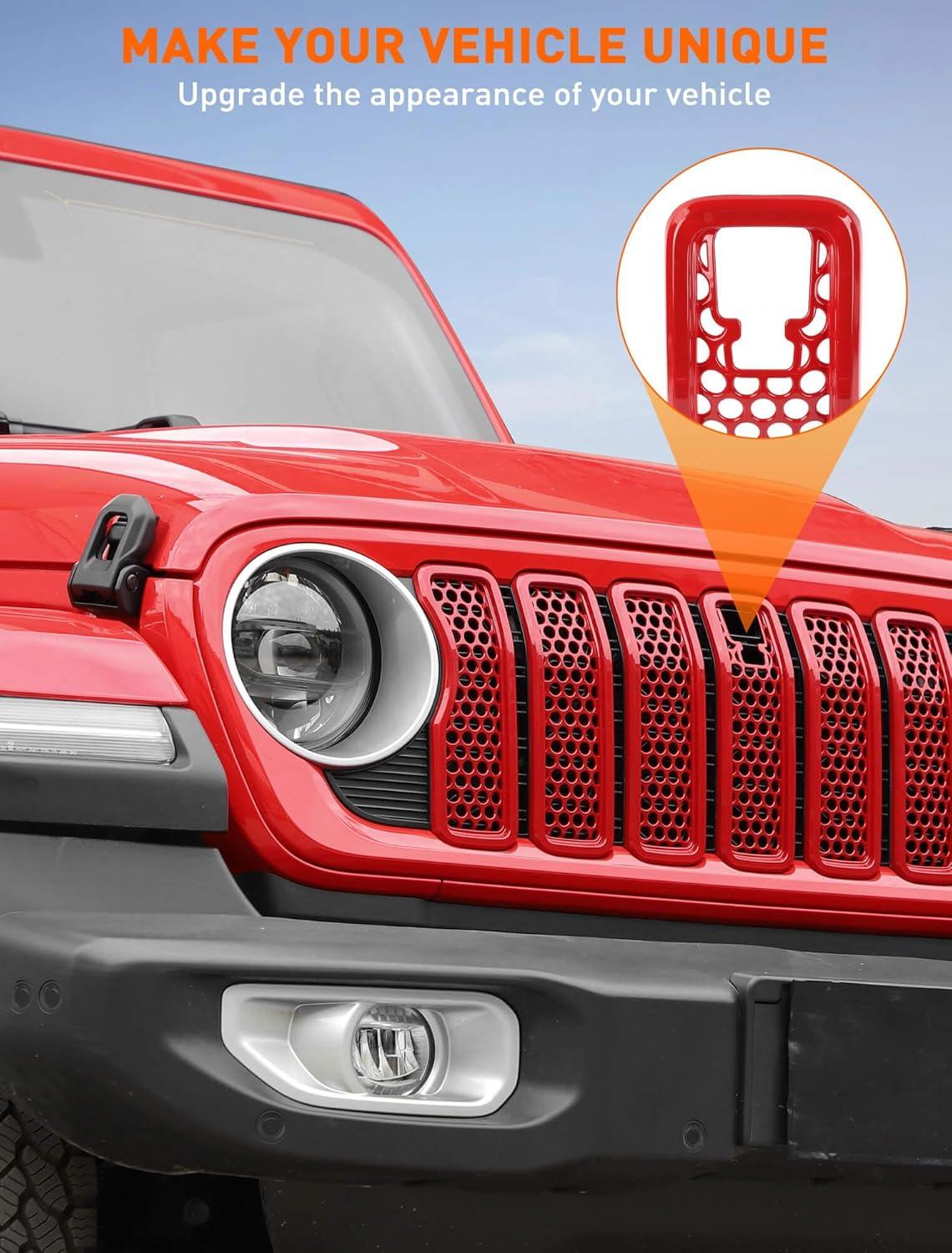 Savadicar Front Grill Inserts for 2024+ Jeep Wrangler JL JLU 4XE & Gladiator JT – Elevate Your Wrangler’s Aesthetics with Front Grille Cover Guard, Exterior Trim Accessories, 7 PCs, Orange(Mesh)