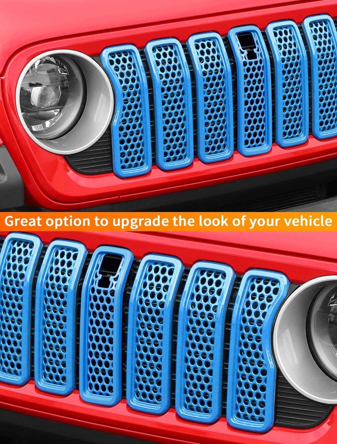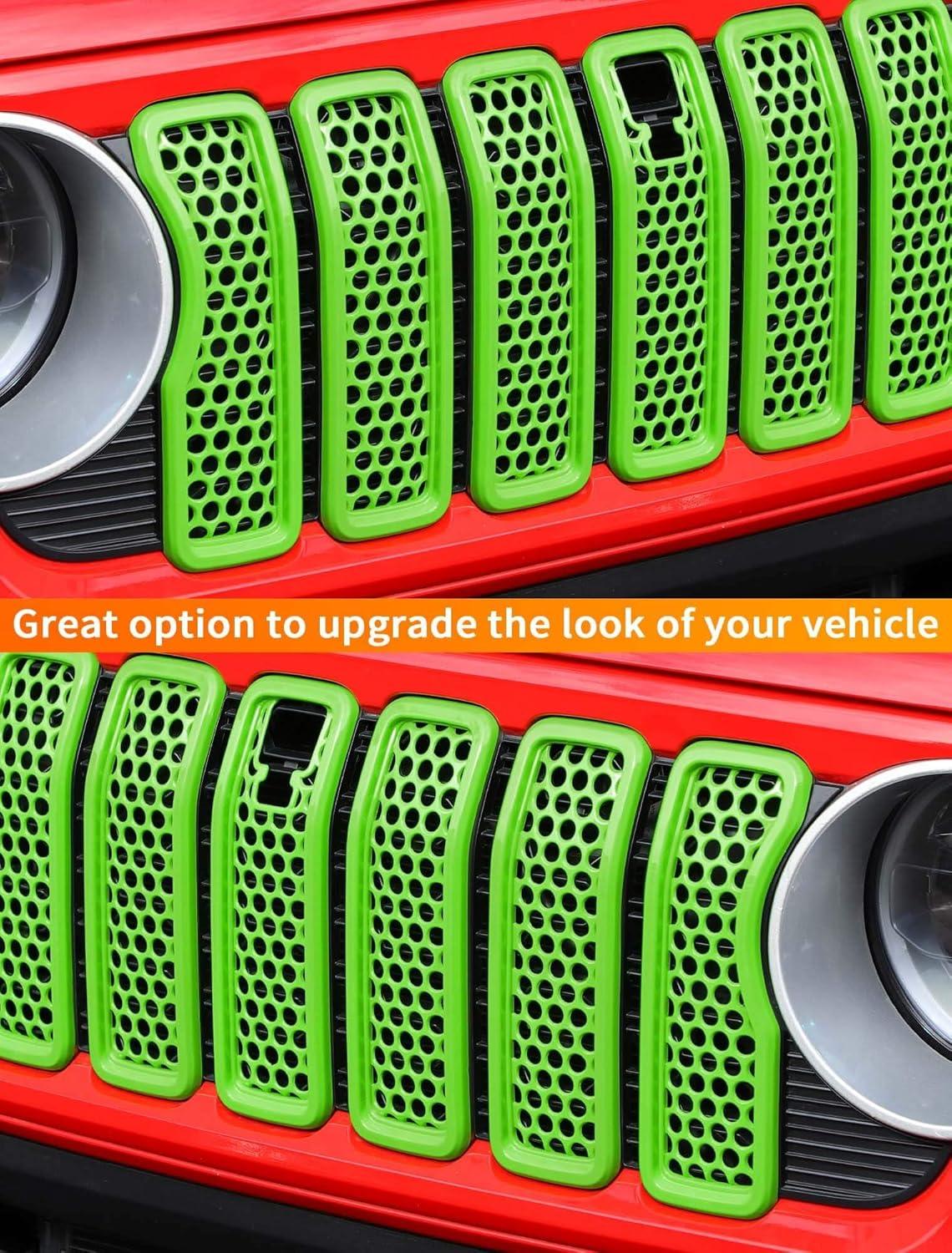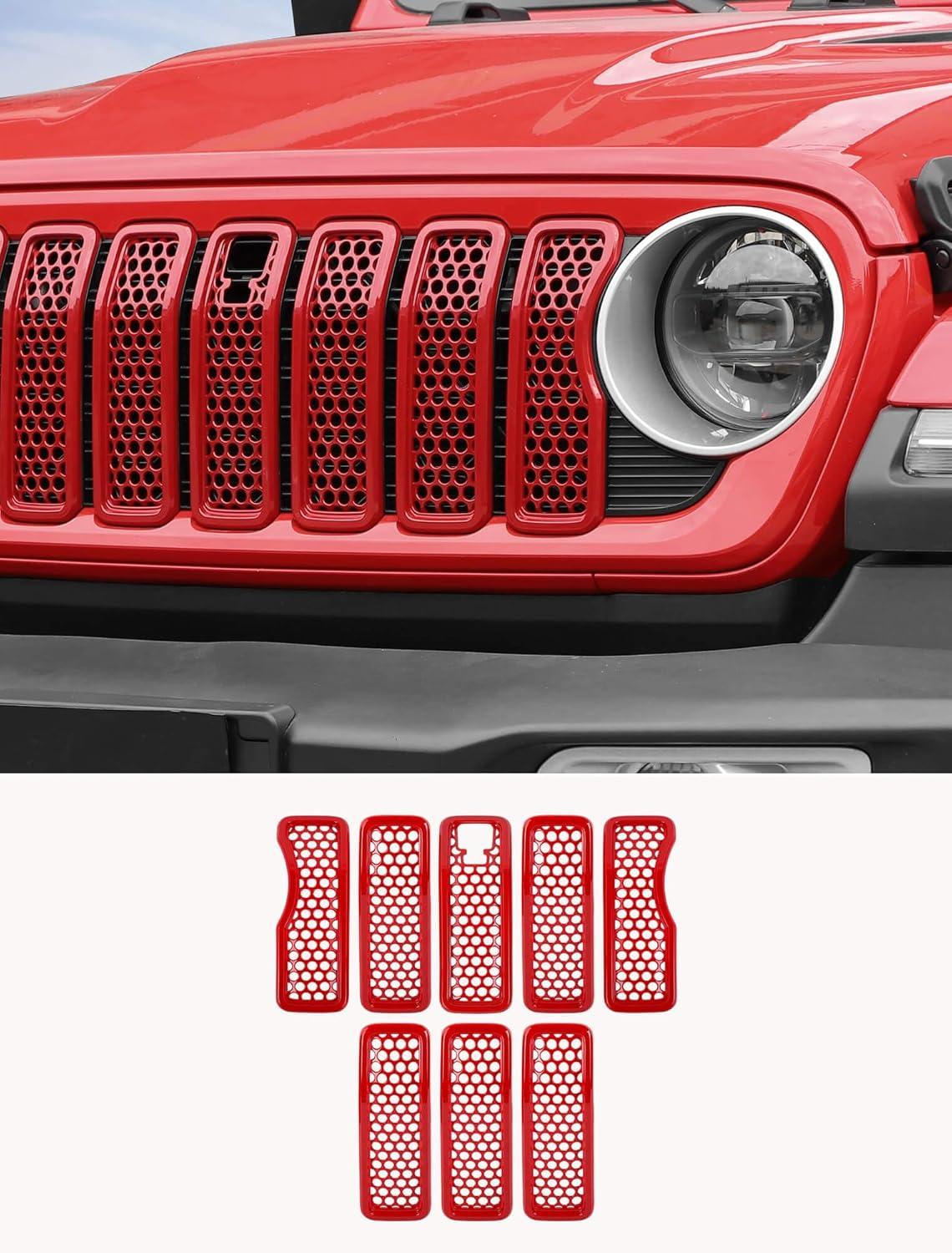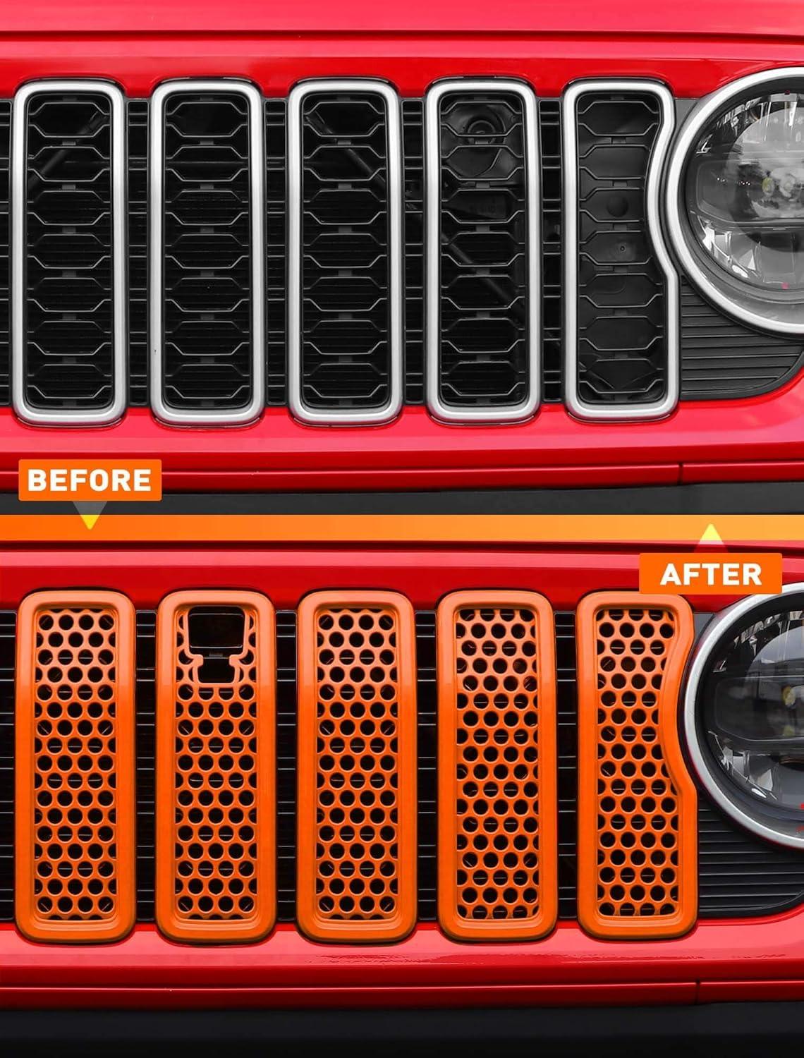 Savadicar Front Grill Inserts for 2024+ Jeep Wrangler JL JLU 4XE & Gladiator JT – Elevate Your Wrangler’s Aesthetics with Front Grille Cover Guard, Exterior Trim Accessories, 7 PCs, Orange(Mesh)