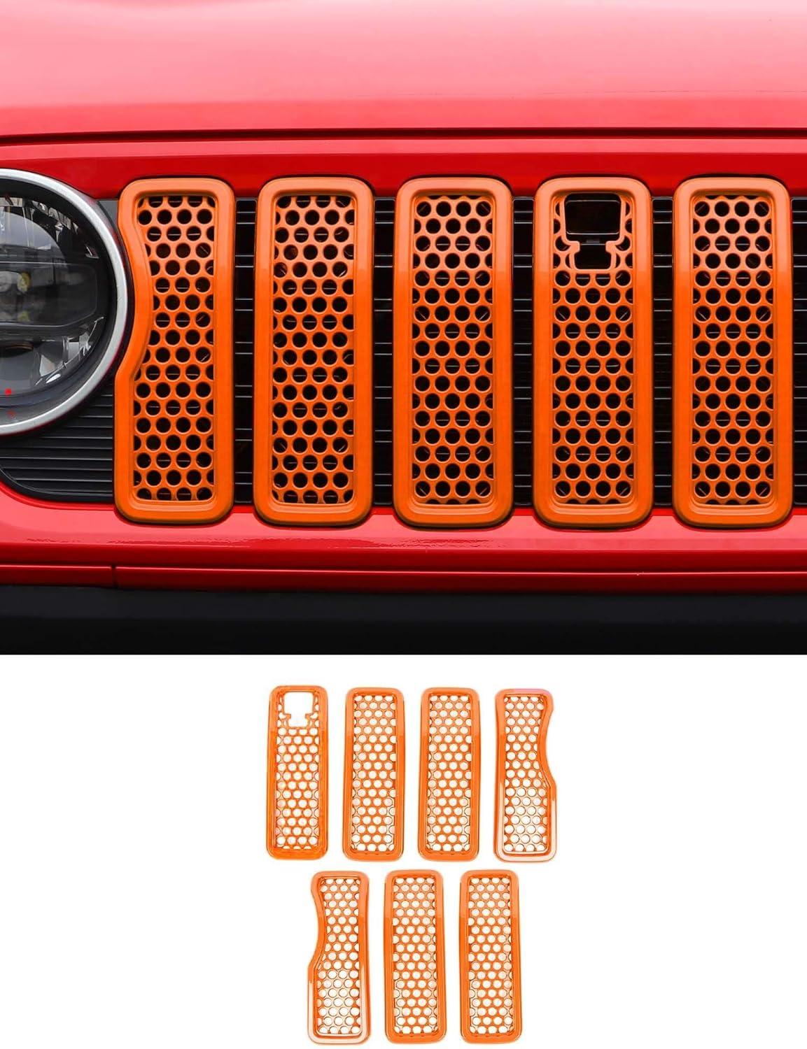 imageSavadicar Front Grill Inserts for 2024 Jeep Wrangler JL JLU 4XE amp Gladiator JT  Elevate Your Wranglers Aesthetics with Front Grille Cover Guard Exterior Trim Accessories 7 PCs OrangeMesh