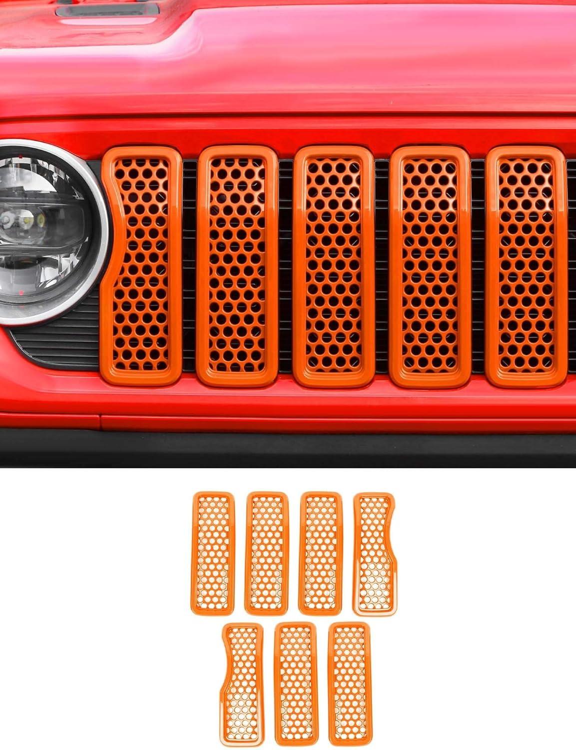 imageSavadicar Front Grill Inserts for 2024 Jeep Wrangler JL JLU 4XE amp Gladiator JT  Elevate Your Wranglers Aesthetics with Front Grille Cover Guard Exterior Trim Accessories 7 PCs OrangeMesh