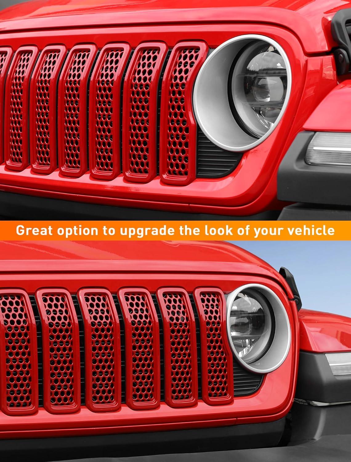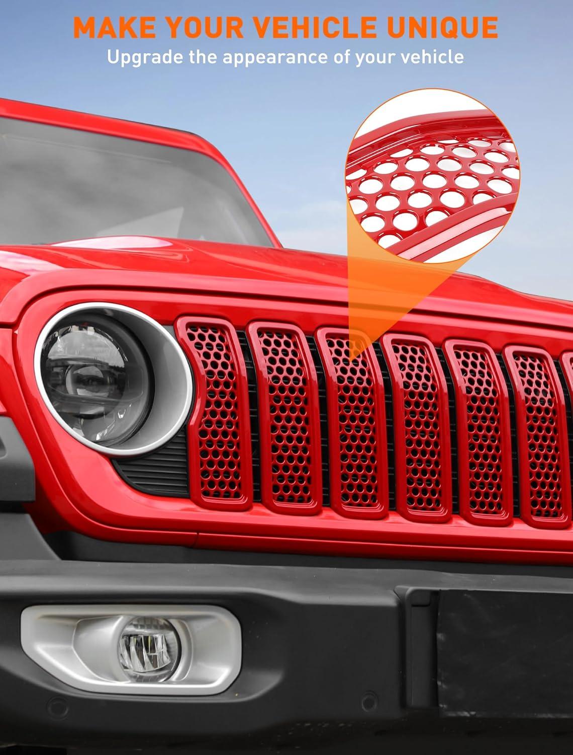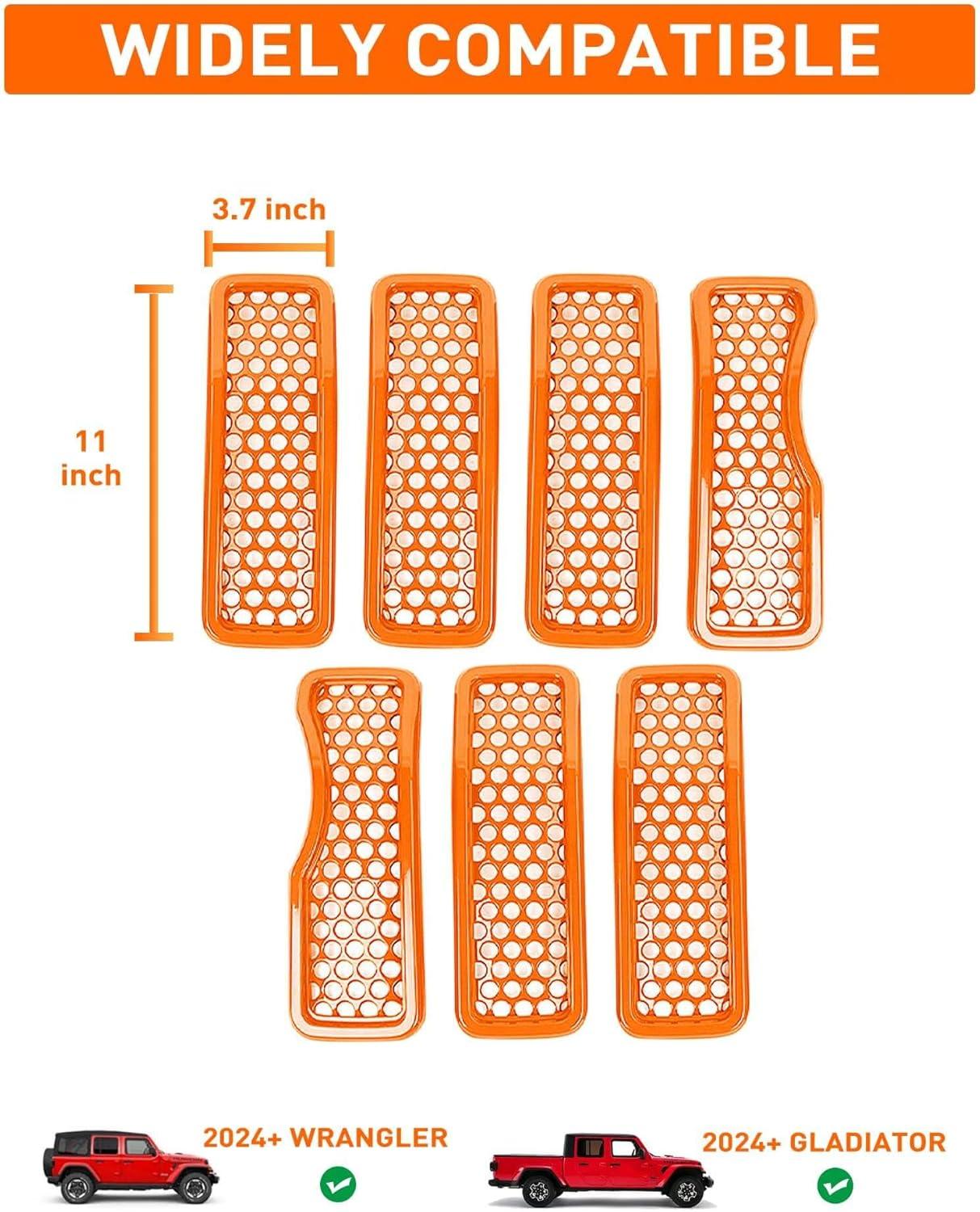Savadicar Front Grill Inserts for 2024+ Jeep Wrangler JL JLU 4XE & Gladiator JT - Elevate Your Wrangler's Aesthetics with Front Grille Cover Guard, Exterior Trim Accessories, 7 PCs, Orange(Mesh)