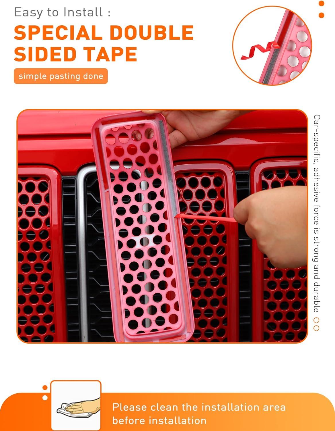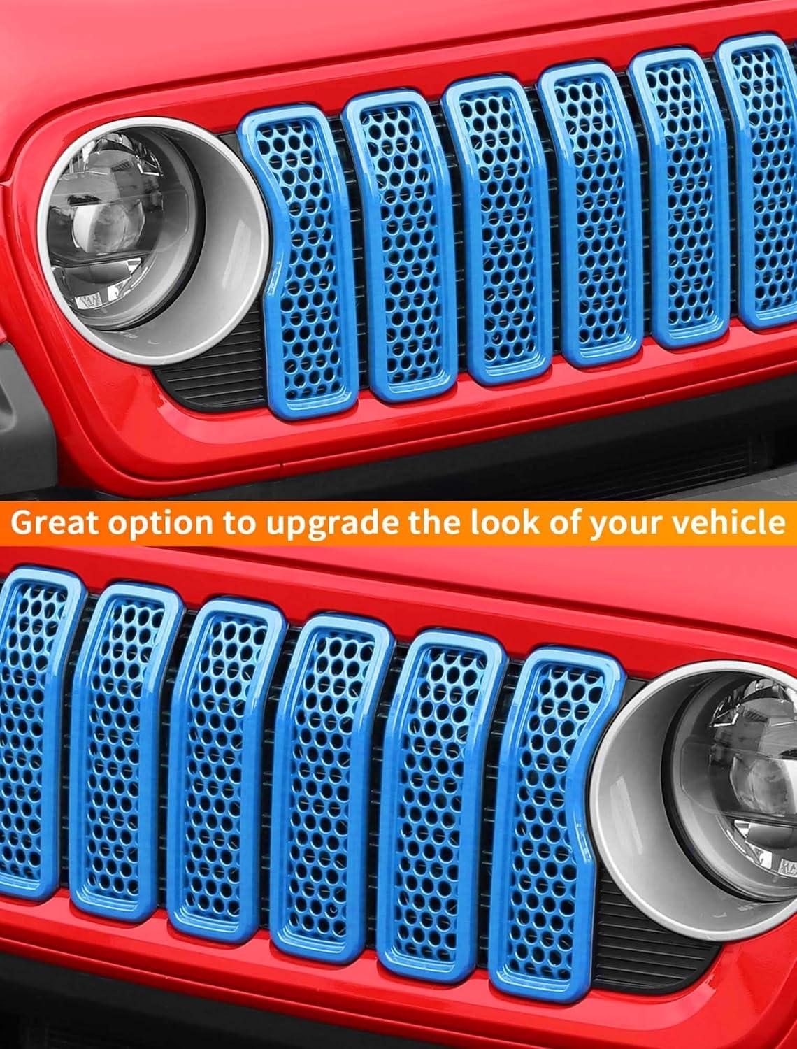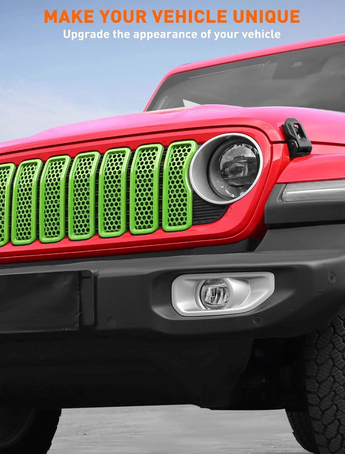 Savadicar Front Grill Inserts for 2024+ Jeep Wrangler JL JLU 4XE & Gladiator JT – Elevate Your Wrangler’s Aesthetics with Front Grille Cover Guard, Exterior Trim Accessories, 7 PCs, Orange(Mesh)