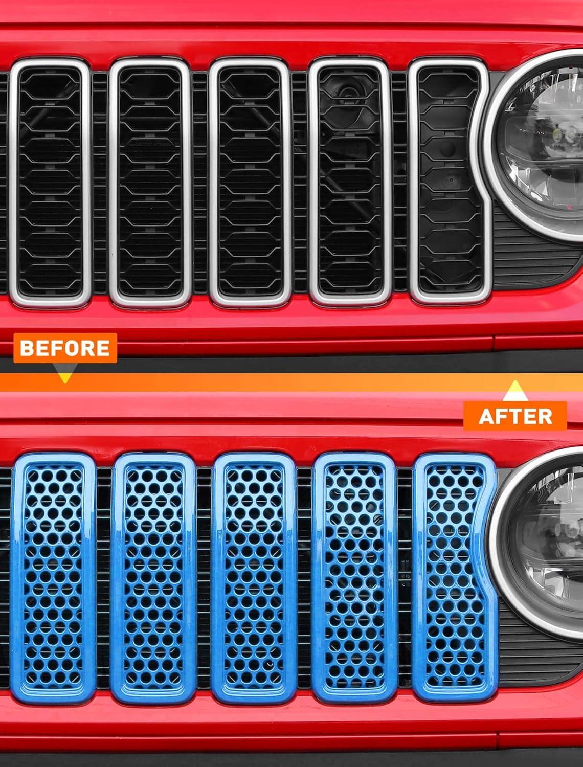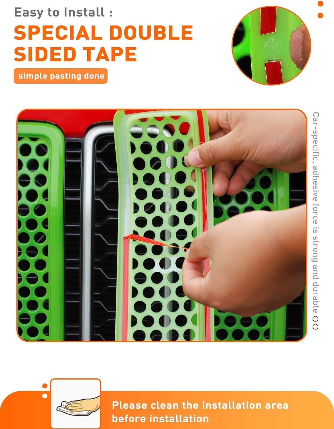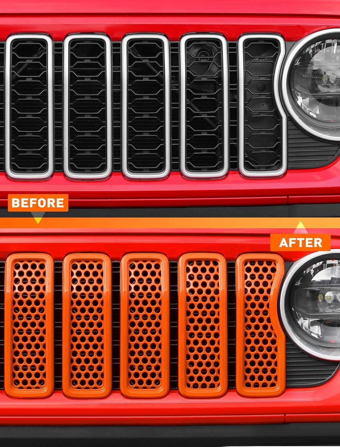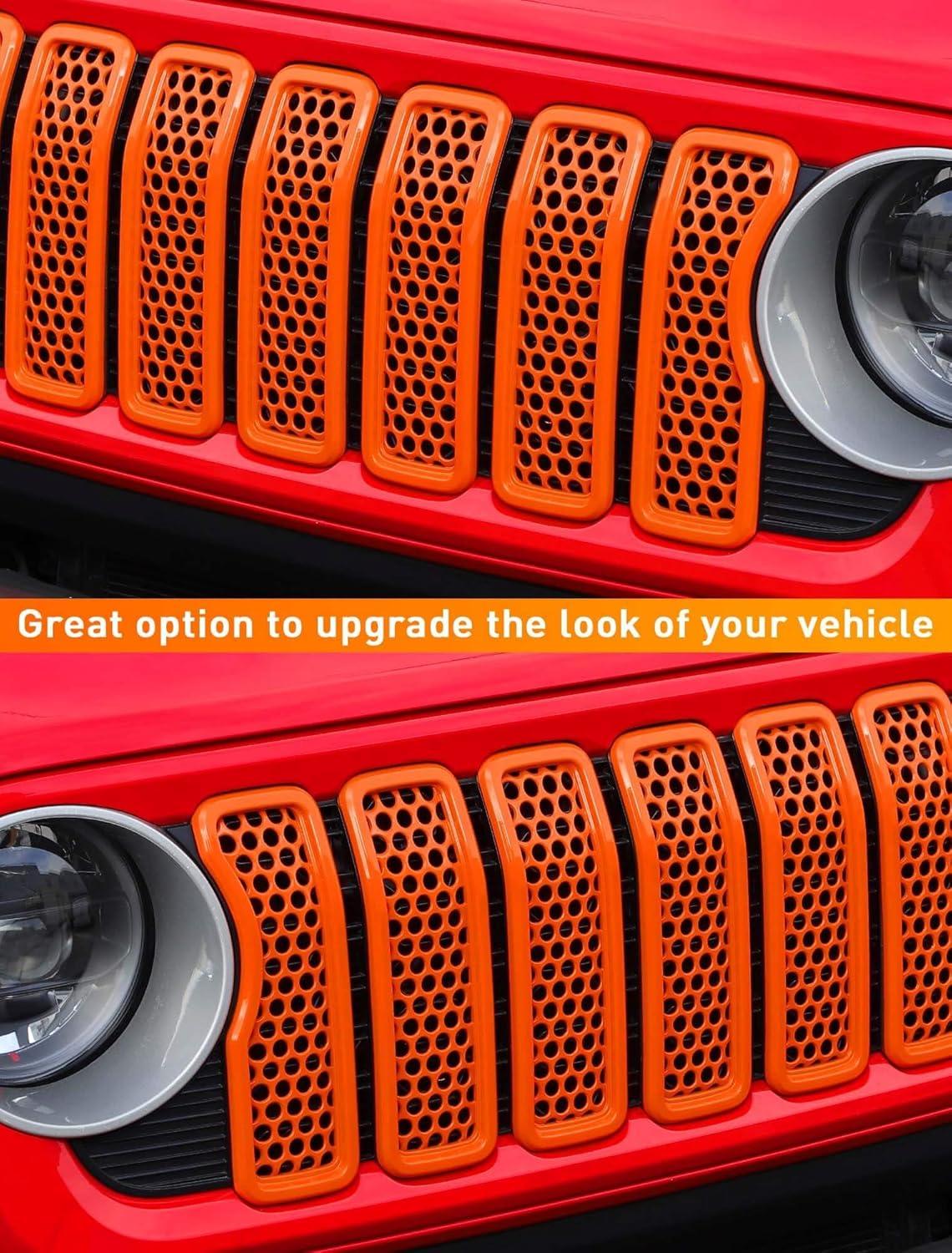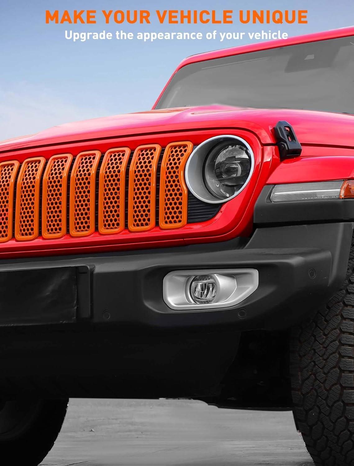 Savadicar Front Grill Inserts for 2024+ Jeep Wrangler JL JLU 4XE & Gladiator JT – Elevate Your Wrangler’s Aesthetics with Front Grille Cover Guard, Exterior Trim Accessories, 7 PCs, Orange(Standard)