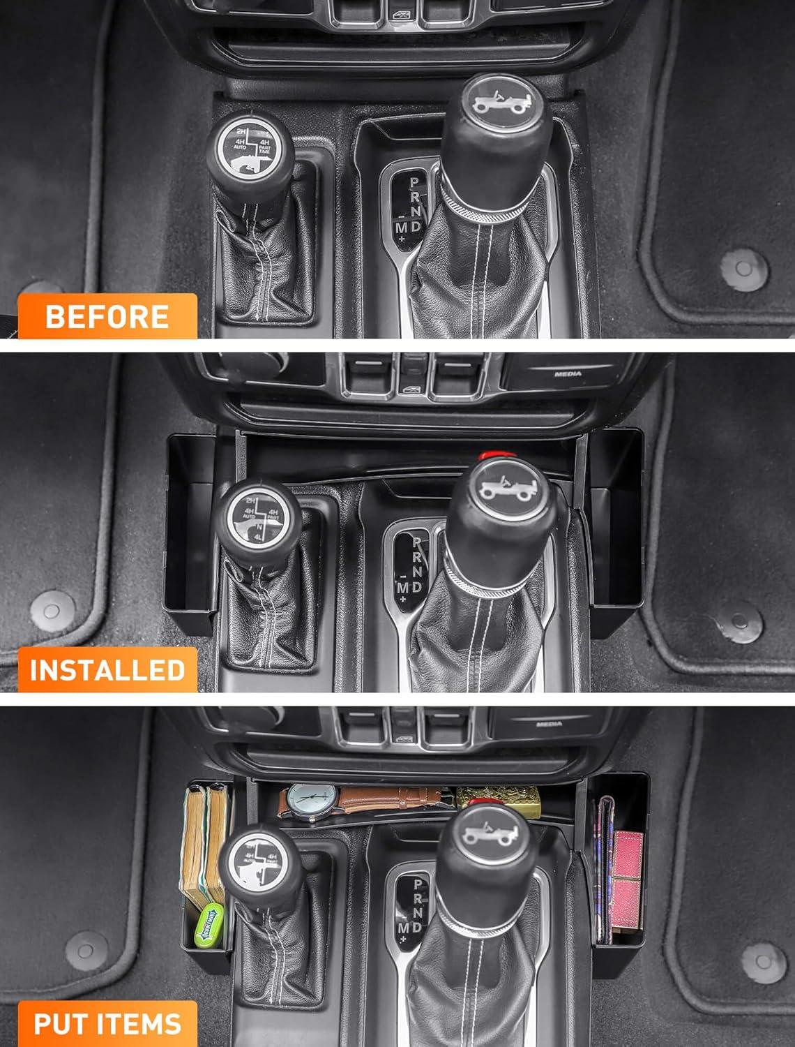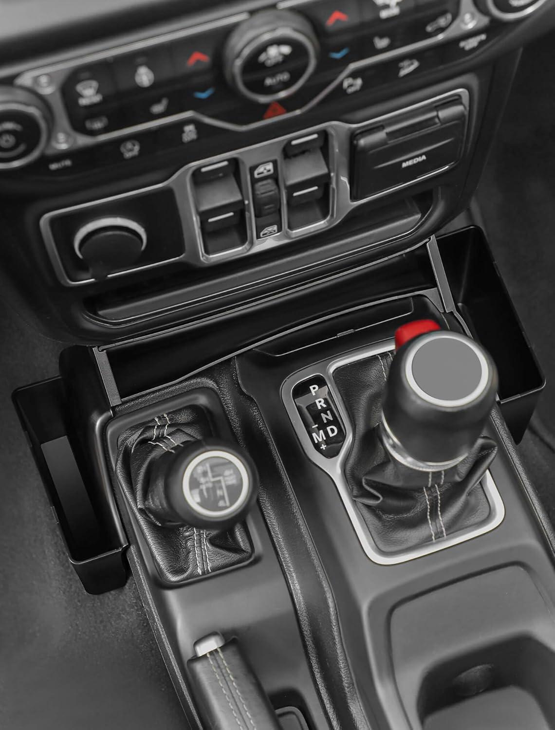 𝗪𝗜𝗗𝗘𝗟𝗬 𝗖𝗢𝗠𝗣𝗔𝗧𝗜𝗕𝗟𝗘 — Savadicar Removable Gear Shift Organizer, perfectly compatible with 2018-2025 Jeep Wrangler JL 4xe and Gladiator JT. Enhances your vehicle's interior organization