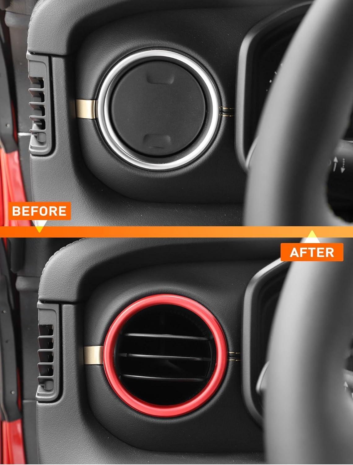 Unlock a new level of interior customization with Savadicar Air Outlets Trim Covers. Crafted from high-quality aluminum alloy, the ring covers not only guarantee durability but also add a touch of luxury to your Jeep's dashboard. Redefine your vehicle's style with precision detailing.