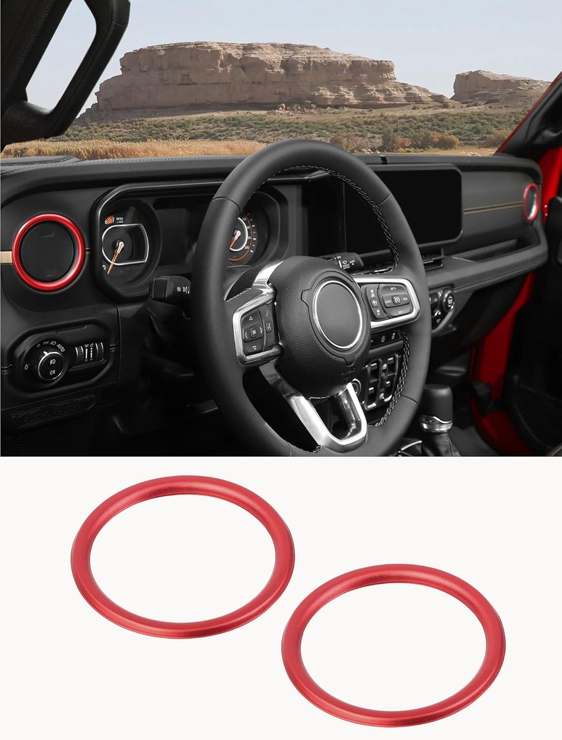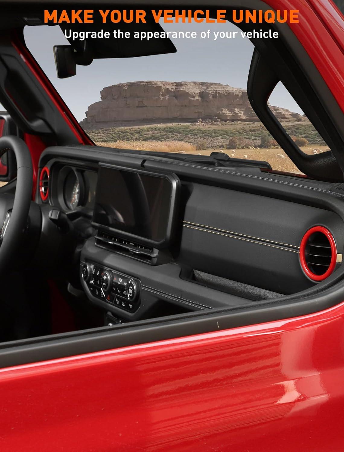 Savadicar HVAC Air Vent Trim Covers for 2024+ Jeep Wrangler (JL) & Gladiator (JT) - Upgrade Your Ride Style with 2 Pcs Aluminum Alloy Dashboard AC Vent Accents, Premium Interior Accessories, Orange(Red)